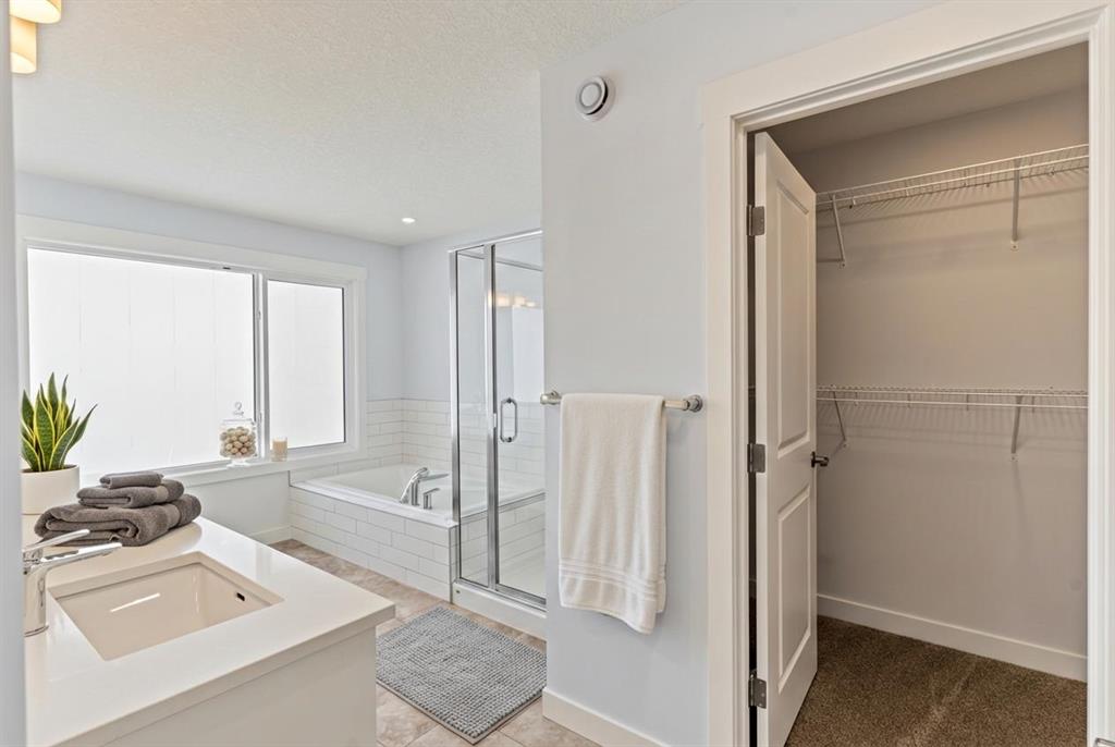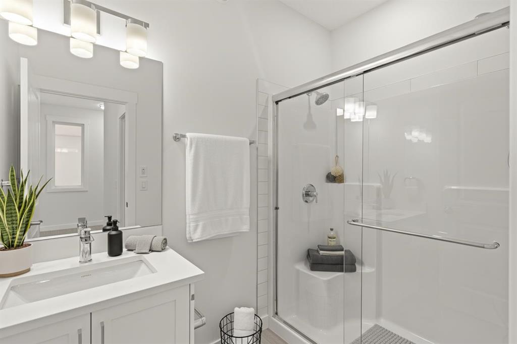 Located at 60 Creekstone Grove SW, this quick possession home offers 1,979 sq. ft. of beautifully designed living space with 3+1 bedrooms and 3 full bathrooms in total. The open-concept main floor features 9’ ceilings, luxury vinyl plank flooring, A MAIN FLOOR BED WITH FULL BATH, and a striking electric fireplace with tile surround, perfect for guests or multi-generational living.