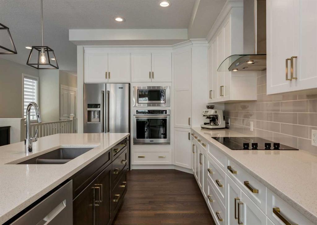 Welcome to this stunning bungalow in the highly desirable community of Crestmont, where modern design meets warmth, character, and everyday functionality. From the moment you step inside, you’re greeted by a spacious foyer that sets the tone for the home’s thoughtful layout and inviting feel. The main floor offers just over 1,500 sq ft of beautifully designed living space, filled with natural light and elevated by stylish, carefully selected finishes. At the heart of the home, the open-concept living area seamlessly connects the kitchen, dining, and living room—creating the perfect space for both entertaining and everyday living. A cozy gas fireplace anchors the living room, adding comfort and charm year-round. The main level features two well-sized bedrooms, including a stunning primary retreat complete with a luxurious 4-piece ensuite. The mudroom is both practical and spacious, offering built-in functionality along with conveniently located main floor laundry. The fully finished basement continues to impress with an expansive family and recreation space, ideal for movie nights, hosting, or simply unwinding. A custom bar with bar fridge adds an extra layer of entertainment, while the third bedroom and versatile den provide flexibility for guests, a home office, or a personal gym. A second fireplace enhances the cozy atmosphere downstairs, making this level just as inviting as the main floor. Step outside and you’ll find your own private backyard escape, complete with a beautiful deck, hot tub, and pergola. Backing directly onto a serene green space with no neighbours directly behind, you’ll enjoy an added sense of privacy and uninterrupted views—perfect for relaxing evenings or entertaining friends and family. With a spacious oversized heated garage with mezzanine for storage/height for a lift and many other thoughtful details throughout, this home truly offers a perfect balance of style and function, with something to appreciate in every corner. Located in Crestmont, you’ll love the peaceful, community-oriented feel paired with unbeatable access to the mountains, making weekend getaways quick and effortless, while still enjoying convenient access to the city, nearby amenities, and scenic walking paths. Click on the video in the media link and book your private showing to view this exceptional opportunity.