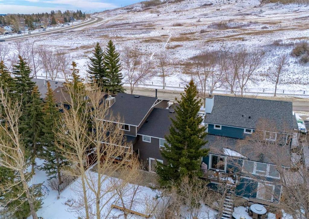 Situated directly across from Nose Hill Park and backing onto a tranquil ravine, this rare four-level split offers an exceptional blend of privacy, character, and unbeatable location. With no neighbours in front or behind, you’ll enjoy year-round views and direct access to one of Calgary’s most iconic natural spaces. Thoughtfully maintained and full of timeless architectural charm, the home welcomes you with a spacious foyer leading to a bright living and dining area featuring laminate flooring, a classic wet bar, custom built-in wood bookshelves, and elegant French doors that create separation while maintaining an open feel. The kitchen retains its original cabinetry—rich with character—complemented by tile flooring and a large window overlooking the backyard and green space beyond. Upstairs, you’ll find three generous bedrooms including a spacious primary retreat complete with a walk-in closet and private 4-piece ensuite. An additional full bathroom serves the upper level.