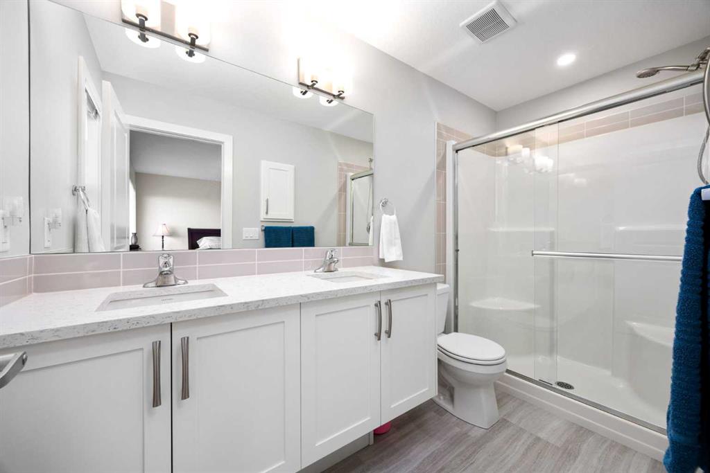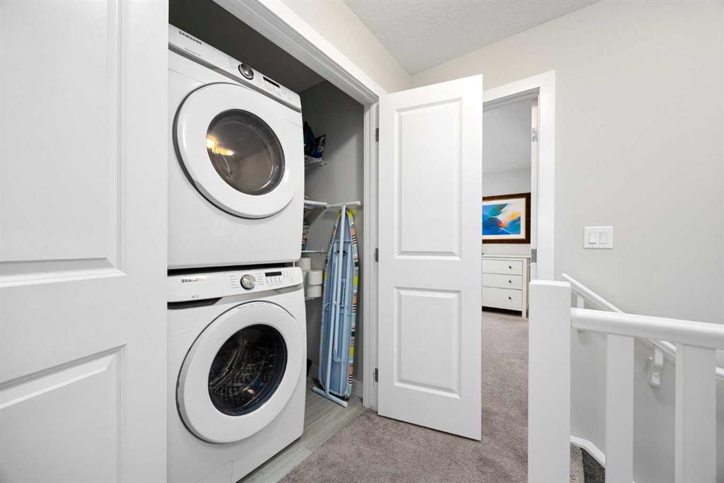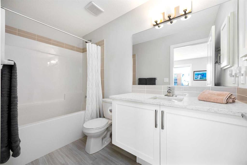 Upstairs, you’ll find a thoughtfully designed level filled with elevated touches. The primary bedroom is a serene retreat, offering peaceful east-facing views of breathtaking sunrises, a generous walk-in closet, and a 4-piece ensuite. A second spacious bedroom showcases charming peek-a-boo mountain views, while an additional 4-piece bathroom, cozy family room, and convenient laundry space add both comfort and practicality. The upgraded open baluster railing enhances the upper level with an airy feel and allows light to flow beautifully throughout the space.