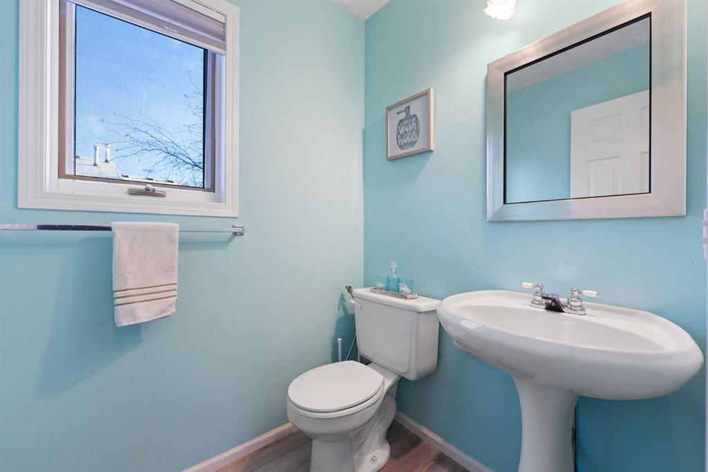 The living room features a gas fireplace and functional layout for everyday living. A 2 piece powder room and main floor laundry complete this level.