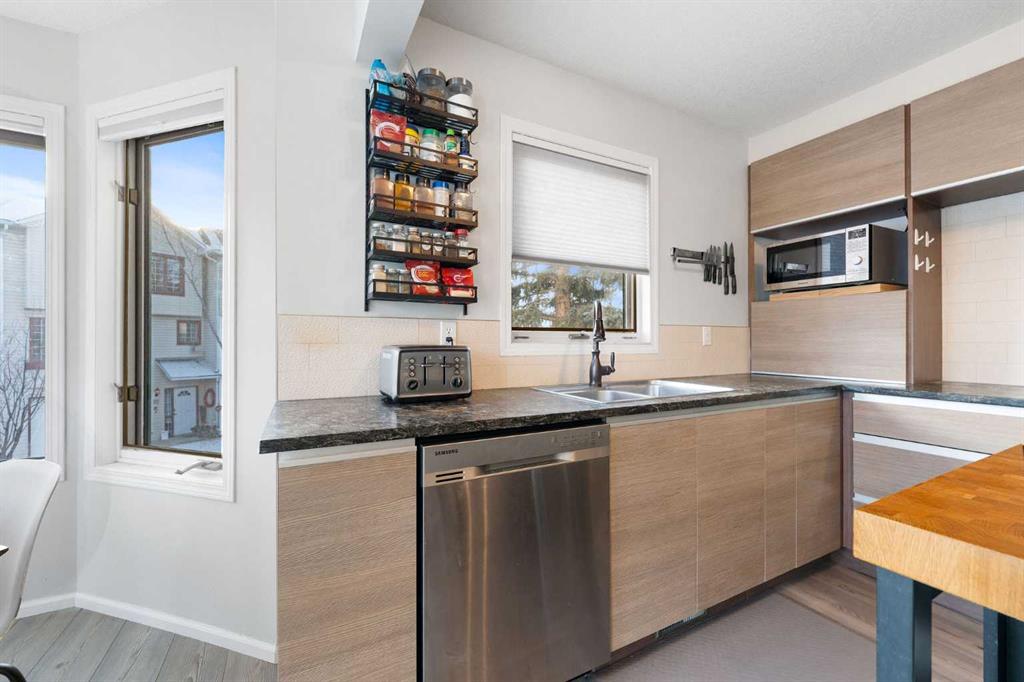 Capilano Gardens is a well managed complex with low condo fees. Recent updates include a new roof in 2018, refreshed decks, and repainted garage door trims. Parks, pathways, schools, Winsport, and Calgary Farmers Market West are all nearby, with easy access to downtown and the mountains.