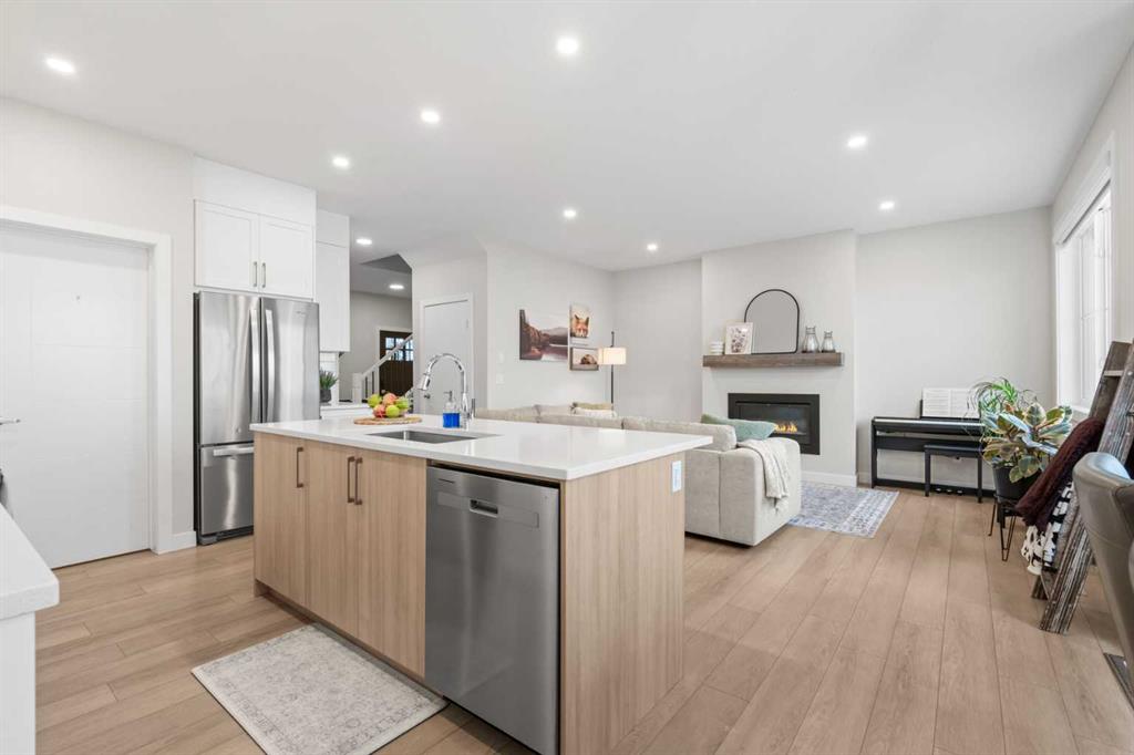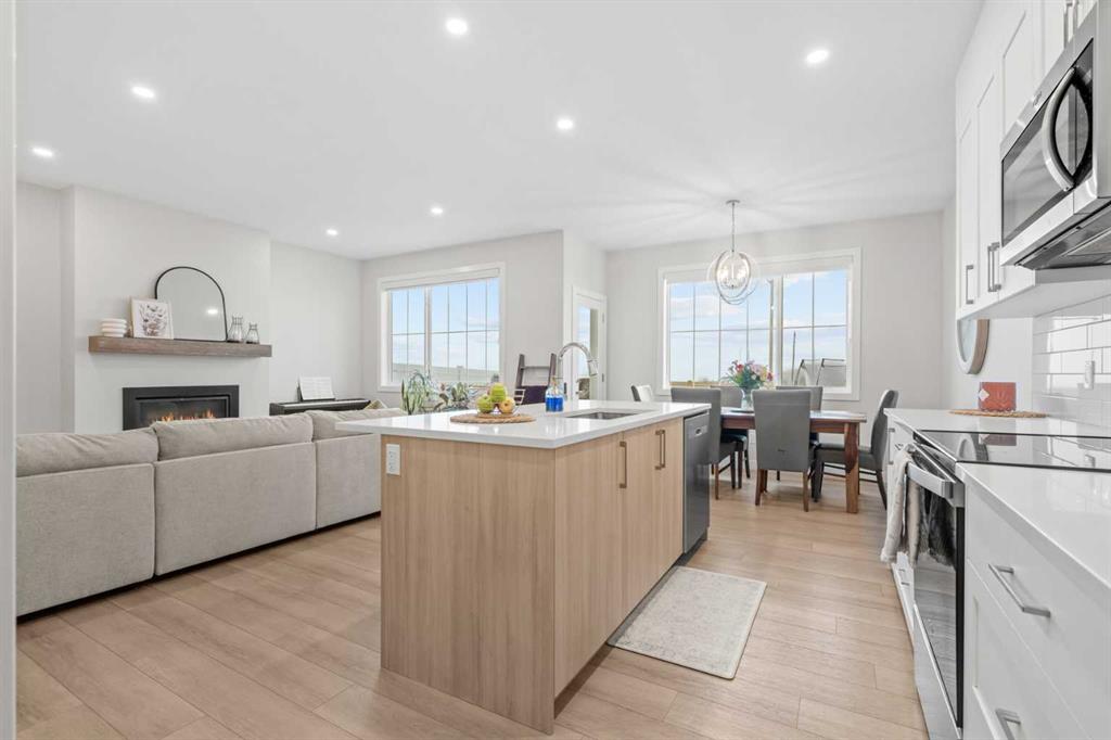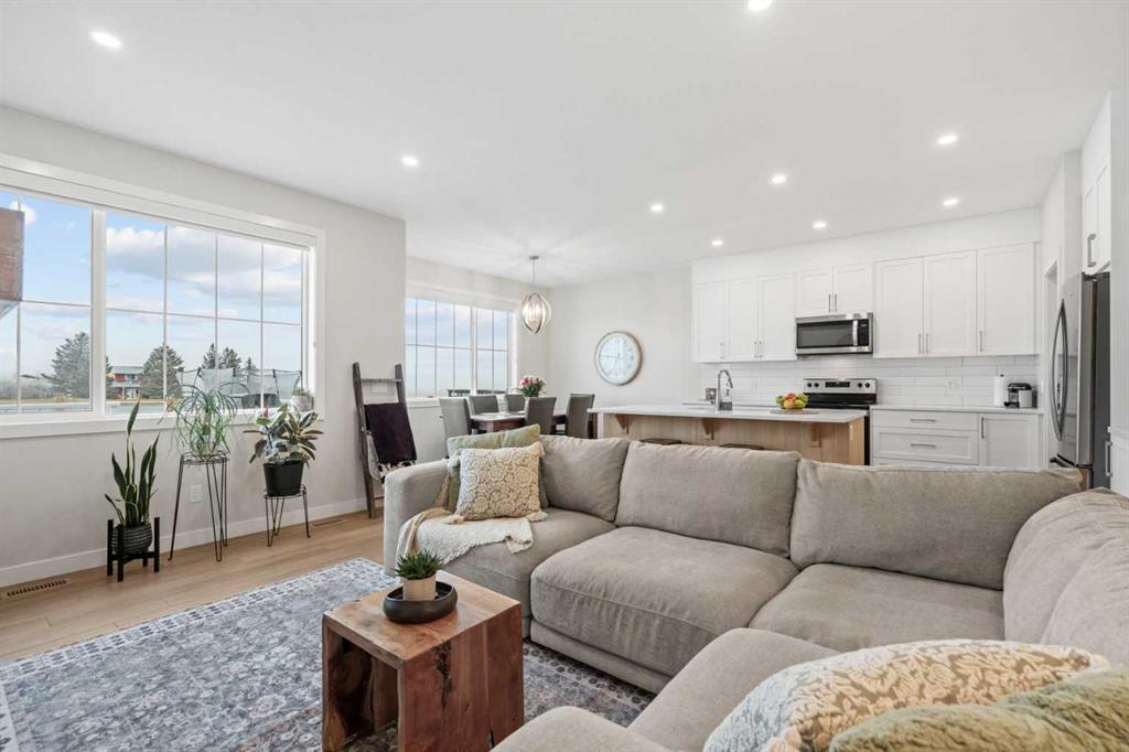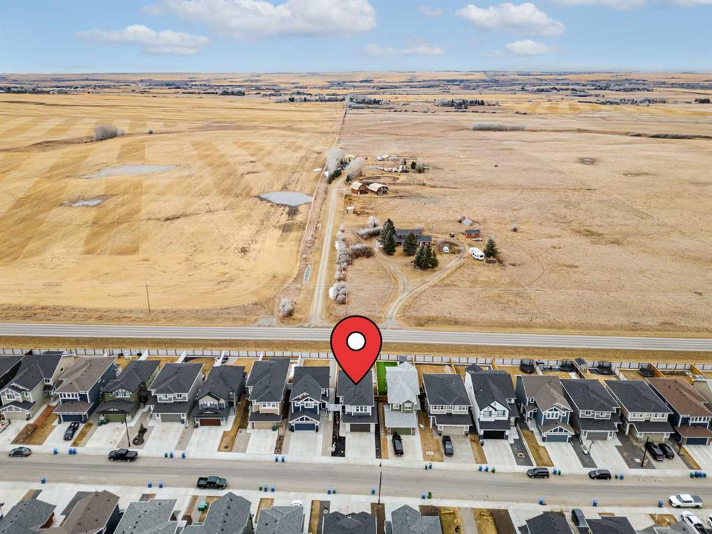 Welcome to Ranchers Rise in Okotoks, a growing community that blends quiet living with everyday convenience. This well-maintained two-storey home by Partners Homes offers almost 1,900 sq. ft. of thoughtfully designed living space, providing both comfort and functionality, complete with a front-attached double garage, 3 bedrooms, 2.5 bathrooms, and a bright bonus room. The main level is designed for modern living, featuring 9-foot ceilings, recessed lighting, and durable luxury vinyl plank flooring throughout. The open layout connects the kitchen, dining, and living areas seamlessly, creating a space that feels both functional and inviting. The kitchen stands out with full-height white shaker cabinetry, soft-close drawers, quartz countertops, stainless steel appliances, a large island with seating for four, and a walk-in pantry with plenty of storage. The living room is anchored by a sleek linear gas fireplace, while the dining area opens onto an 11’ x 10’ deck with stairs leading down to a fully landscaped backyard, complete with a lawn sprinkler system, ideal for easy maintenance and outdoor enjoyment. Enjoy added privacy with a backyard that backs onto a quiet road and open agricultural fields, offering wide, unobstructed prairie views and no direct rear neighbours. Upstairs, the primary bedroom offers a comfortable retreat with a walk-in closet and a 4-piece ensuite featuring a double vanity and a 5-foot shower. Two additional bedrooms, both with walk-in closets, a full bathroom, and a conveniently located laundry room complete the upper level. The bonus room provides flexible space for relaxing, entertaining, or family time. The basement features 9-foot ceilings, offering excellent potential for future development. Additional features include central air conditioning and a tankless hot water system, offering improved energy efficiency and on-demand hot water. The exterior showcases a combination of cement fibre siding and premium vinyl siding, enhancing the home’s curb appeal. Located with quick access to Highway 2A, commuting is simple, with downtown Calgary approximately 25 minutes away and South Health Campus about 10 minutes away. Families will appreciate the nearby schools, including Dr. Morris Gibson School (K–6), École Percy Pegler School (K–6, French Immersion), Okotoks Junior High School (7–9), and Foothills Composite High School (10–12). There are also parks, pathways, and a nearby commercial area with a café and everyday services just minutes from the home. View the 3D virtual tour and book your private showing today!