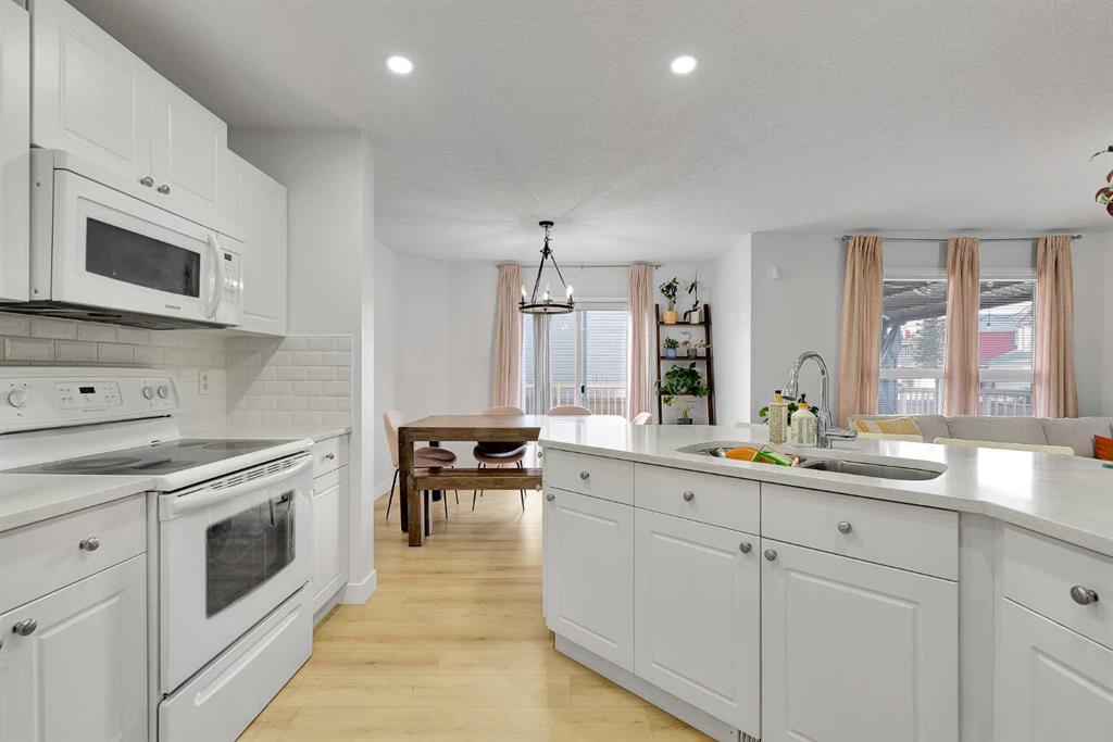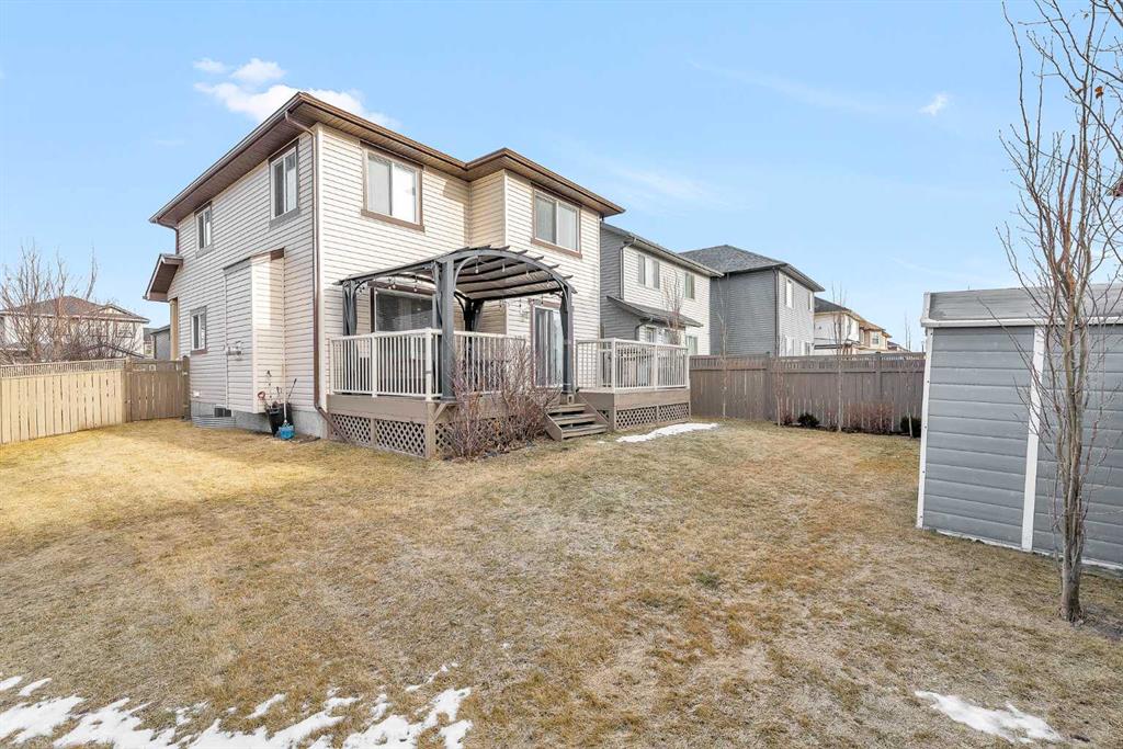 Welcome to this beautifully maintained detached home complete with an illegal suited basement, ideally positioned on a spacious corner lot in the vibrant community of Saddleridge. Offering over 2,300 sq ft of developed living space, this impressive 2-storey residence features 4 bedrooms, 3.5 bathrooms, and a double attached garage. Step inside to a bright, open-concept main floor highlighted by vinyl floors. The expansive living room, complete with a cozy gas fireplace, flows seamlessly into a well-appointed kitchen boasting white cabinetry, quartz countertops, a large island with breakfast bar, white appliances, and a separate pantry, perfect for family living and entertaining. Upstairs, you’ll find a versatile bonus room, alongside 3 generously sized bedrooms. The primary suite offers a private retreat with a 4-piece ensuite and large walk-in closet. A convenient 4-piece main bath and laundry room complete the upper level. The fully finished illegal suited basement extends your living space with a spacious family/recreation room, kitchenette, an additional bedroom, 3-piece bathroom, and a laundry unit, ideal for guests or extended family. Enjoy summer days and evenings on the large, covered backyard deck, perfect for barbecues and gatherings. A double attached garage sits on a driveway providing ample parking for multiple vehicles. Situated close to schools, parks, playgrounds, shopping, dining, and the Genesis Centre, with easy access to Stoney Trail, this home offers exceptional convenience and lifestyle. Ideal for large or growing families. Don’t miss your chance to make this wonderful home yours – book your private showing today!