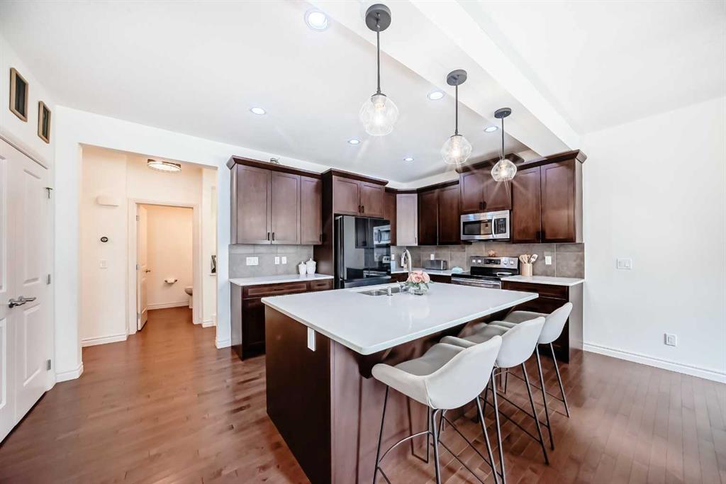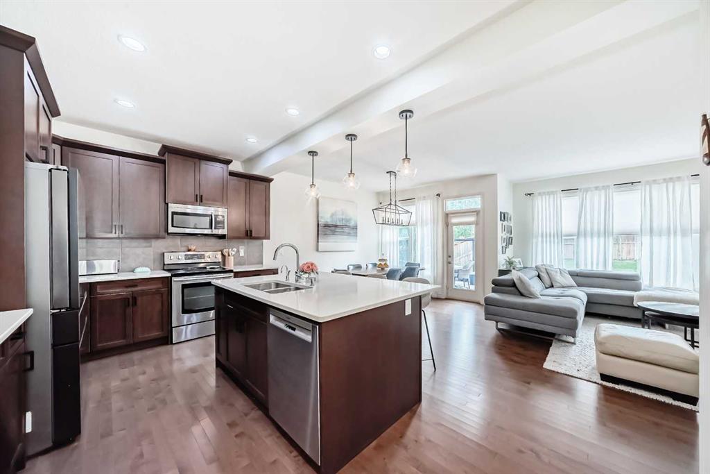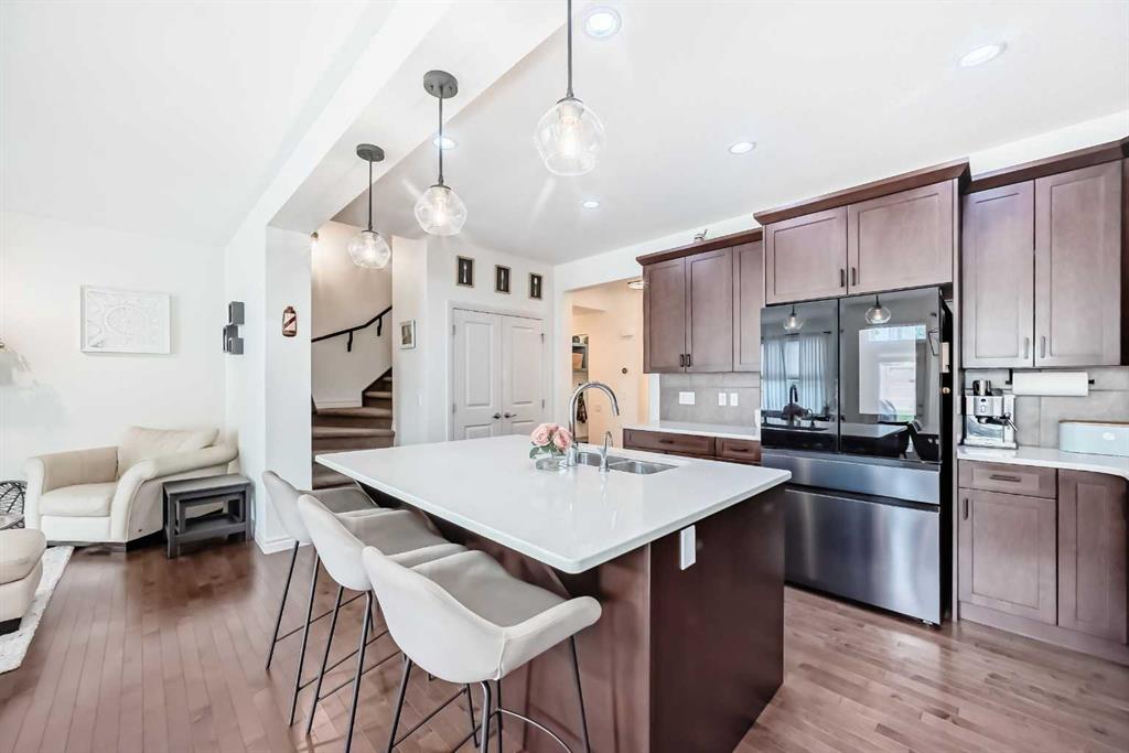 Welcome to this stunning family home in the highly sought-after community of Sage Hill. Boasting over 2,100 sq ft of meticulously designed living space, this 4-bedroom, 3.5-bath residence combines contemporary style and modern functionality. As you step inside, you’ll be greeted by the abundant natural light that fills the home. The heart of the home is the gorgeous, open-concept kitchen, featuring sleek quartz countertops, upgraded appliances, a large center island, and a reverse osmosis filtration system with an instant hot water dispenser. The adjacent living room is a true comfort zone, highlighted by a cozy fireplace with a built-in fan and gleaming hardwood floors. For added convenience, the mudroom features custom built-in lockers and bench, leading to a fully finished double attached garage with extensive built-in shelving. A two-piece bathroom rounds out the main floor. Upstairs, the expansive bonus room is a showstopper with its recessed LED lighting, crown molding, and a unique tray ceiling, making it the perfect spot for movie nights. The upper level also includes three spacious bedrooms, including a luxurious primary suite with a massive walk-in closet and a five-piece ensuite featuring gleaming tile, dual sinks, a soaker tub, and a separate glass-enclosed shower. The convenient second-floor laundry room adds to the home’s functionality. The fully finished basement is another bonus, offering an additional bedroom, a contemporary 3-piece bathroom, and a large rec room—perfect for family games, home media, fitness, and other hobbies. This home truly has it all, with extra upgrades including a new roof, new gutters and eaves, exposed aggregate driveway, a new upgraded fridge (2024), and new light fixtures throughout. A Ring doorbell camera provides added security, and a large capacity hot water tank ensures you never run out of hot water. Enjoy year-round comfort with air conditioning and the convenience of an irrigation system. The large, south-facing backyard is an outdoor oasis, complete with a deck and a spacious patio area, perfect for entertaining and relaxing. The basement mechanical room also offers extra storage and shelving. Located on a quiet, family-friendly street, this home is just steps from a park and a short walk to pathways. Enjoy the proximity to nearby shopping, schools, and amenities, and easy access to major routes like 144 Avenue NW, Stoney Trail, and Sarcee Trail. This home offers unparalleled comfort, style, and convenience. Quick possession available.