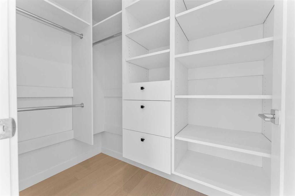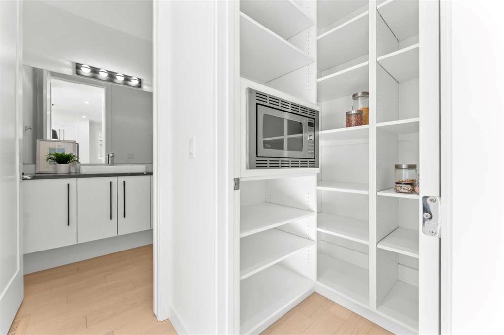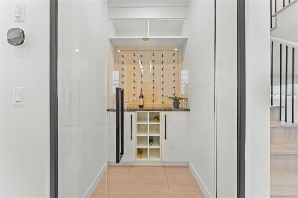 The bright open-concept main floor is designed for both everyday living and entertaining, featuring 9-foot ceilings, engineered hardwood flooring, a private den, elegant powder room, and central air conditioning. The chef-inspired kitchen is a standout with full-height cabinetry, soft-close doors and drawers, quartz countertops, stainless steel appliances, a gas stove, built-in microwave, range hood, under-cabinet lighting, oversized island with seating, walk-in pantry, and dedicated wine room. The adjoining dining and living areas are equally impressive, complete with a wet bar and striking quartz fireplace feature wall. Step out to the covered main-floor balcony with BBQ gas line connection for easy indoor-outdoor living.