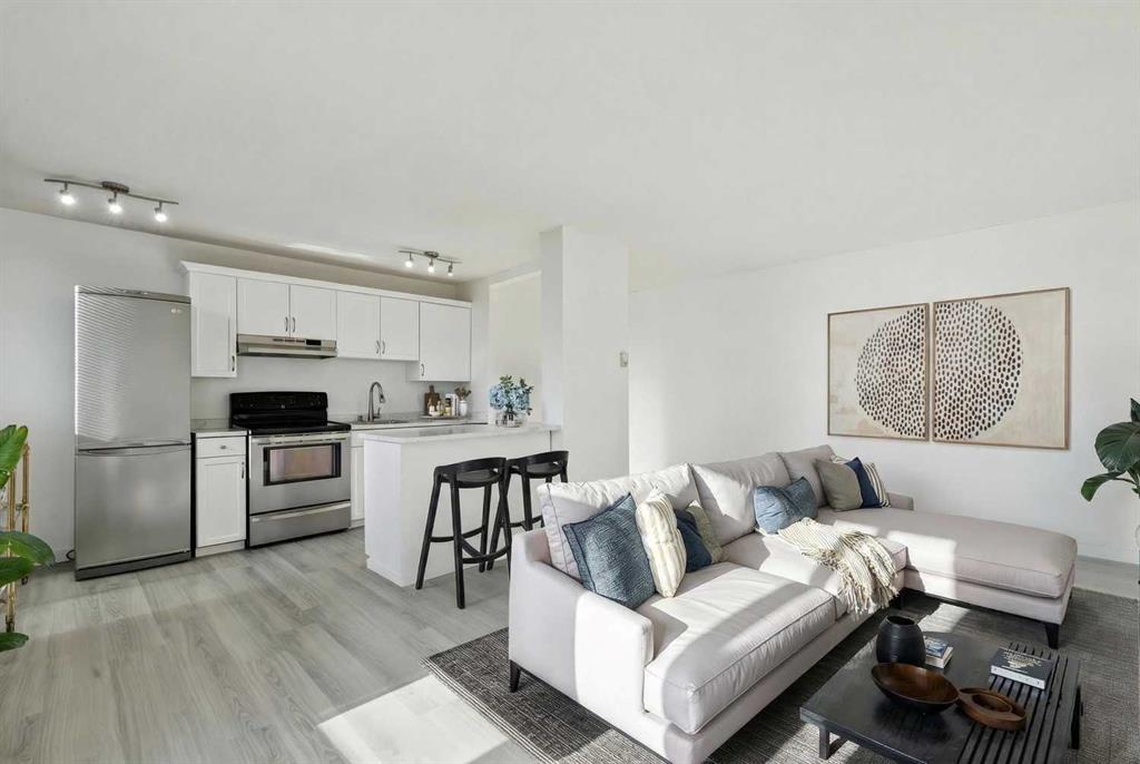 Urban Point – Bright 1 Bedroom Condo in the Beltline Titled Underground Parking | Condo Fees Include All Utilities (Electricity, Gas, Heat, Trash, Water) Welcome to Urban Point, where this bright and inviting south facing, NO POST TENSION, offering exceptional value in the heart of the Beltline. The open living space is filled with natural light and features easy care vinyl flooring throughout. The functional kitchen provides plenty of cabinet space and flows seamlessly into the living room, with direct access to a private balcony overlooking a beautiful tree lined street. The spacious primary bedroom comfortably fits a king size bed and additional furniture, while the updated 4-piece bathroom offers a clean, modern feel. A titled underground parking stall adds year-round convenience. Located steps from vibrant 17th Avenue, you’ll enjoy quick access to cafés, restaurants, shops, and nightlife—everything the Beltline is known for. With all utilities included in the condo fees, this home is ideal for first time buyers, downsizers, or investors seeking a low-maintenance property in a prime location. Book your private showing today and experience the best of Beltline living.