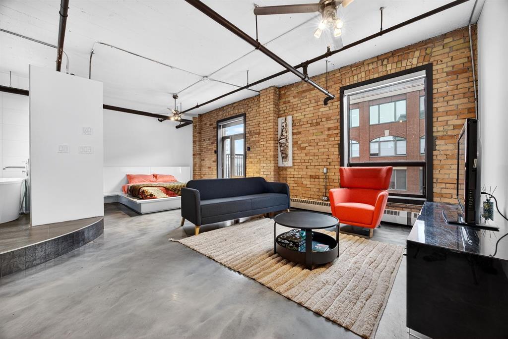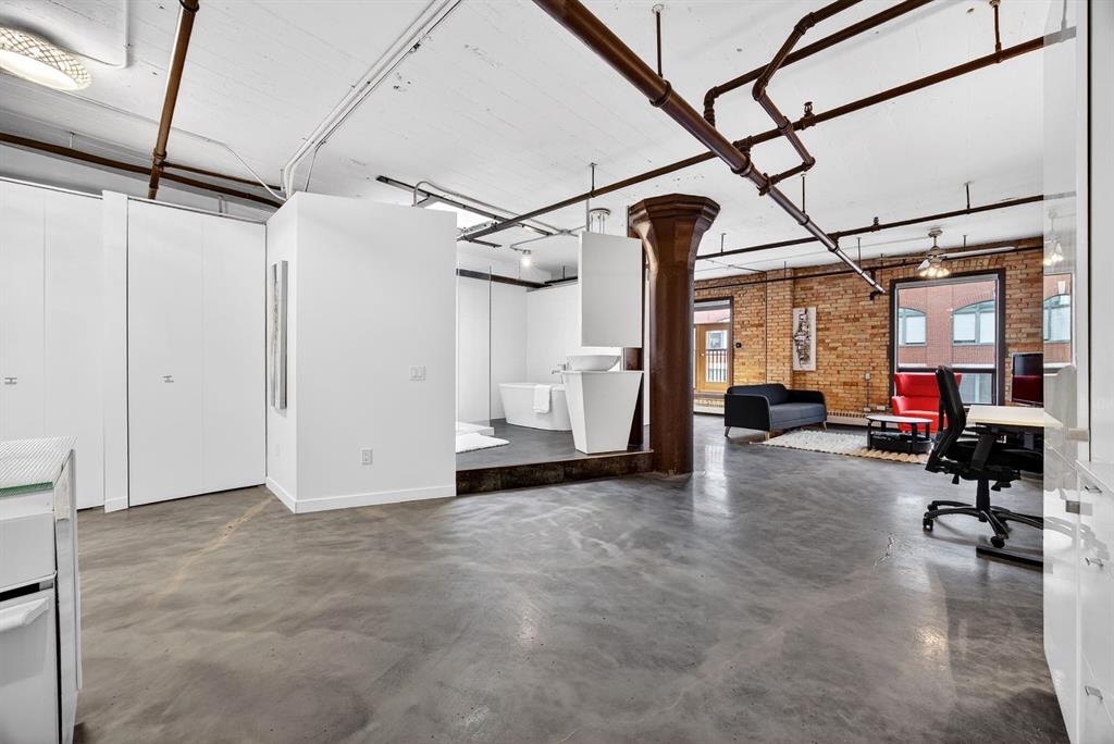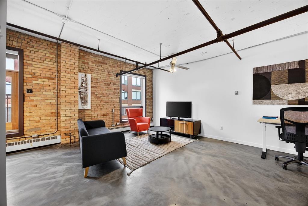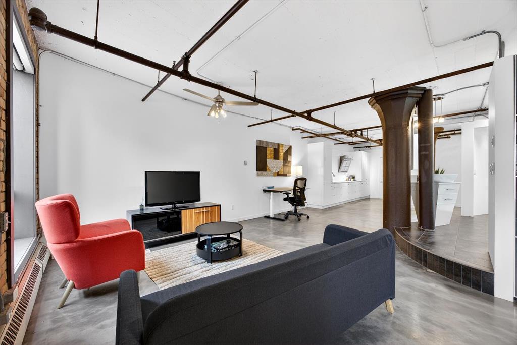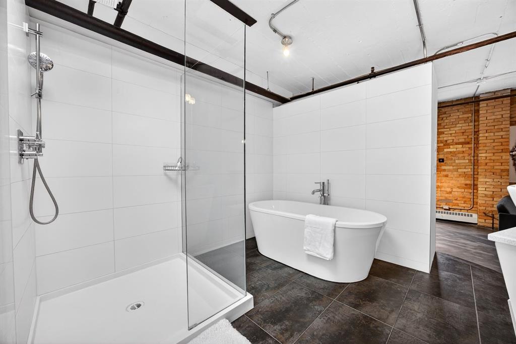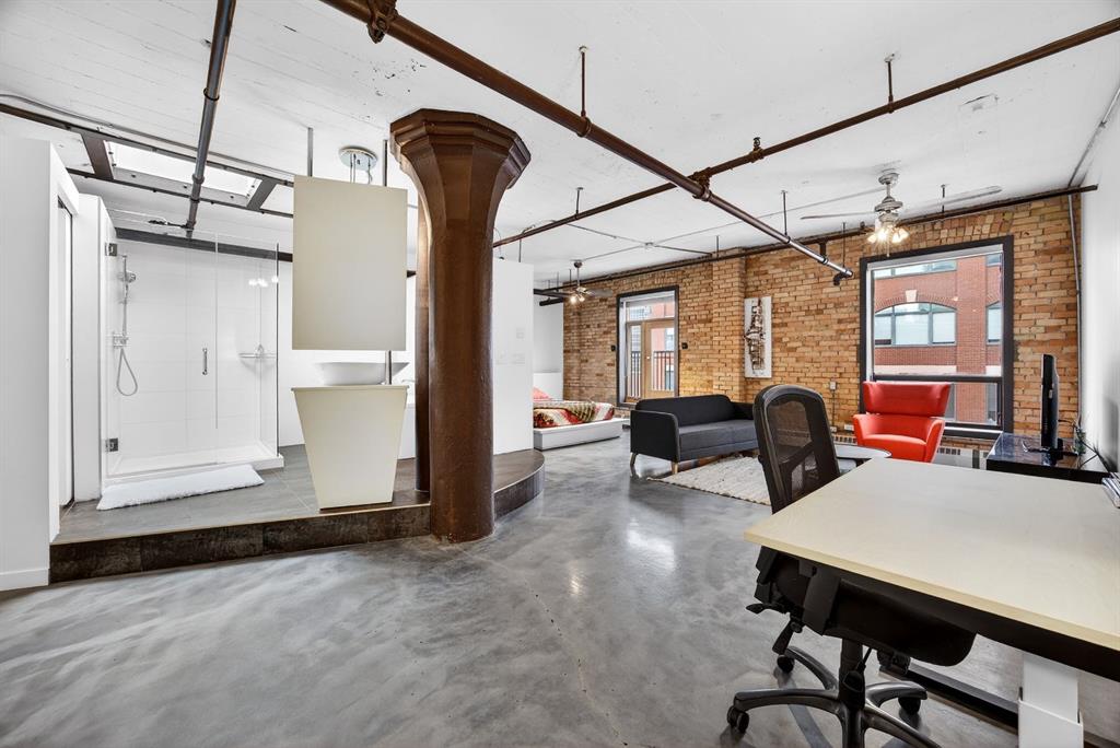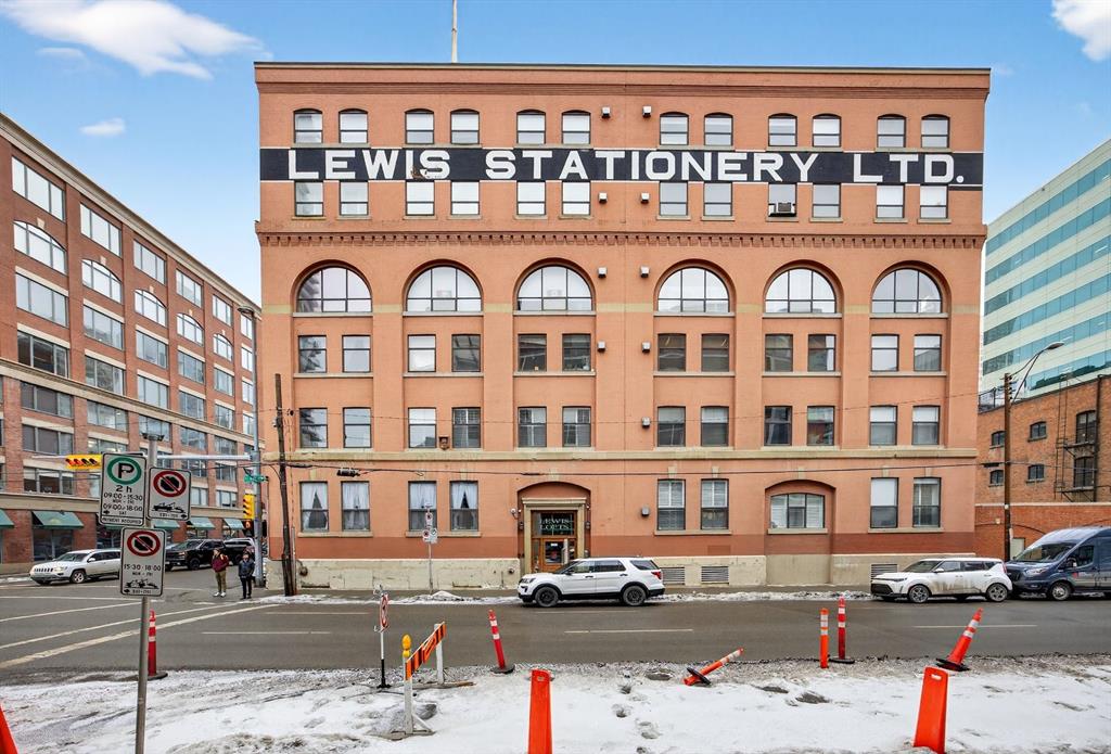 Welcome to the Lewis Lofts! This building gives New York vibes and a rare opportunity to own a piece of history in this 1911 converted Lewis Stationary building. One of Calgary’s only true “hard lofts” a provincial Class “A” Heritage Building that was converted in 1995 to residential condos. This TOP FLOOR penthouse unit features open concept living with polished concrete flooring, original brick feature walls, open industrial ceilings, and large fluted columns that give the property a ton of character. Gorgeous kitchen with sleek white cabinetry, brand quartz counters, undermount sink, built-in integrated dishwasher and fridge, and island with custom glass counter and matching shelving unit. Open to the main area with lots of space for dining, living room, and office area. Remodeled open concept bathroom with floor to ceiling tile, free-standing soaker tub, walk-in glass shower, and separate water closet. Bedroom area with garden door out to the top floor West facing balcony with High Park and DT views. In suite laundry and a direct vent outside with air conditioning unit included complete this amazing space. The unit comes with heated underground parking, storage locker, and the building features a huge common area patio with gazebo, BBQs, and lawn furniture, a great spot to hang out with friends on summer days! All located in the heart of the Beltline across the street from Vintage Chop house and walking distance to all the bars, restaurants, shops, DT Core, Vibrant 10th and 17th Avenue. Convenient close access to the +15 walkway, Scotiabank Saddledome, Stampede Park, and so much more! Don’t miss your chance own in one of Calgary’s most sought after historic landmarks, with timeless architecture and character that will be the envy of all your friends!