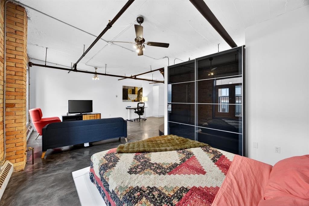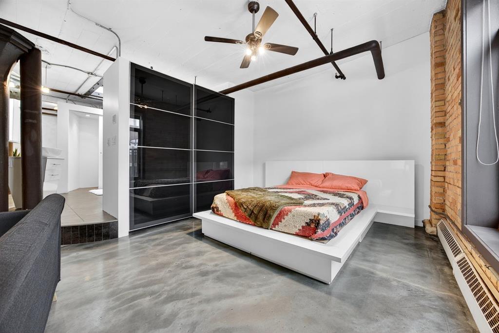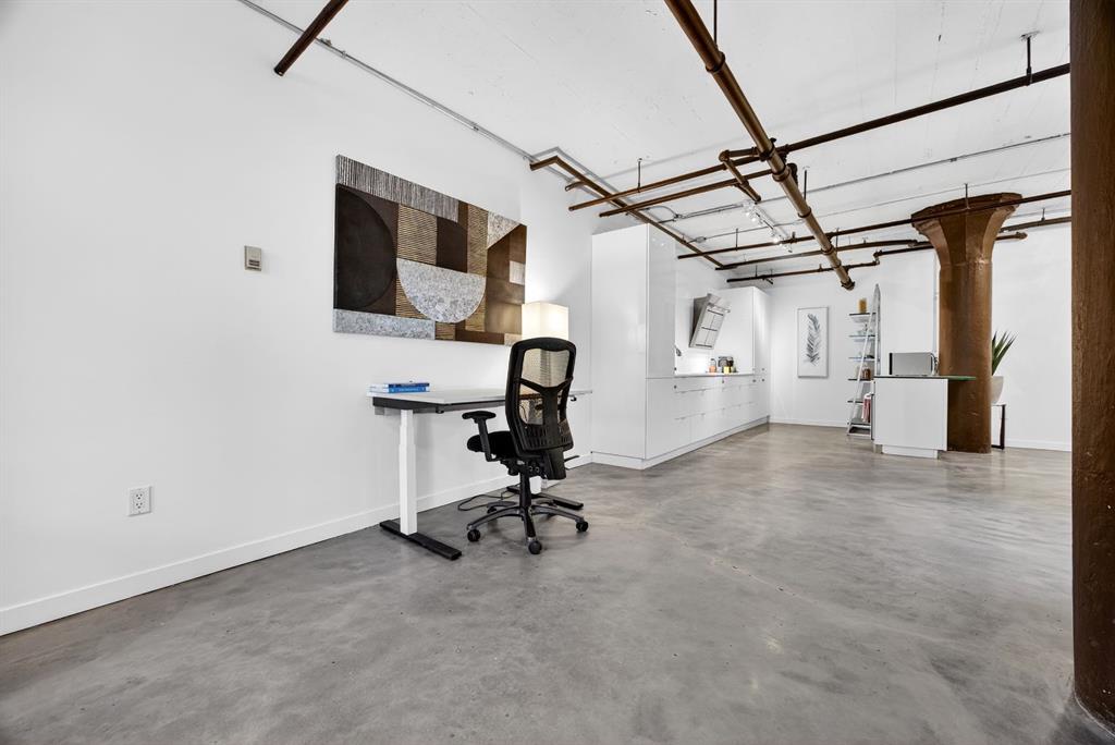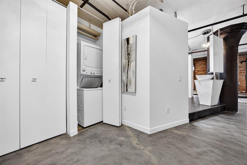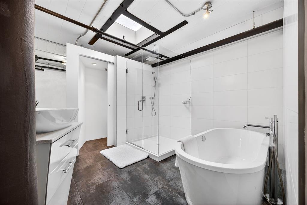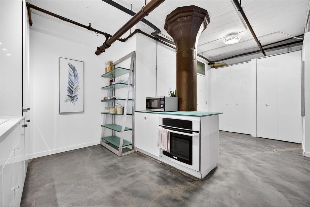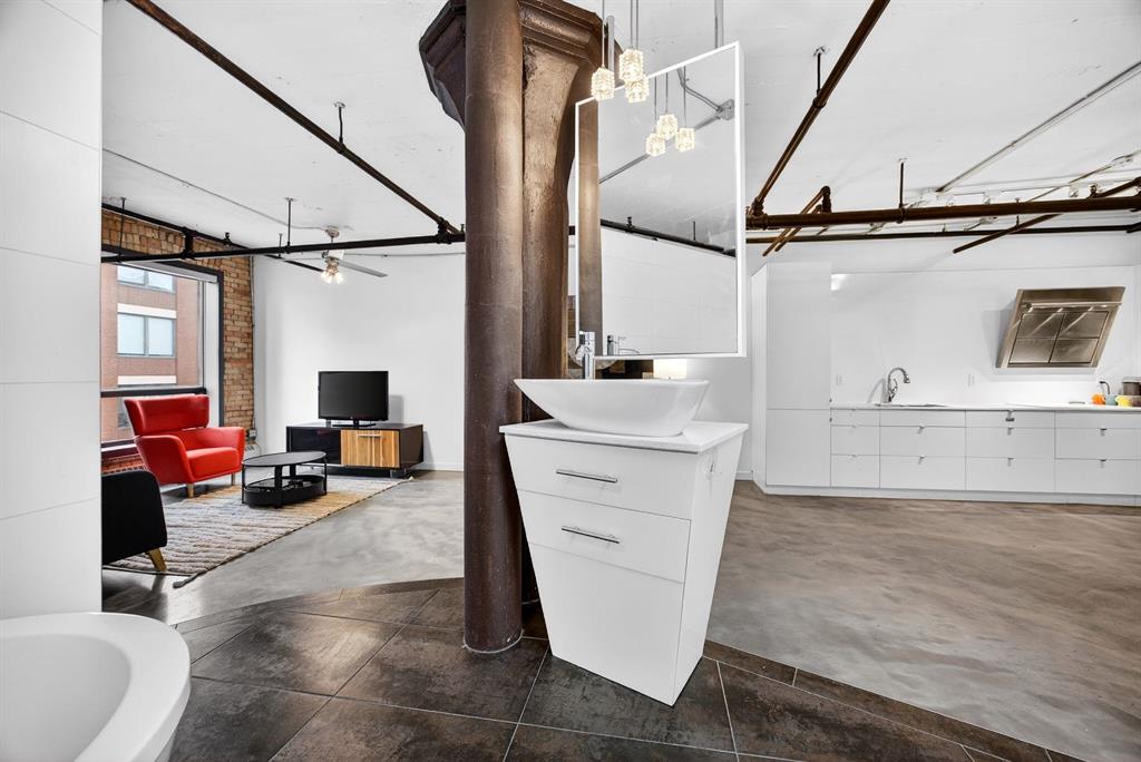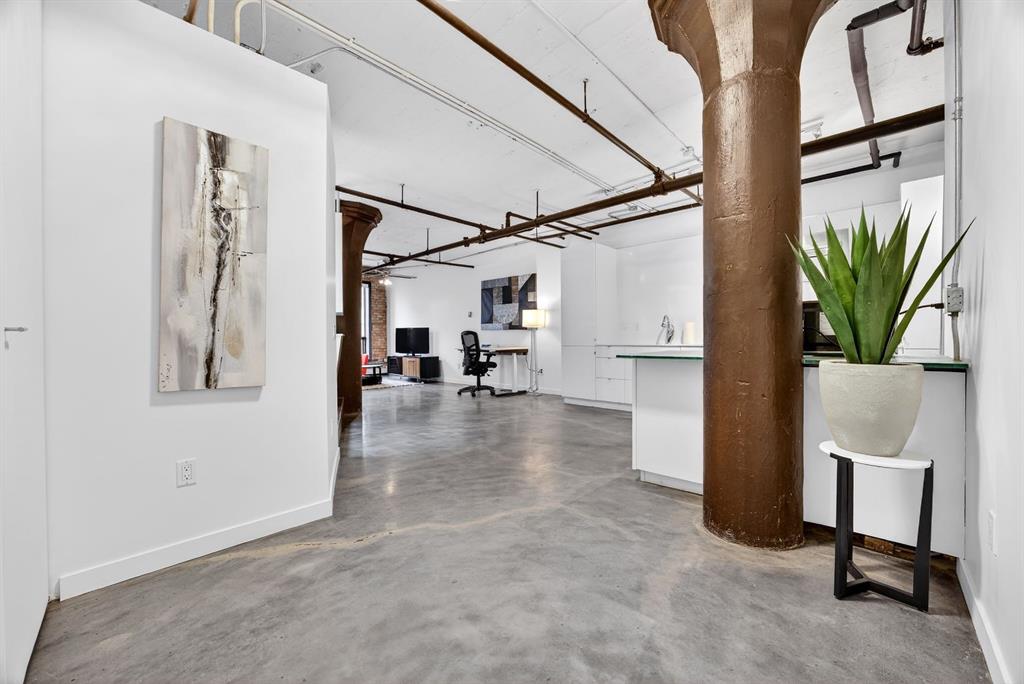 Welcome to the Lewis Lofts! This building gives New York vibes and a rare opportunity to own a piece of history in this 1911 converted Lewis Stationary building. One of Calgary’s only true “hard lofts” a provincial Class “A” Heritage Building that was converted in 1995 to residential condos. This TOP FLOOR penthouse unit features open concept living with polished concrete flooring, original brick feature walls, open industrial ceilings, and large fluted columns that give the property a ton of character. Gorgeous kitchen with sleek white cabinetry, brand quartz counters, undermount sink, built-in integrated dishwasher and fridge, and island with custom glass counter and matching shelving unit. Open to the main area with lots of space for dining, living room, and office area. Remodeled open concept bathroom with floor to ceiling tile, free-standing soaker tub, walk-in glass shower, and separate water closet. Bedroom area with garden door out to the top floor West facing balcony with High Park and DT views. In suite laundry and a direct vent outside with air conditioning unit included complete this amazing space. The unit comes with heated underground parking, storage locker, and the building features a huge common area patio with gazebo, BBQs, and lawn furniture, a great spot to hang out with friends on summer days! All located in the heart of the Beltline across the street from Vintage Chop house and walking distance to all the bars, restaurants, shops, DT Core, Vibrant 10th and 17th Avenue. Convenient close access to the +15 walkway, Scotiabank Saddledome, Stampede Park, and so much more! Don’t miss your chance own in one of Calgary’s most sought after historic landmarks, with timeless architecture and character that will be the envy of all your friends!