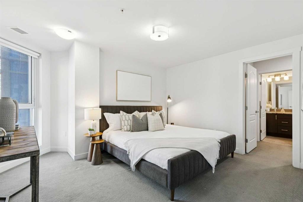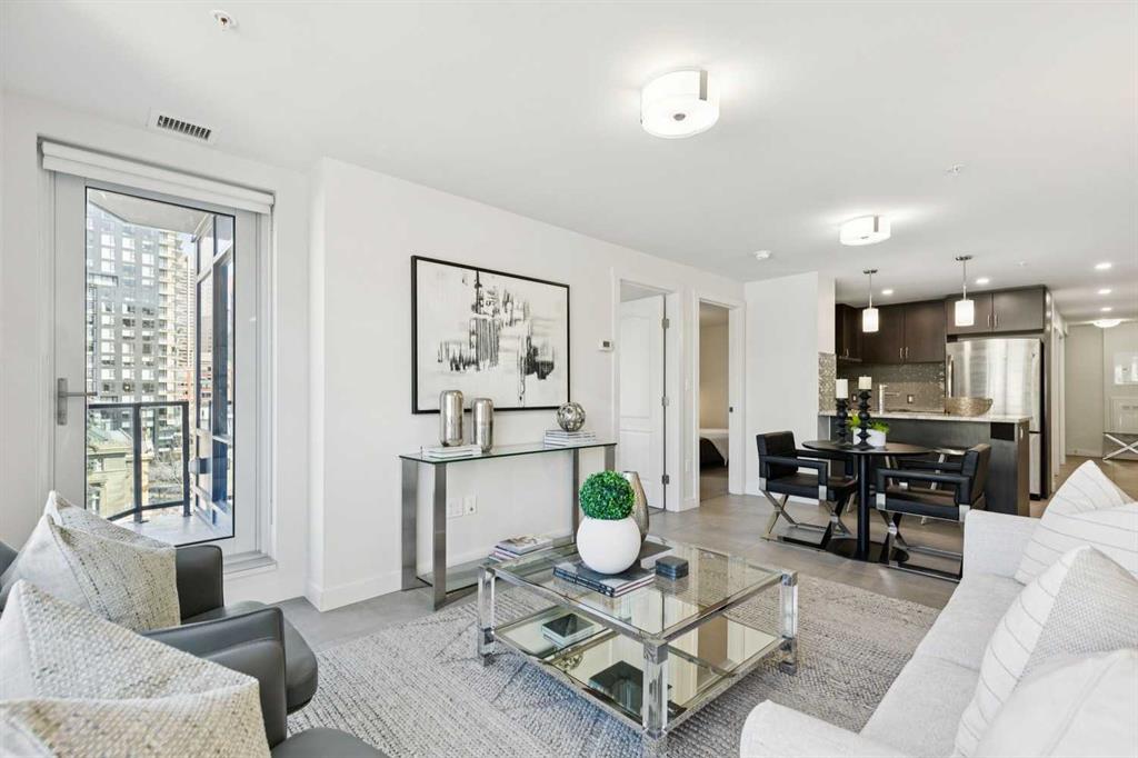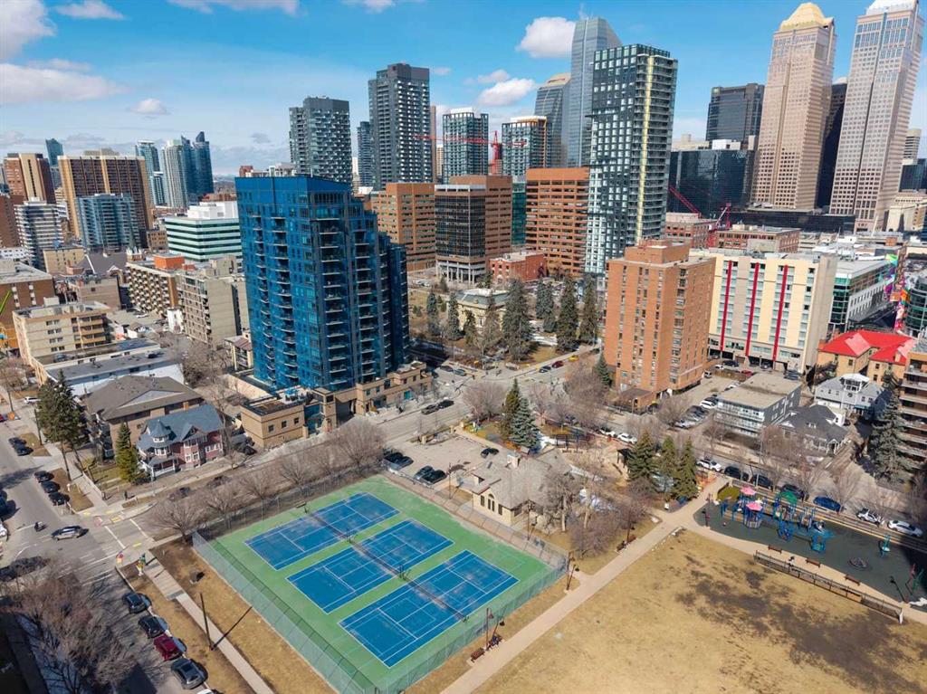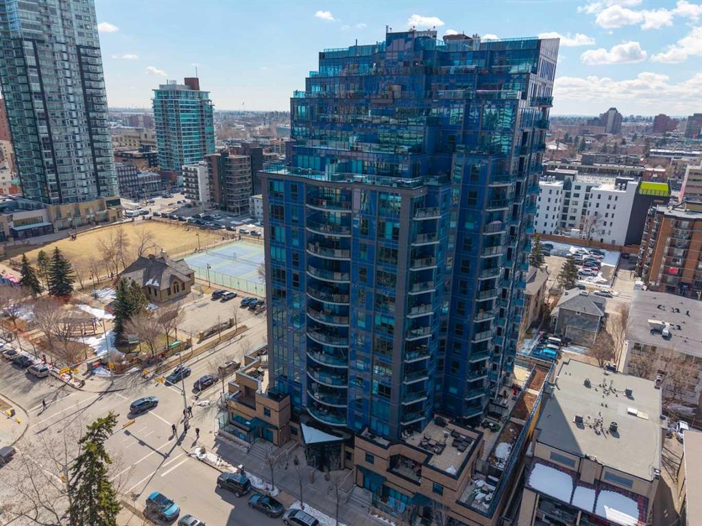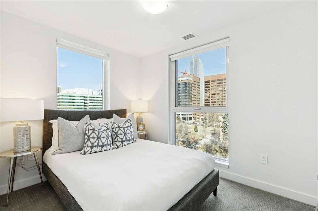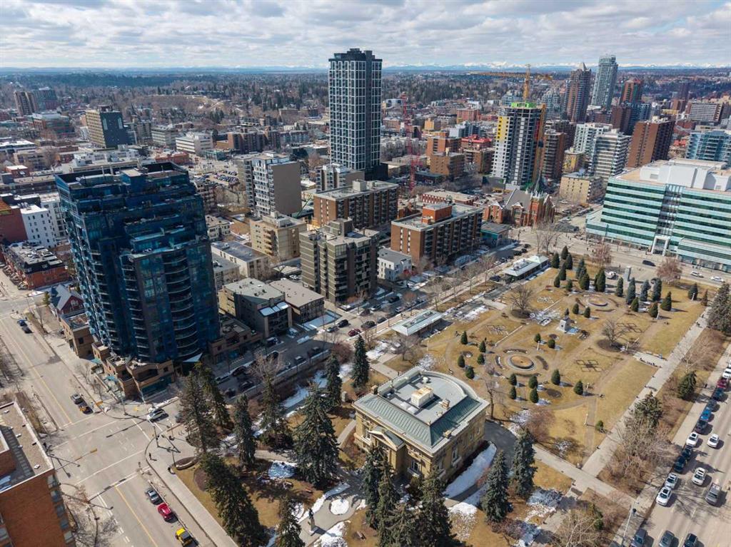 Welcome to The Park, one of Calgary’s most sought-after addresses, perfectly positioned across from Central Memorial Park and Haultain Park, two designated historic sites that protect your views and guarantee the green space, natural light, and privacy you’ll enjoy for years to come. This stunning 2-bedroom, 2-bathroom plus den condo on the 6th floor features floor-to-ceiling windows facing northwest, flooding the living room with natural light while framing spectacular views of the park and Calgary skyline. The sleek kitchen features granite countertops, stainless steel appliances, and a large island flowing seamlessly into the open living and dining areas, equally suited for relaxed evenings in or entertaining guests. The primary suite offers a walk-through closet and private 4-piece ensuite, while the versatile den and second bedroom provide flexibility for every lifestyle. Step outside to your private balcony with a gas BBQ hookup and soak in the park and skyline views. Additional features include in-suite laundry, central air conditioning, titled underground parking, and a storage locker. Residents enjoy concierge service, a fitness centre, social lounge, rooftop patio with community garden and BBQ area, guest suite, bike storage, and EV charging. This is a pet friendly building with some of Calgary’s best dog walking right outside your door, with Central Memorial Park, Victoria Park, and Haultain Park all within easy reach. Close enough to walk to the restaurants and bars of 17th Avenue yet far enough removed to come home to genuine peace and quiet. This is inner-city living at its finest.