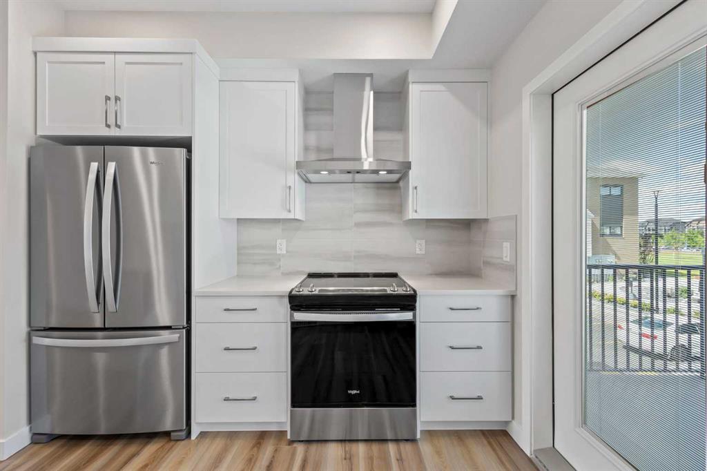 Perfectly positioned just steps from a beautiful park, this home enjoys a rare sense of openness with partial park and mountain views right from your back door. The open-concept main floor features durable vinyl plank flooring, fresh white shaker cabinetry, quartz countertops, and stainless steel appliances. Oversized windows fill the living and dining areas with natural light, while the private deck with a BBQ gas line is ideal for summer grilling.