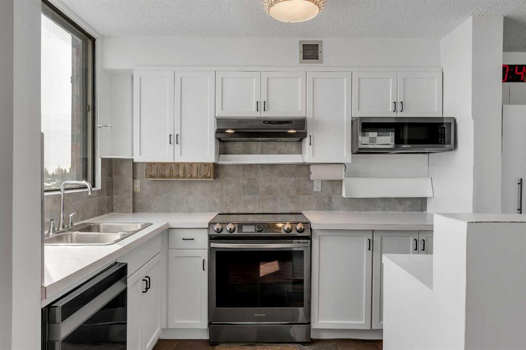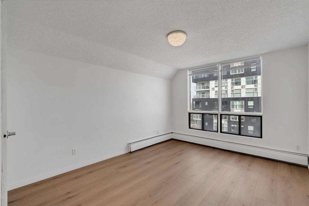 Welcome to Unit 602 at 2909 17 Avenue SW — an exceptional opportunity to own a beautifully updated 2-bedroom condo in one of Calgary’s most vibrant inner-city locations. This bright end unit offers incredible downtown views from multiple windows, the kitchen, and your private balcony. Featuring an open-concept layout, the space is finished with durable hard-surface flooring throughout, including maple hardwood, LVP, and slate tile, creating a clean and modern feel. The kitchen is designed for both function and entertaining, showcasing white cabinetry, ample storage, an island, and thoughtful custom features such as a wine rack and spice rack. It is equipped with a newer slide-in range, microwave, hood fan, and dishwasher. Both bedrooms are generously sized, with the primary bedroom offering a spacious walk-in closet. Additional highlights include in-suite laundry with newer washer and dryer, in-suite storage, and a titled underground heated parking stall for year-round convenience. Located along trendy 17th Avenue SW, this home puts you steps from some of Calgary’s best restaurants, shops, and amenities. With easy access to the downtown core, LRT, transit, parks, and recreational facilities, this is urban living at its best.
