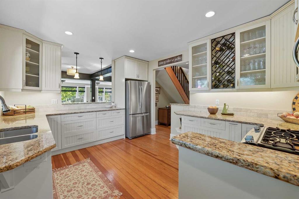 Welcome to one of High River’s most iconic homes-a timeless 1940 Craftsman-style beauty nestled on a rare double corner lot. Just a short stroll from the charming downtown, this heritage property has been THOUGHTFULLY & EXTENSIVELY RENOVATED, with a substantial addition completed in 2021 that blends seamlessly with the original architecture. With OVER 4,100 SQ FT OF DEVELOPED LIVING SPACE, this home offers the perfect balance of historic character & modern comfort. At the heart of the home, you’ll find a custom-designed kitchen surrounded by rich millwork, exposed brick, & sun-filled living spaces. The cozy living room, complete with a gas fireplace & period-inspired detailing, invites you to unwind & enjoy the character that only a home of this vintage can offer. One of the most remarkable features of the addition is the use of 120 year-old Douglas Fir hardwood flooring, sourced to blend perfectly with the original hardwood-a detail that speaks to the exceptional craftsmanship & care taken in every element of this renovation. The home features 3 bedrooms and 4.5 beautifully finished bathrooms. The primary bedroom is a true retreat, offering peaceful views & convenient access to the back of the property. The ensuite is luxurious & functional, with heated tile floors, a double vanity & a large tiled walk-in shower. Off the generous walk-in closet, you’ll find a conveniently located laundry area. A standout feature is the expansive loft space, with soaring vaulted ceilings, offering endless potential—whether used as additional bedrooms, a home office, or private gym. The fully developed basement includes another inviting living area, a wet bar for entertaining, a second gas fireplace, & ample room to relax or host guests. NOTABLE UPGRADES: ALL NEW PLUMBING, ELECTRICAL, WINDOWS, INSULATION, ROOF, FURNACES AND HOT WATER TANKS. Outside, the property truly shines. Mature trees, lush gardens, & curated landscaping create a sense of privacy & peace, like your own private park. A heated koi pond adds a tranquil touch & the wrap around covered porch provides the perfect place to sit & enjoy the surrounding beauty.The saltwater hot tub provides a luxurious way to unwind, while the whimsical “She Shed” in the garden offers a quiet retreat. The stunning legal carriage suite is located above the TRIPLE detached garage. Just under 700 sq ft, cathedral ceilings, a full bathroom, huge balcony, & oversized windows that flood the space with light, this one-bedroom legal suite feels like a peaceful sanctuary-ideal for guests, extended family, or tenants. Schools & the hospital are nearby, making this home as practical as it is picturesque. Whether you’re seeking a quiet lifestyle, small-town charm, space to grow, or a truly unique & character-rich place, this home offers something extraordinarily special.