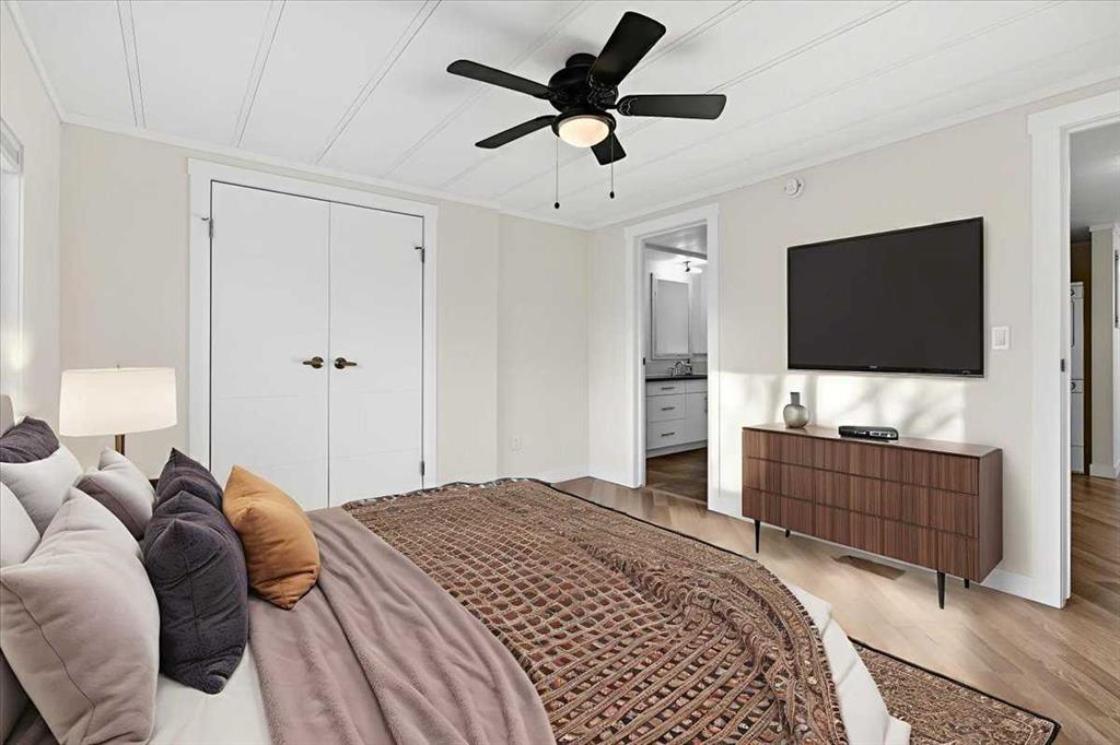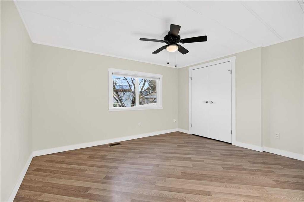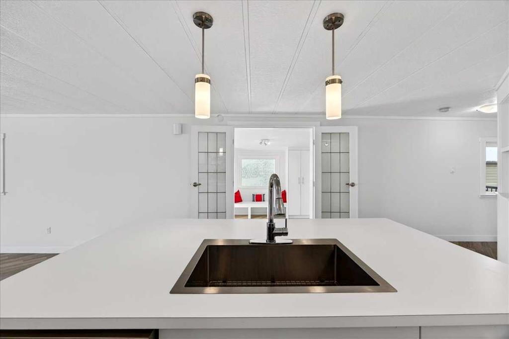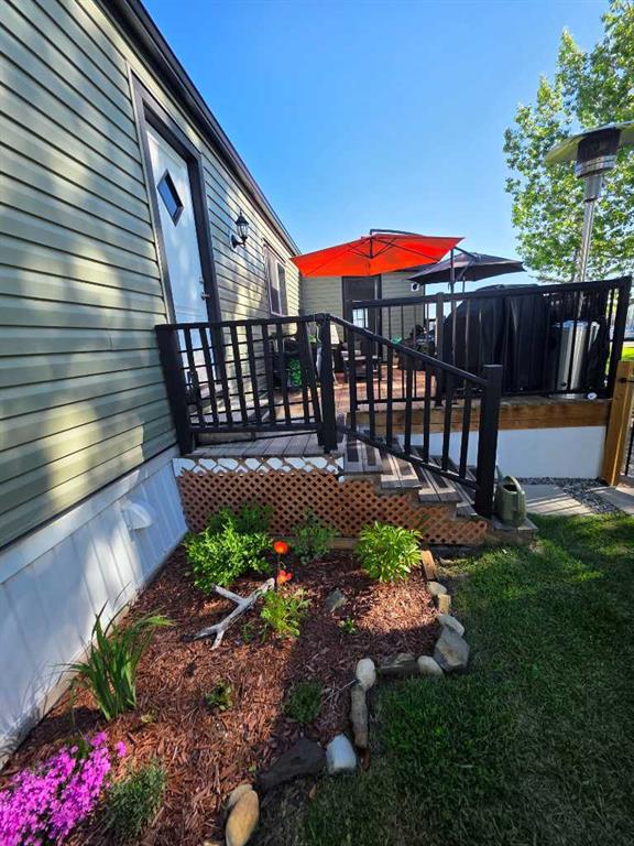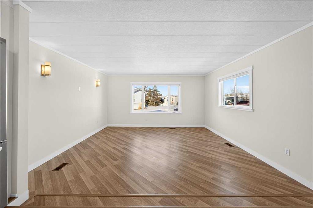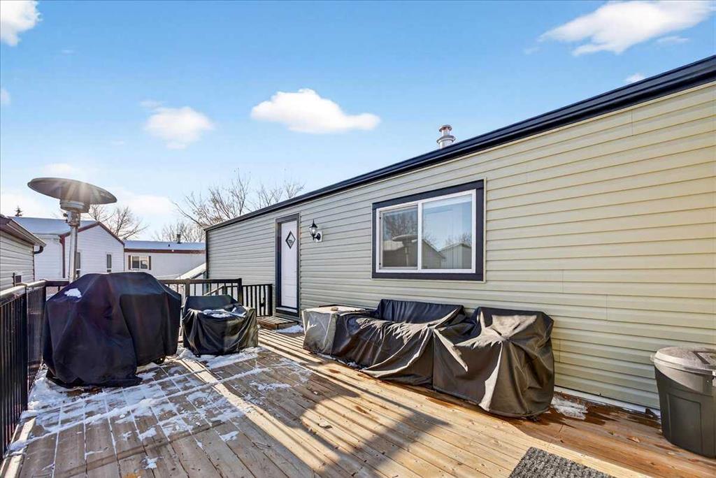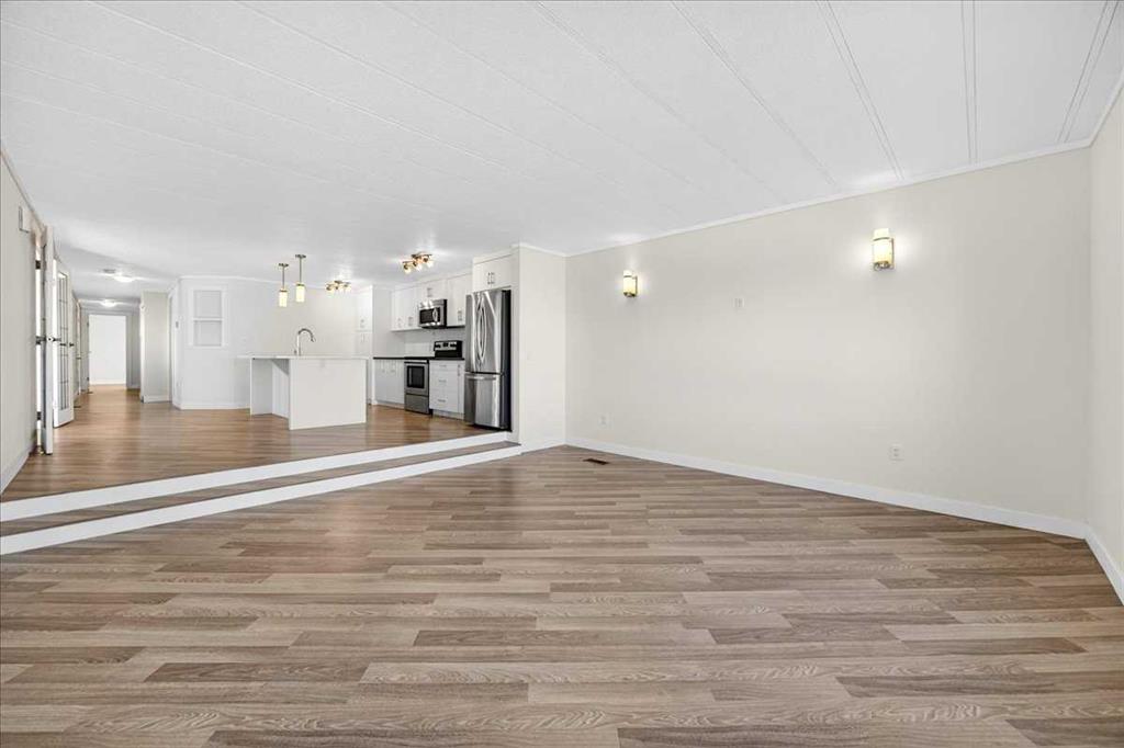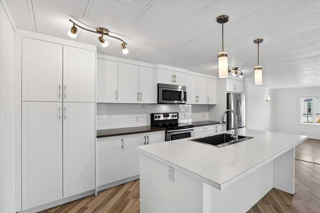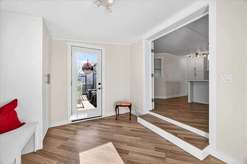 Welcome to Homestead Acres, a quiet and well-maintained 50+ community. This recently renovated and maintained mobile home is truly move-in ready. Extensive updates completed in 2022 include insulation, roof, exterior wrap, windows, doors, and air conditioning, with a newly installed underbelly added in 2024. The home features two bedrooms, two bathrooms, a spacious open-concept kitchen and living area, and central air conditioning. Upon entry, you are welcomed by a large foyer with built-in cabinetry and bench seating, providing a functional and inviting space for guests. The kitchen serves as the heart of the home, offering ample room for cooking, entertaining, and everyday living. The open living area provides flexible space to suit your lifestyle, whether for reading, relaxing, or hosting movie nights. Toward the rear of the home, the second bedroom offers excellent natural light and a closet organizer. Nearby is a bright and well-appointed four-piece main bathroom, along with a convenient stacked washer and dryer. The primary bedroom is generously sized to accommodate a king-size bed and includes a walk-in closet and a private ensuite featuring dual vanities and a large shower. Outside, enjoy a low-maintenance, fenced yard and a deck designed for relaxation, complete with a propane heater. The exterior of the home comes with permanent outdoor lights already installed, for all your seasonal lighting themes! An insulated and powered shed offers additional space for hobbies or storage. With minimal yard maintenance required, you’ll have more time to enjoy your home, while still having the flexibility to personalize the outdoor space to your vision.
