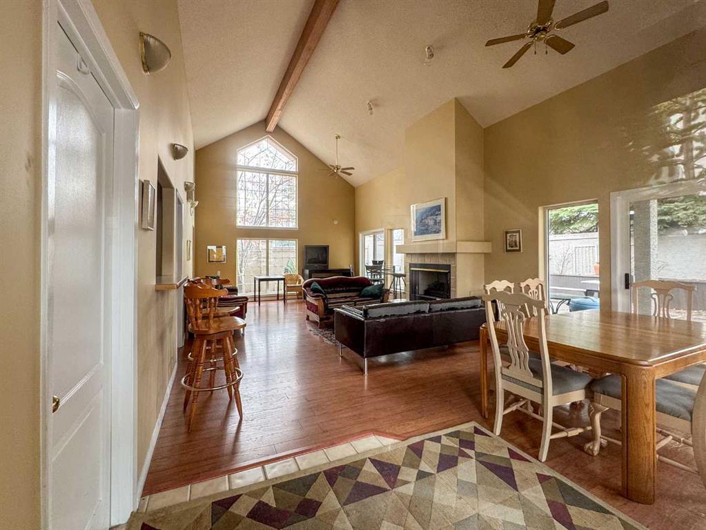 Welcome to this beautifully renovated bungalow-style townhome in the heart of Calgary. Situated in Signal Hill and offering 1,036 square feet and heated single attached garage. Thoughtfully designed living space, exceptional 2-bedroom home showcases approximately $135,000 in high-quality renovations completed approximately 10 years ago. Step inside to discover a wood burning fireplace, custom milled cherry cabinetry with display glass, granite countertops, and a full stainless steel appliance package in the kitchen—perfectly blending style and functionality. Durable large format tile runs throughout the home, adding a sleek, cohesive feel. The versatile second bedroom features double solid core doors, making it ideal as a den, home office, or guest space. Enjoy seamless indoor-outdoor living with a fully enclosed main floor patio—perfect for relaxing year-round. Additional highlights include a single attached garage and a prime location backing onto a peaceful green space, complete with an apple tree and surrounded by beautiful apple trees throughout the complex. Conveniently situated close to LRT 69 Station, bus access, Sunterra Market, and a variety of boutique shops. This home offers the perfect balance of comfort, style, and accessibility. Don’t miss this unique opportunity to own a turn-key property in a highly desirable location with a 12 minute commute to downtown.