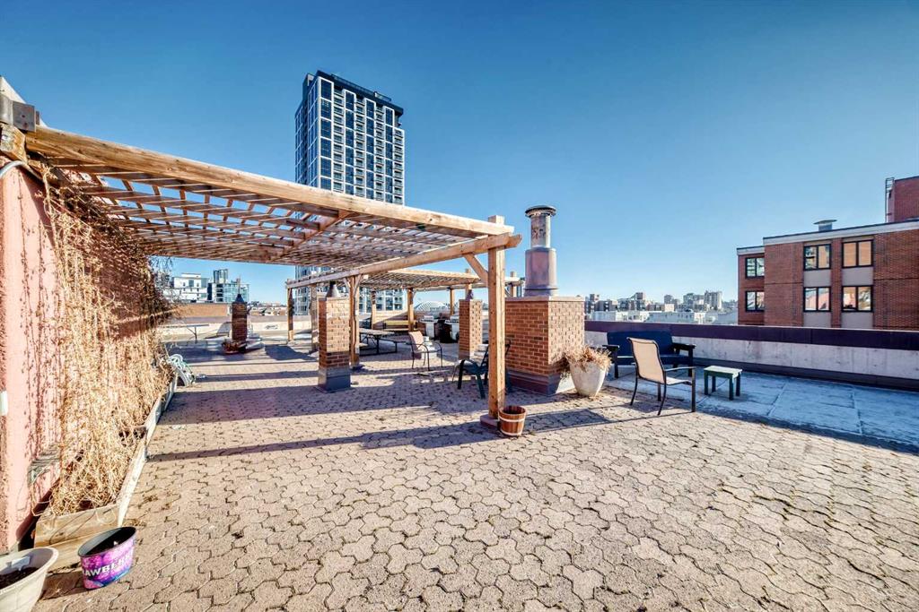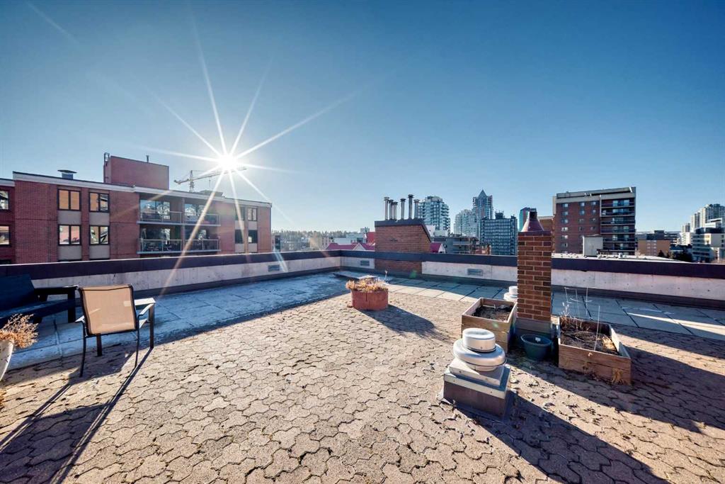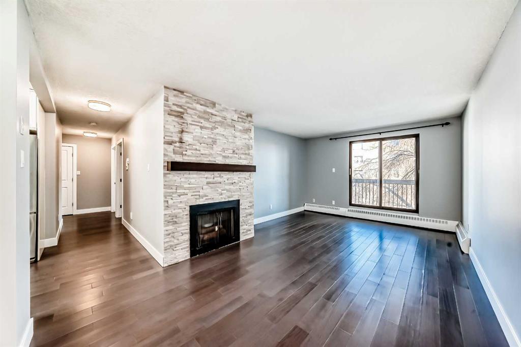 Experience inner-city living at its finest in this beautifully renovated condo offering breathtaking city views. Thoughtfully updated with the urban executive in mind, this residence showcases a sleek, modern design throughout. The kitchen is a standout, featuring quartz countertops, upgraded stainless steel appliances, a stylish upgraded faucet, and newer cabinetry that seamlessly flows into a spacious dining area—perfect for hosting. The generously sized living room is warm and inviting, highlighted by hardwood flooring, a natural gas fireplace, and patio doors that open to the outdoors, creating an ideal space for both relaxing and entertaining. This home offers two large bedrooms, including a spacious primary retreat complete with a walk-in closet featuring custom built-ins and direct access to the impressive 22-foot oversized balcony. The fully renovated four-piece bathroom is finished with a contemporary vanity and modern touches. Additional conveniences include a large in-suite storage room with washer and dryer, knockdown ceilings, updated lighting, and fresh paint throughout. Residents also enjoy access to a spectacular rooftop patio with panoramic 360-degree city views. The parking stall is exceptionally well-located as an end space, offering ample clearance and accommodating oversized vehicles. Lovingly maintained and move-in ready, this exceptional condo is truly a rare find. Call today to book your private viewing of this inner-city gem.