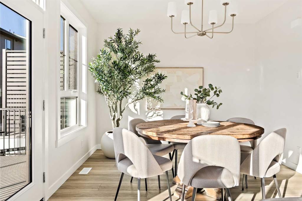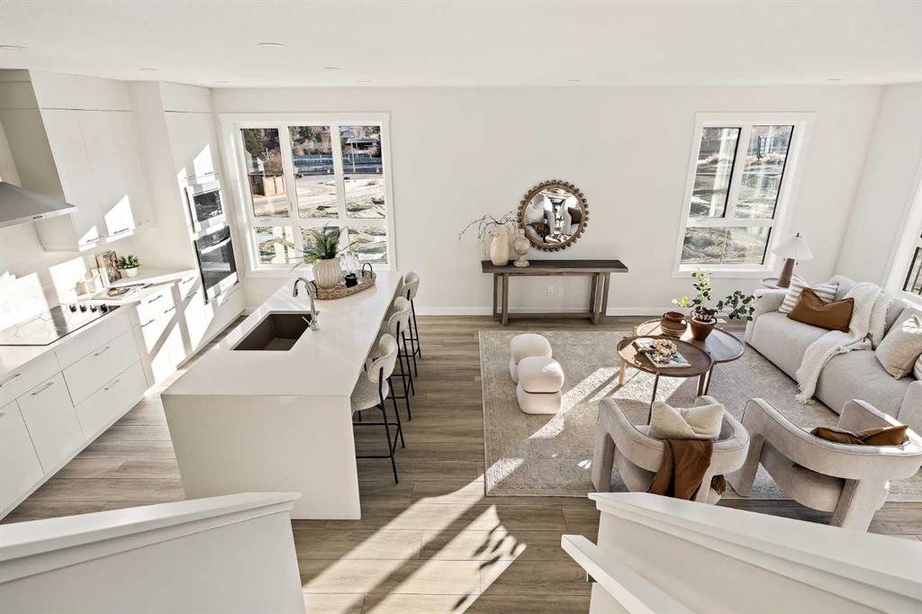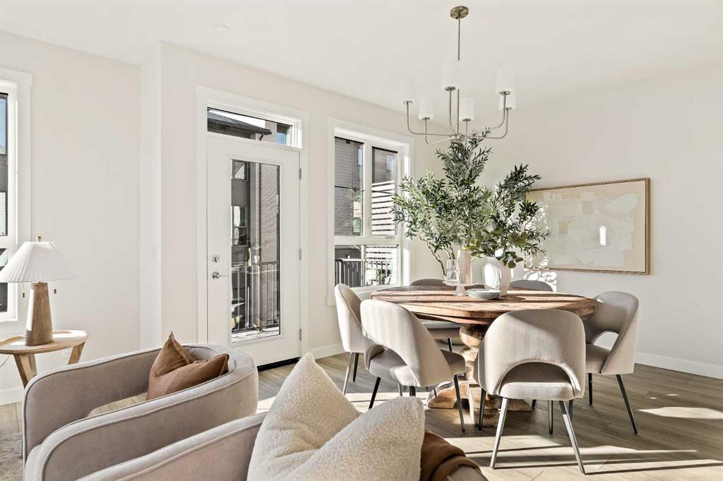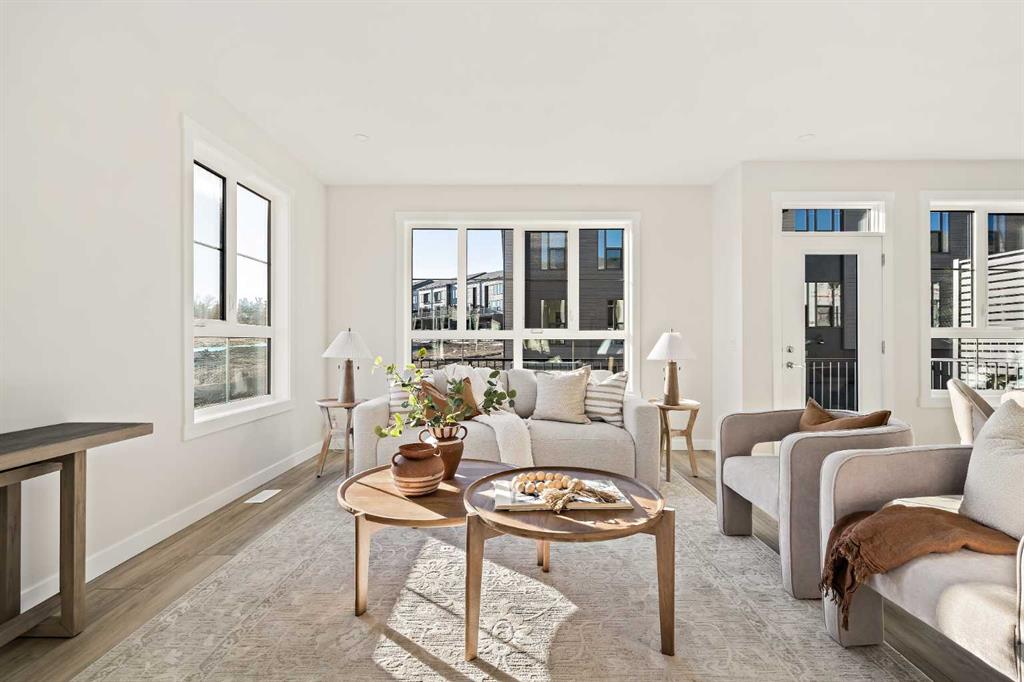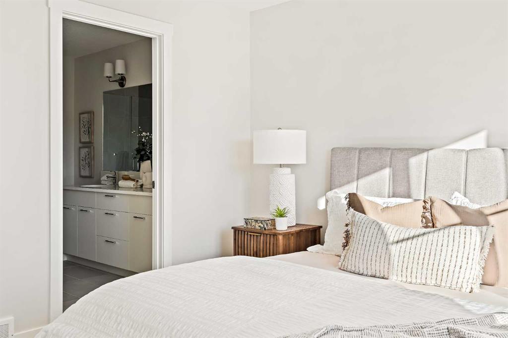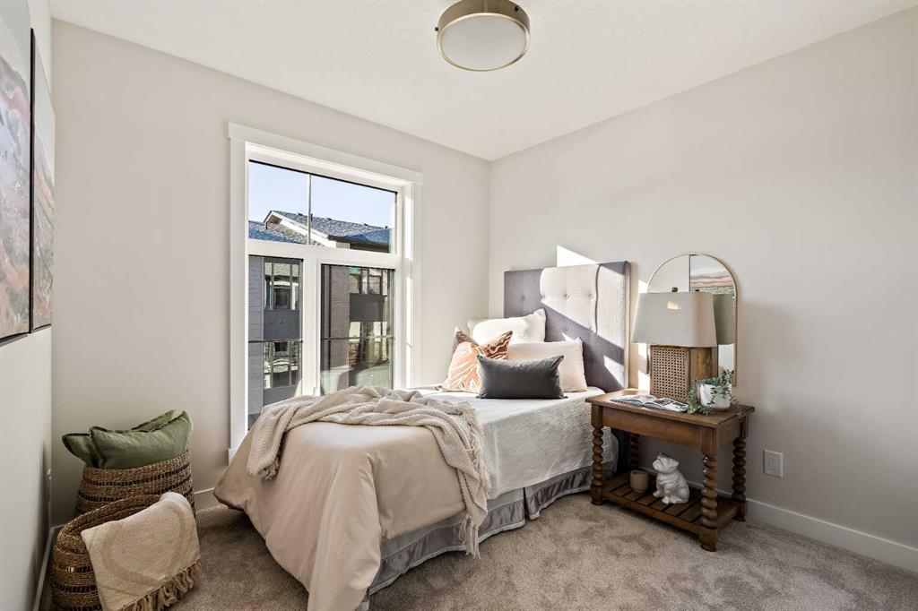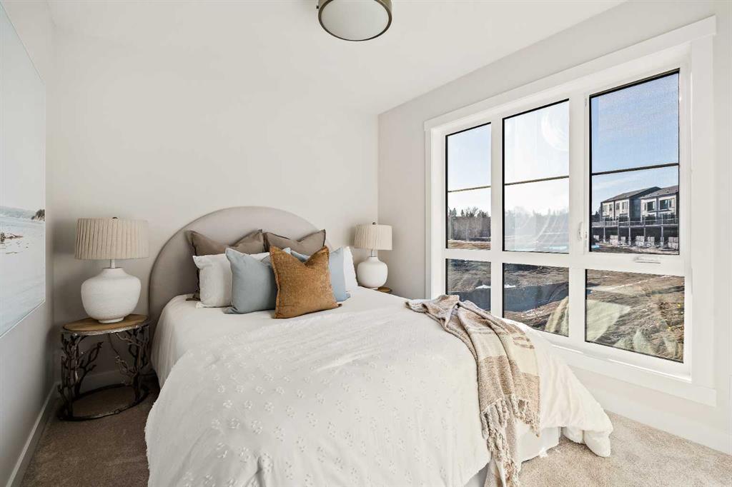 Welcome to the Torrey at Crown Park – an exceptional opportunity offering a brand-new townhouse featuring 3 bedrooms, 2.5 bathrooms, and a private double-attached garage. Offering over 1,500 ft² of thoughtfully designed living space, this end-unit townhome is one of the last remaining opportunities and is perfectly positioned within the development. Large, west-facing windows bring in natural light throughout the day, creating a bright and comfortable living environment. The bright and open main living area showcases a stunning kitchen with endless upgrades, including built-in appliances, quartz countertops, and timeless white cabinetry. Designed with entertaining in mind, the kitchen flows seamlessly into the expansive main living area, creating the perfect space for gatherings or everyday living. Large west-facing windows throughout the main level enhance the sense of space and light, creating a welcoming atmosphere year-round. The impressive great room offers ample space for virtually any furniture configuration and opens directly into the large dining area, allowing for a seamless transition between spaces. The main level is complete with a 2-piece powder room and direct access to the sprawling 26′ balcony that spans the width of the home. The outdoor living space is equipped with a BBQ gas line and hose bib, adding everyday convenience and making it easy to enjoy outdoor living. The upper level has been thoughtfully designed, with the primary suite spanning the width of the home while the secondary bedrooms and main bathroom are positioned on the opposite end for added privacy. The ~12′ x 12′ primary bedroom easily accommodates a king bedroom suite and includes a walk-in closet and private 4-piece ensuite featuring dual sinks and a walk-in tiled shower. The upper level is completed by two additional bedrooms, a full bathroom, and convenient upper-floor laundry. The flexibility of three bedrooms makes this home ideal for families, guests, or a dedicated home office, offering excellent long-term versatility and value. The entry level provides access to the private double attached garage, which includes additional space for storage along with a large dedicated storage room, keeping everything organized and secure year-round. Located in Crown Park – one of Calgary’s last remaining inner-city developments – just minutes from downtown, this home offers exceptional convenience with major transportation routes, amenities, and green spaces all close by. Perfect for first-time buyers, investors, or those seeking a lock-and-leave lifestyle with maintenance-free living, this brand new home is backed by a comprehensive builder warranty and Alberta New Home Warranty, allowing you to purchase with confidence and peace of mind. **Please note: Photos are of a previous show unit and are not an exact representation of the property for sale.