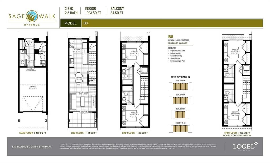 Logel Homes is proud to present their latest townhome offering, located at the newly released Sage Walk Ravines development. Designed with a modern fibre cement exterior, this home also includes 9′ knockdown ceilings, luxury vinyl plank flooring, and oversized windows that give an abundance of natural light. The kitchen features multiple designer cabinetry options, soft-close dovetailed drawers and doors, quartz countertops, and a full-height backsplash. Stainless steel appliances include a fridge, smooth-top self-cleaning range, and an over-the-range microwave with hood fan. Quartz countertops continue in the bathrooms, and a stacked washer and dryer are included. Both bedrooms feature their own en-suite bathrooms. A 72 sq. ft. deck off the living room and an oversized underdrive garage complete the layout. Situated along the ravine with direct access to walking and biking paths, plus a pedestrian bridge connecting to nearby restaurants and shopping at Sage Hill Crossing (T&T Supermarket and more), and only minutes from the Gates of Nolan Hill retail area. Design your home with over 2000 standard and upgrade options with a one-on-one Interior Design Services appointment, complimentary with every pre-construction purchase. Finally, Alberta New Home Warranty coverage is included for peace of mind.