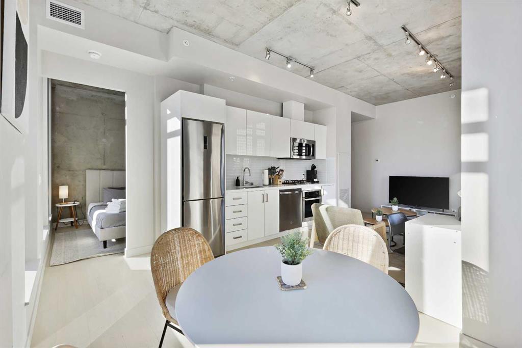 Experience modern urban living in this stylish 2-bedroom, 2-bathroom corner condo on the 6th floor of the sought-after Six and Tenth building in Calgary’s Beltline. Floor-to-ceiling windows fill the space with natural light and showcase stunning views of downtown. The open layout features exposed concrete, quartz countertops, a gas range, and stainless-steel appliances. Enjoy your private balcony, in-suite laundry, and titled underground parking. Building amenities include a fitness centre, outdoor pool, concierge, and social spaces. Located steps from amazing restaurants, shopping, and transit, and minutes to the Stampede grounds. Short-term rentals permitted, offering great flexibility for owners and investors alike.