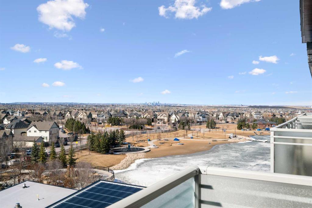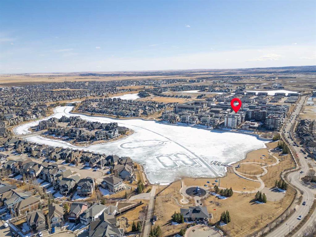 Elevated lake living meets panoramic skyline views in this rare top-floor residence at Westman Village in Mahogany. Positioned at the top of the building with soaring ceilings and expansive west exposure, this executive two-bedroom, two-bathroom luxury condo captures unobstructed mountain, lake, and downtown skyline views — a vantage point seldom available in Calgary’s condominium market.