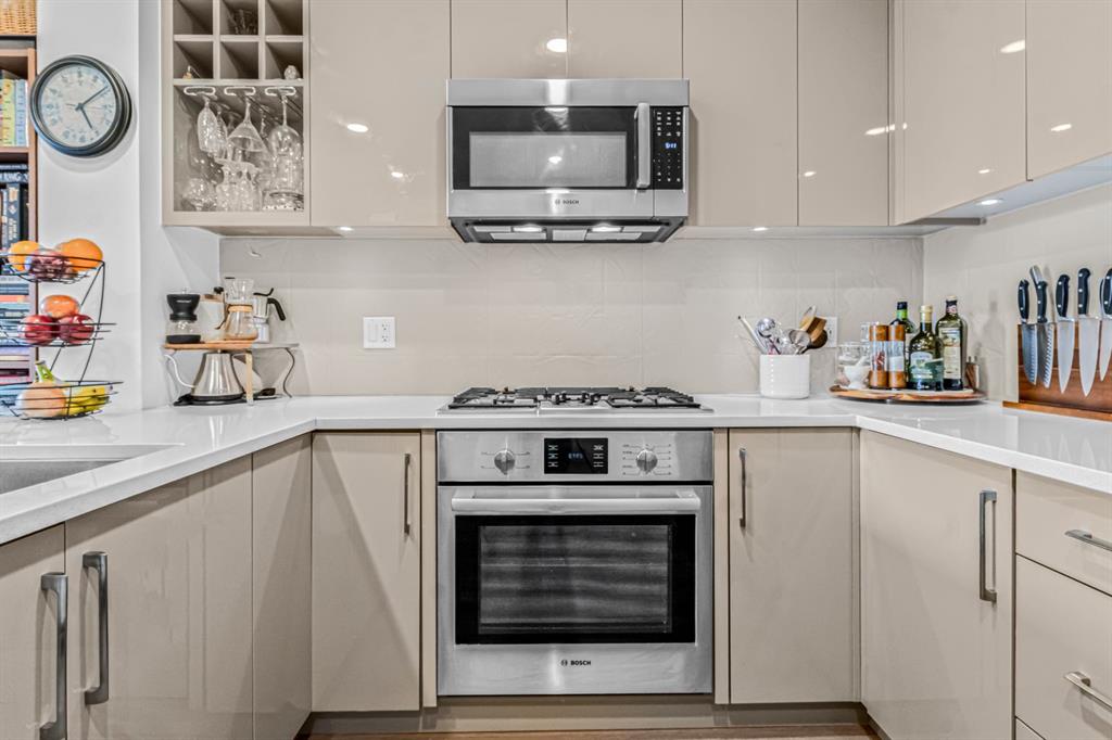 Welcome to this stunning one-bedroom penthouse suite located in the highly sought after community of Hillhurst. Perfectly positioned for an inner-city lifestyle, you’ll be just steps away from downtown, the Sunnyside C-Train station, Riley Park, trendy coffee shops, boutique shopping, and some of Calgary’s best restaurants. This top floor unit is designed to impress with a bright, open layout and floor-to-ceiling windows that fill the space with natural light. The kitchen, complete with quartz countertops, stainless steel appliances, and a gas cooktop with an eat-up breakfast bar, flows seamlessly into the dining and living areas, the perfect open-concept space for entertaining or relaxing at home. The private balcony offers breathtaking mountain views, an ideal backdrop for your morning coffee or evening wind-down. The primary bedroom features a walk-through closet leading to a spa-inspired ensuite, creating a relaxing retreat right at home. Additional features include in-suite laundry, a titled heated underground parking stall, an assigned storage locker, bike room and access to a residents’ car wash. If you’ve been looking for the perfect blend of convenience, style, and comfort in the heart of Calgary, this Hillhurst penthouse is it! Pets are welcome with board approval. Seller is offering 3 months paid condo fees to the buyer!
