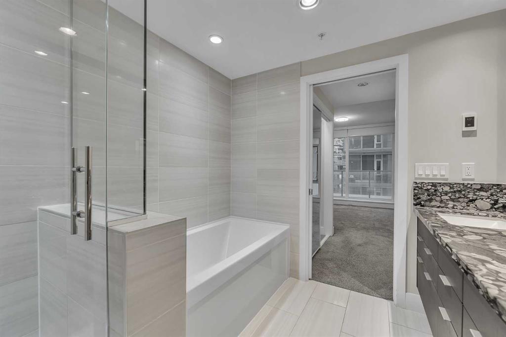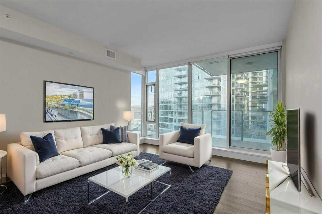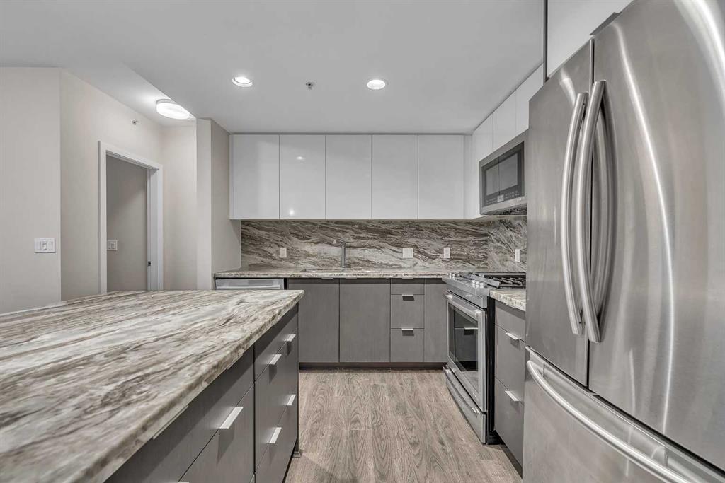 Experience elevated urban luxury in the heart of Downtown East Village at the prestigious Evolution Condos. This beautifully appointed 2-bedroom, 2-bathroom residence offers 891 sq. ft. of refined living space designed for both comfort and sophistication. The open-concept layout is enhanced by expansive windows, filling the home with natural light and showcasing breathtaking city and river views. At the heart of the home is a chef-inspired kitchen featuring granite countertops, a large central island perfect for entertaining, and a gas stove, complemented by sleek cabinetry and modern finishes. The spacious primary bedroom includes a private 5-pc ensuite, while a well-proportioned second bedroom and full bath provide flexibility for guests or a stylish home office. Underground parking and a secure storage locker add everyday convenience. Residents of Evolution enjoy hotel-inspired amenities, including a state-of-the-art fitness centre with sauna and steam room, an elegant party room, rooftop patio with dual BBQ stations, central air conditioning, and 24-hour concierge service. Perfectly located just steps from the Bow River Pathway and St. Patrick’s Island, this home offers unparalleled access to outdoor recreation, walking, jogging, and cycling. Surrounded by premier dining, boutique shopping, entertainment, and public transit, this is downtown Calgary living at its most refined. This residence offers far more than condo living—it delivers an elevated lifestyle connected to the river and the heart of the city. Schedule your showing and make it yours.