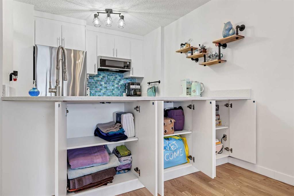 FREE CONDO FEES FOR 3 MONTHS! You heard that right! Your first three months are on us! Discover an incredible OPPORTUNITY to own a TASTEFULLY RENOVATED condo in the PRESTIGIOUS EAU CLAIRE district at an affordable price! Step inside to find a bright open-concept layout anchored in this 1 Bed/1 Bath condo in PRINCES CROSSING with sunny SOUTH EXPOSURE and lovely views from the 6TH FLOOR in this CONCRETE BUILDING. CUSTOM-BUILT KITCHEN FOR THE BUDDING CHEF features ceiling- height cabinetry, UPGRADED STAINLESS STEEL APPLIANCES including a sleek INDUCTION COOKTOP WITH CONVECTION OVEN, glass tile backsplash, QUARTZ COUNTERTOPS, and extended island that seats four. Additional CUSTOM CABINETRY added to island for more storage. The spacious living area with LARGE PATIO DOORS that open to your circular 180 degree balcony where you can take in the south URBAN SKYLINE AND WEST VIEWS. Renovated custom bath with NEW VANITY, QUARTZ COUNTER-TOP, mirrored storage cabinet and DEEP SOAKER TUB. Updated milwork, lighting and hardware throughout. Smart details like IN-SUITE LAUNDRY and a SPACIOUS STORAGE ROOM (big enough for a bike and more) make everyday living easy and organized. PETS ALLOWED with Board approval. Princes Crossing offers a variety of lifestyle amenities including a well-equipped GYM WITH STEAM ROOM, on-site convenience store, meeting room, concierge service and a HEATED UNDERGROUND PARKING STALL. All of this just steps from the BOW RIVER, incredible dining and trendy cafes yet nestled on a quiet, tree-lined street in one of the city’s most exclusive enclaves. Experience the best of downtown living – effortless and affordable! SELLER OFFERING 3 MONTHS OF CONDO FEES WITH THIS AMAZING CONDO!