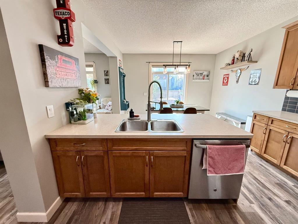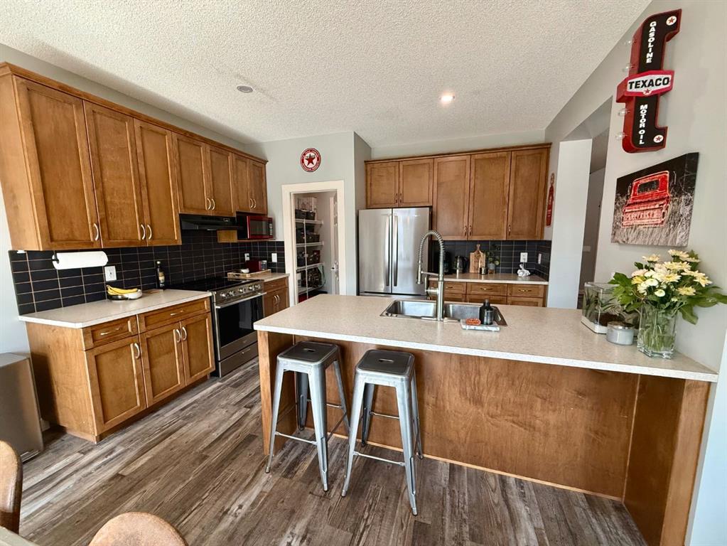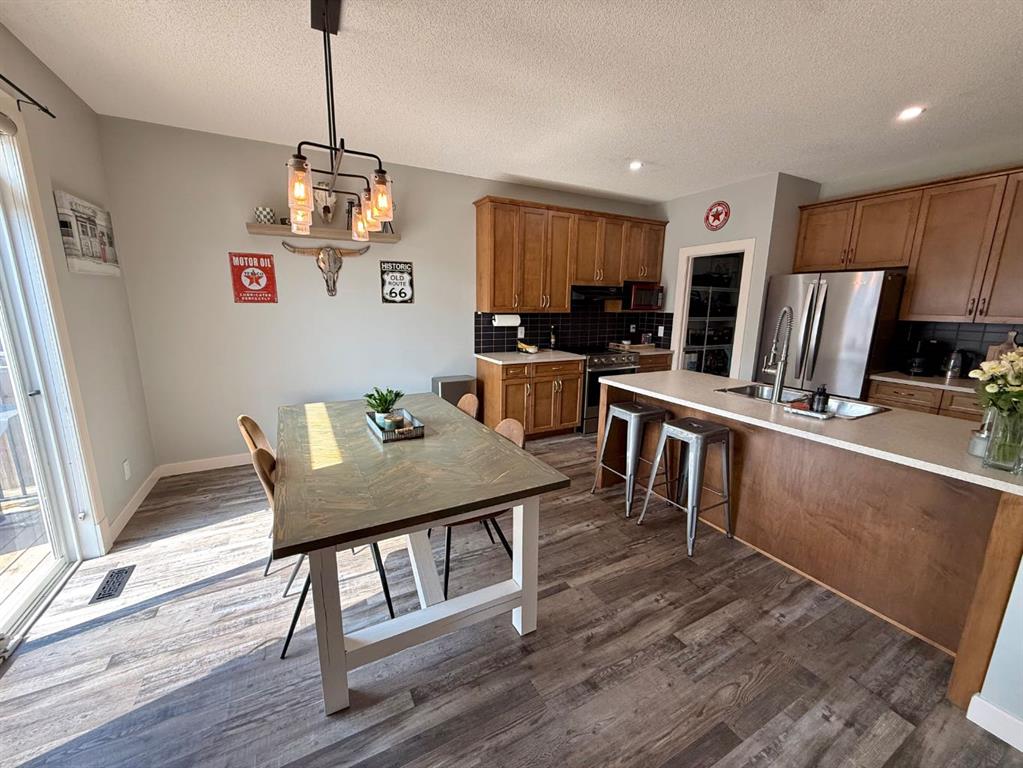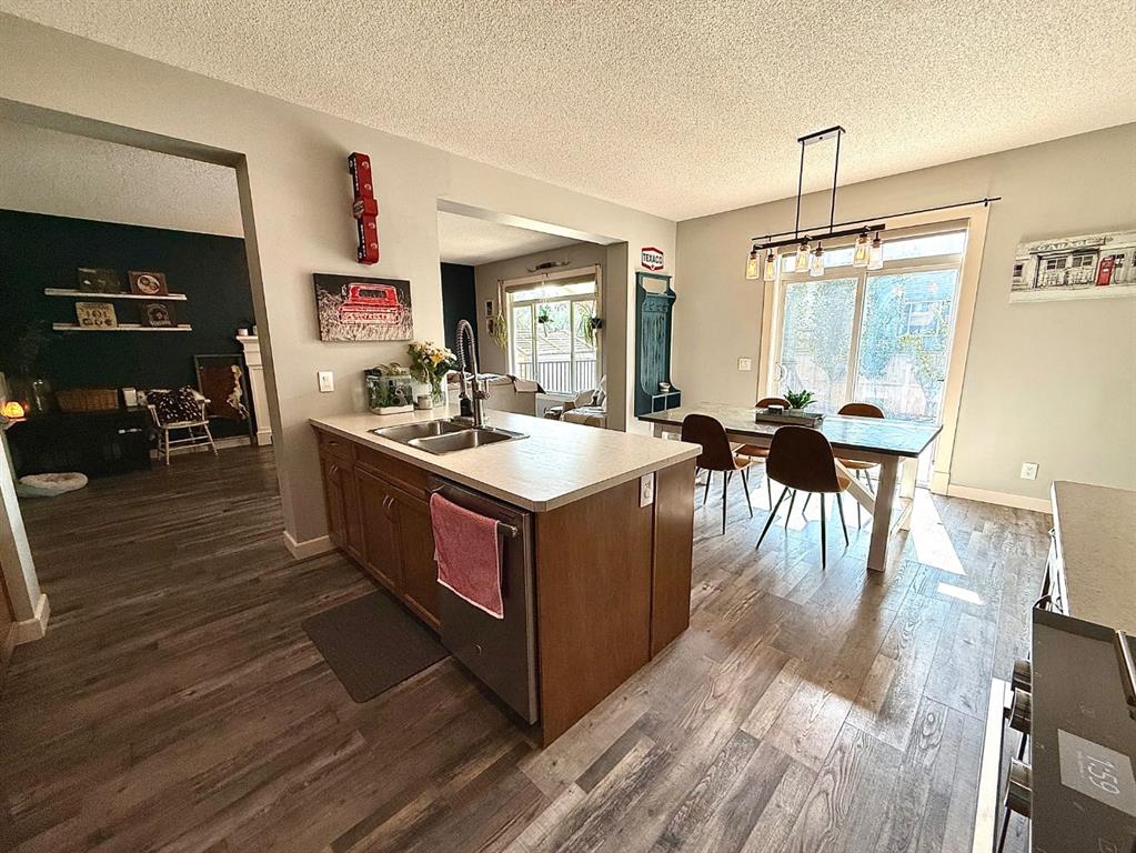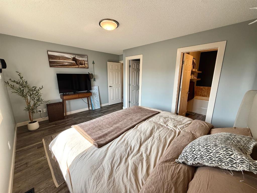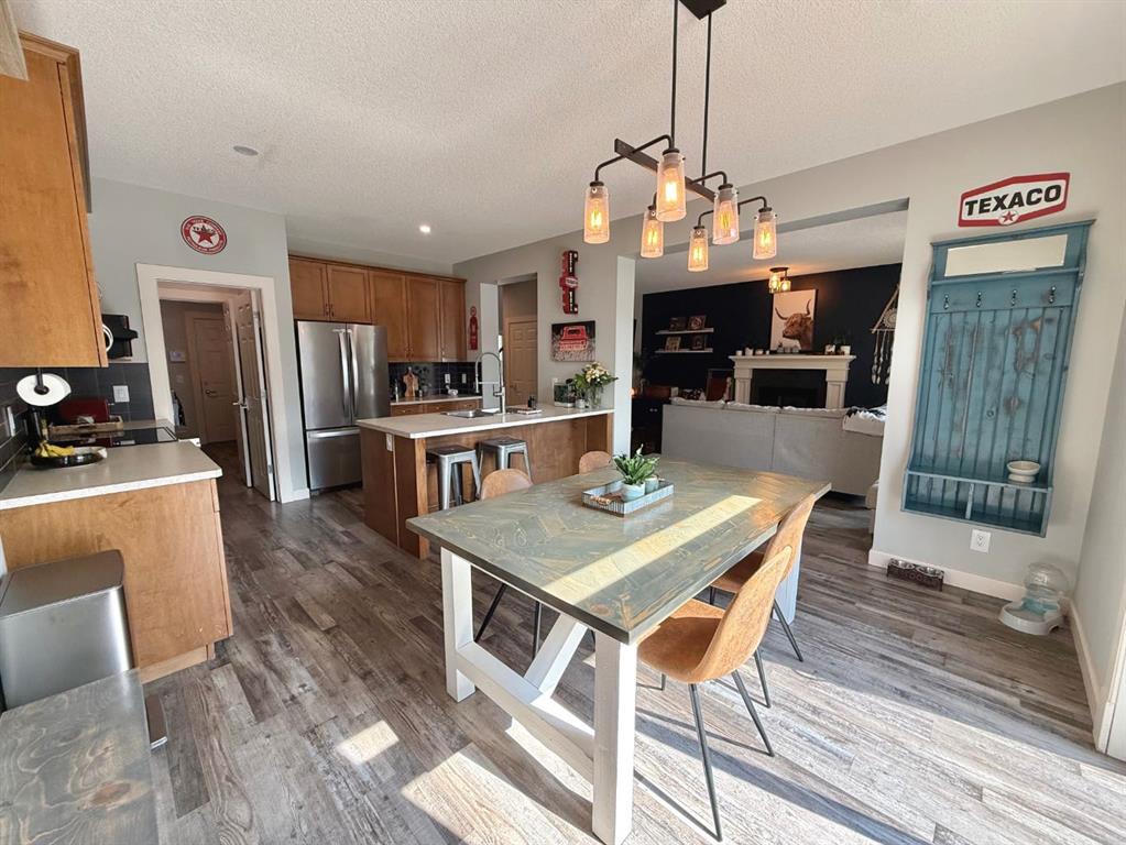 Welcome to Montrose – one of High River’s most sought-after communities with its park-like setting, walking trails, ponds, and timeless architecture. This gorgeous fully developed 2-storey home is move-in ready and perfectly located on a quiet street close to schools, parks, and shops. Inside you’ll love the bright open-concept layout with 9 ft ceilings, a cozy fireplace, and a wall of windows filling the home with natural light. The kitchen features a walk-through pantry, large eating island, and sunny dining area, while upstairs offers 3 spacious bedrooms including a primary suite with ensuite plus another full bath. The main floor includes a handy 2-piece bath and the newer basement development adds a family room, office/den, bedroom, full bath, and stunning bamboo hardwood floors. This home also has air conditioning, luxury vinyl plank flooring, and fantastic outdoor living with a 28’ x 9’8” deck, gas BBQ hookup, and your very own hot tub. The garage is 18’3” x 19’4” and the curb appeal speaks for itself. Montrose offers a wonderful lifestyle with Shepard Family Park, the canal pathways, ponds, an off-leash dog park, and endless paved trails all right outside your door. This home has been well cared for and is ready for its next family to enjoy.