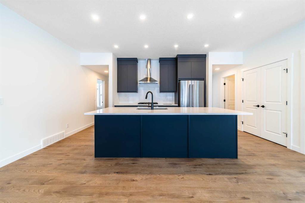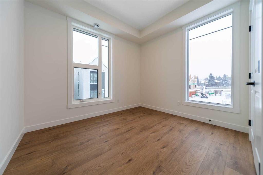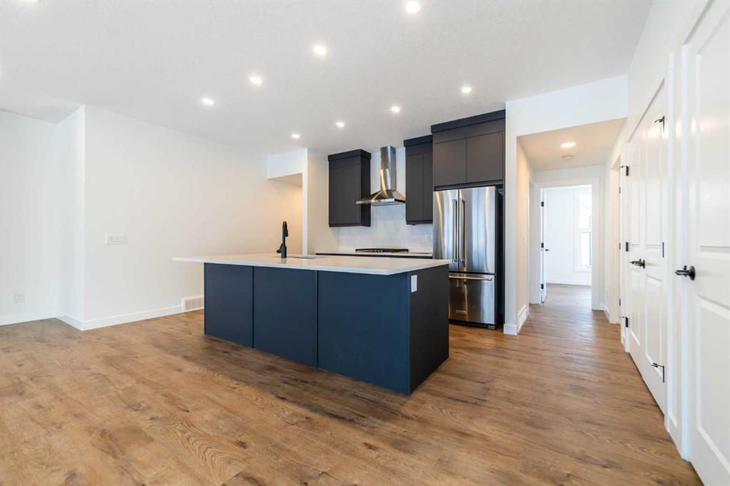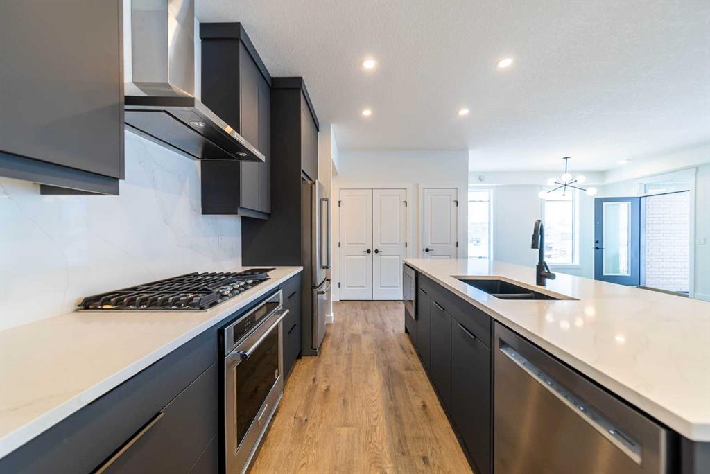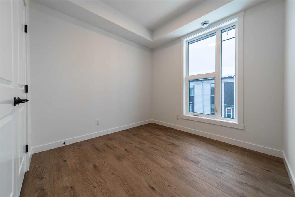 The Hyde at Crown Park is the perfect townhouse for those wanting single-level living without compromise. Featuring 3 bedrooms, 2 bathrooms, and nearly 1,400 ft2 of living space on one level with a private double attached and endless storage space, this home is perfect for those looking to downsize without compromising. Located in the heart of Crown Park overlooking a central park and just minutes from downtown Calgary, this brand new end-unit townhome perfectly combines maintenance-free living within a central urban setting. The beautifully designed main living area has the perfect open-concept design, making it ideal for entertaining and hosting. The kitchen anchors the main living space and opens perfectly to the living and dining areas with a wall of southwest-facing windows flooding the space with natural light. The timeless kitchen is complete with shaker cabinets, quartz countertops, and a suite of built-in appliances including a gas cooktop. The expansive living area has a central fireplace and ample seating space for six+ people, making entertaining a breeze. The large dining area can easily accommodate a table with seating for eight people and includes additional windows for added natural light. The primary suite is located at one end of the property, with laundry providing added privacy between the owner’s suite and secondary bedrooms. A luxurious 4 pc ensuite with dual sinks and a walk-in shower as well as a large walk-in closet complete the primary suite. Two additional bedrooms provide added flexibility, with space for a guest bedroom + home office space or media room, and have their own full bathroom. The main living area is complete with a large laundry room with additional cabinets for storage and a countertop for added convenience. A ~26’x8′ balcony provides the perfect outdoor living space – complete with a gas line, hose bib, and overlooking the park with optimal southwest exposure ensuring you’re maximizing your sun and natural light all year long. The lower level of the property provides access to the oversized private double attached garage and two expansive storage spaces provide the space you’ve been looking for! Located at Calgary’s newest inner-city development, this brand new home provides a lock-and-leave lifestyle without compromise and includes full builder warranty + Alberta New Home Warranty. These rare designs don’t come available often – this is your opportunity to get the bungalow-style home you were looking for that offers single-level living with a private garage and low fees that provide you with a maintenance-free lifestyle. *Note photos are of a previous listing and are not an exact representation of the property for sale.