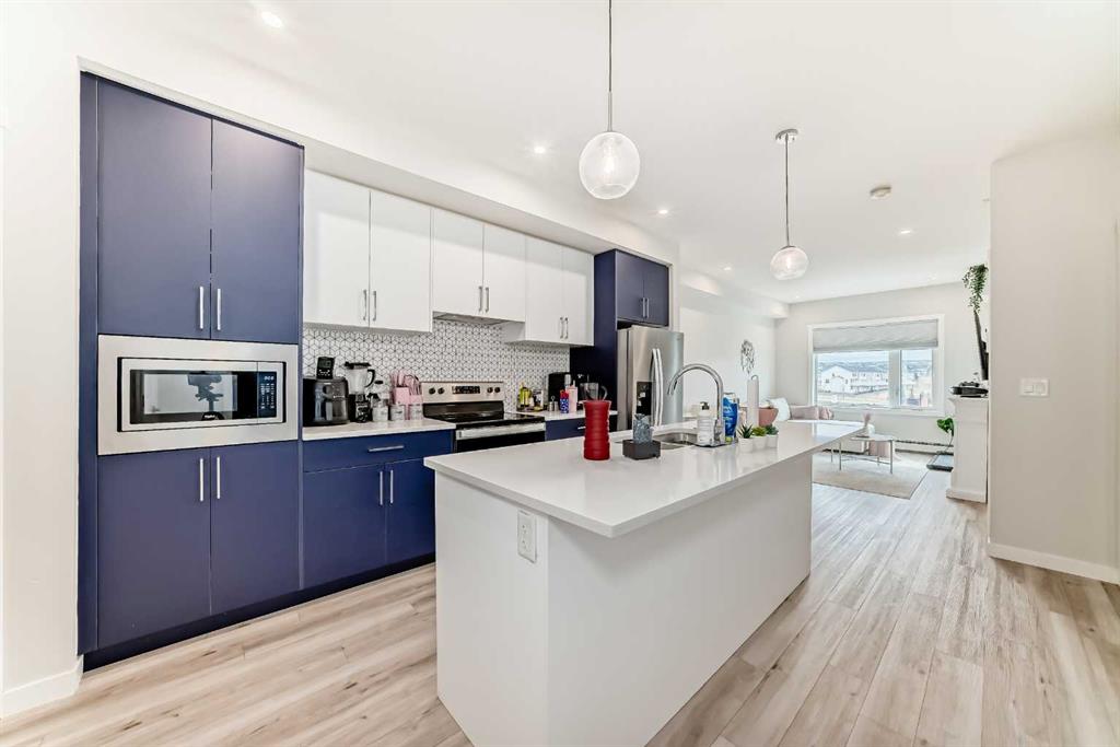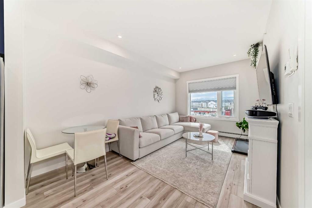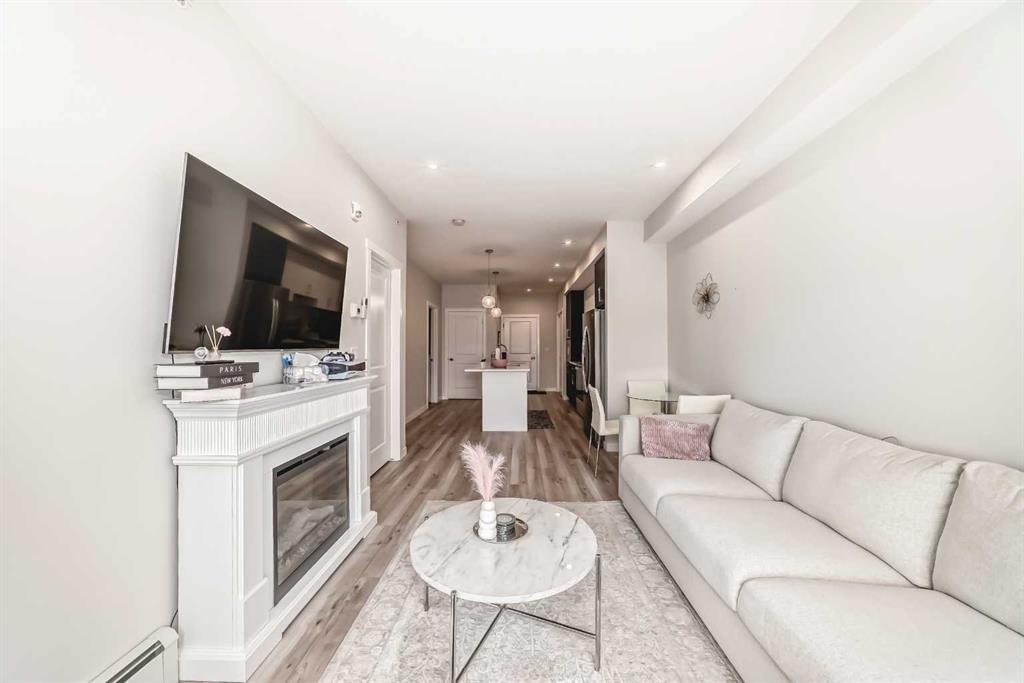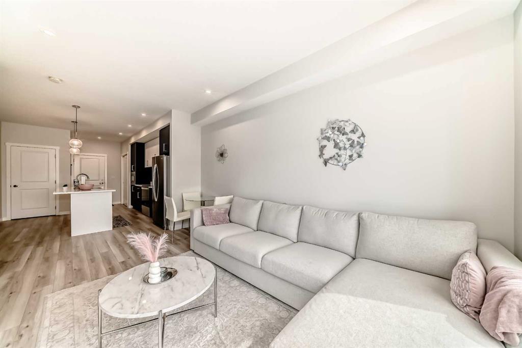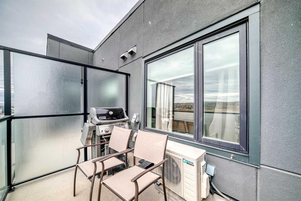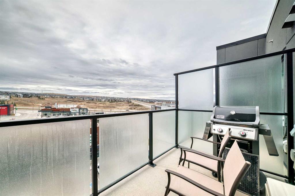 Welcome to this stylish top floor unit in Q Condos at Sage Hill NW, offering the perfect blend of privacy, upgrades, and unbeatable walkability. This bright, modern and clean 2-bedroom, 2-bathroom home features 650 square feet of open concept living, enhanced by extra windows that fill the space with natural light throughout the day. The thoughtful layout creates great separation between the bedrooms while the 9 ft ceilings add to the spacious, airy feel. The upgraded kitchen is both functional and elegant, showcasing quartz countertops, kitchen cabinets to the ceiling, stainless steel appliances, a slide-in electric range, and pot lights for a clean modern finish. Luxury vinyl plank flooring runs through the main living areas and the home also includes professionally installed window coverings throughout. One of the standout features of this home is the oversized L-shaped balcony with unobstructed views, offering a fantastic space for relaxing or entertaining. Comfort is further enhanced by an air conditioning unit, helping keep the home cool during Calgary’s warmer months. There is also a TITLED heated UNDERGROUND parking spot + TITLED heated underground STORAGE. The location is a major highlight. You are just a one minute walk to Sage Hill Crossing, where you will find everyday conveniences including Co-op grocery store, Shoppers Drug Mart, Canada Post, Tim Hortons, Anytime Fitness, childcare services, Golf Sweet indoor golf, and numerous restaurants and shops. The home also offers quick access to Stoney Trail and Deerfoot Trail, making commuting easy, while downtown Calgary is approximately 20 minutes away. Scenic walking paths, parks, and playgrounds are also close by. Whether you are a first-time buyer, downsizer, or investor, this well-designed condo offers modern comfort, privacy, and a location that is hard to beat in one of NW Calgary’s most convenient and growing communities. Directions: