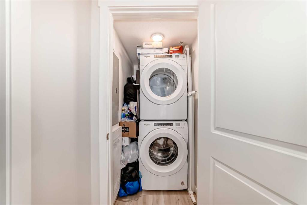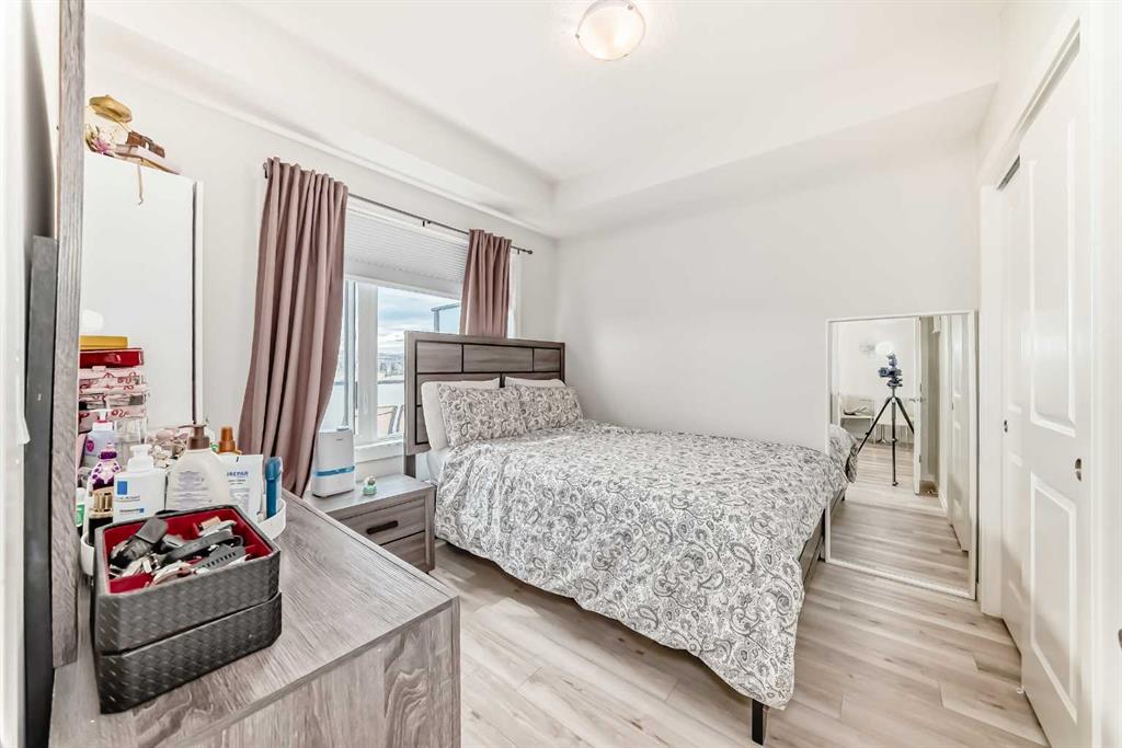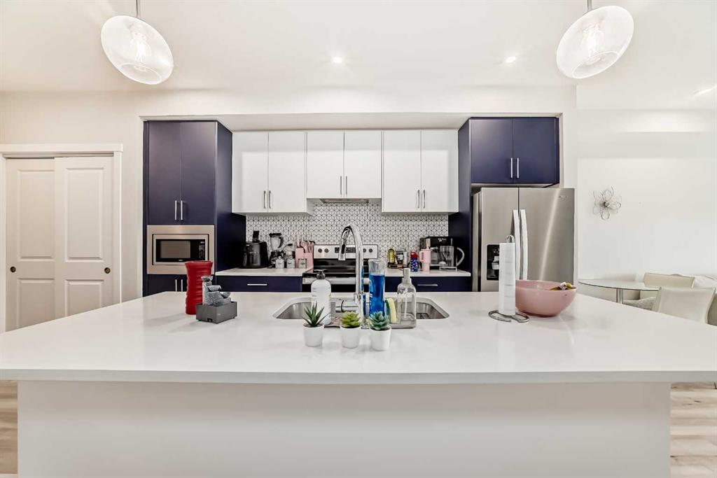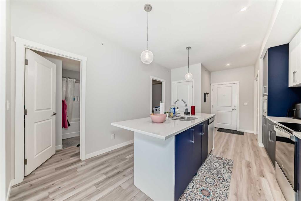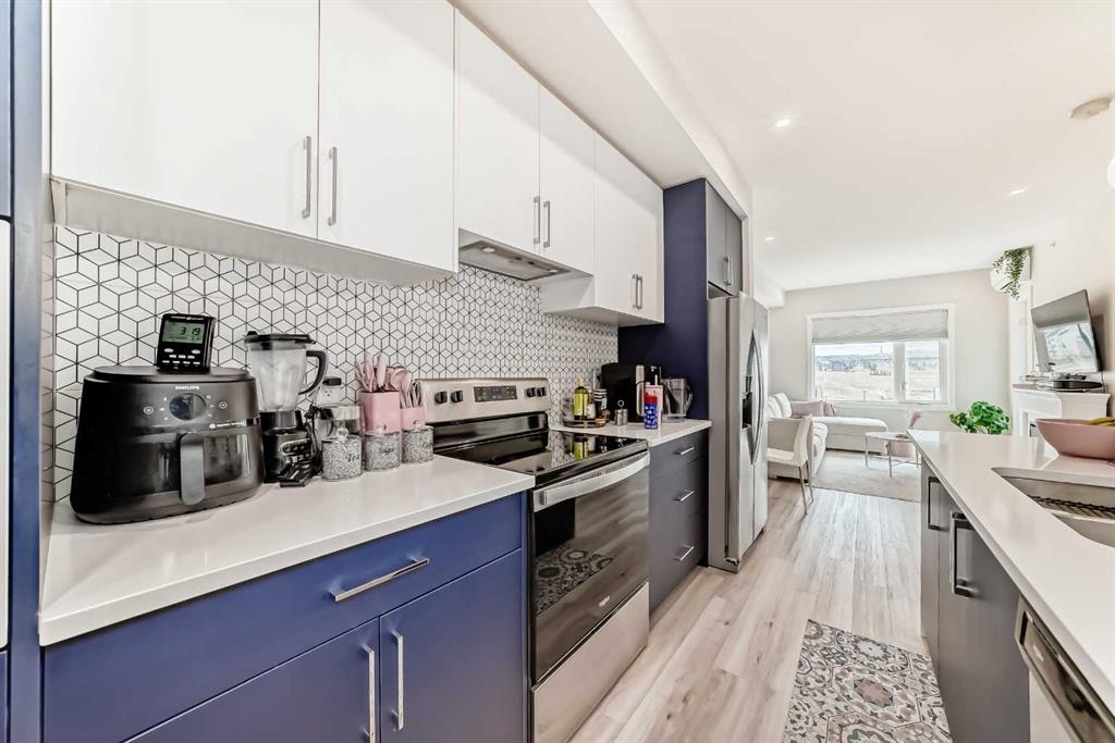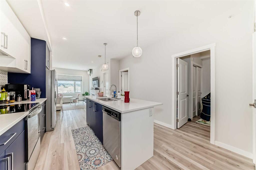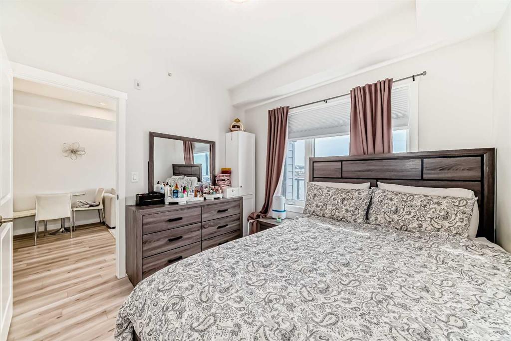 Welcome to this stylish top floor unit in Q Condos at Sage Hill NW, offering the perfect blend of privacy, upgrades, and unbeatable walkability. This bright, modern and clean 2-bedroom, 2-bathroom home features 650 square feet of open concept living, enhanced by extra windows that fill the space with natural light throughout the day. The thoughtful layout creates great separation between the bedrooms while the 9 ft ceilings add to the spacious, airy feel. The upgraded kitchen is both functional and elegant, showcasing quartz countertops, kitchen cabinets to the ceiling, stainless steel appliances, a slide-in electric range, and pot lights for a clean modern finish. Luxury vinyl plank flooring runs through the main living areas and the home also includes professionally installed window coverings throughout. One of the standout features of this home is the oversized L-shaped balcony with unobstructed views, offering a fantastic space for relaxing or entertaining. Comfort is further enhanced by an air conditioning unit, helping keep the home cool during Calgary’s warmer months. There is also a TITLED heated UNDERGROUND parking spot + TITLED heated underground STORAGE. The location is a major highlight. You are just a one minute walk to Sage Hill Crossing, where you will find everyday conveniences including Co-op grocery store, Shoppers Drug Mart, Canada Post, Tim Hortons, Anytime Fitness, childcare services, Golf Sweet indoor golf, and numerous restaurants and shops. The home also offers quick access to Stoney Trail and Deerfoot Trail, making commuting easy, while downtown Calgary is approximately 20 minutes away. Scenic walking paths, parks, and playgrounds are also close by. Whether you are a first-time buyer, downsizer, or investor, this well-designed condo offers modern comfort, privacy, and a location that is hard to beat in one of NW Calgary’s most convenient and growing communities. Directions: