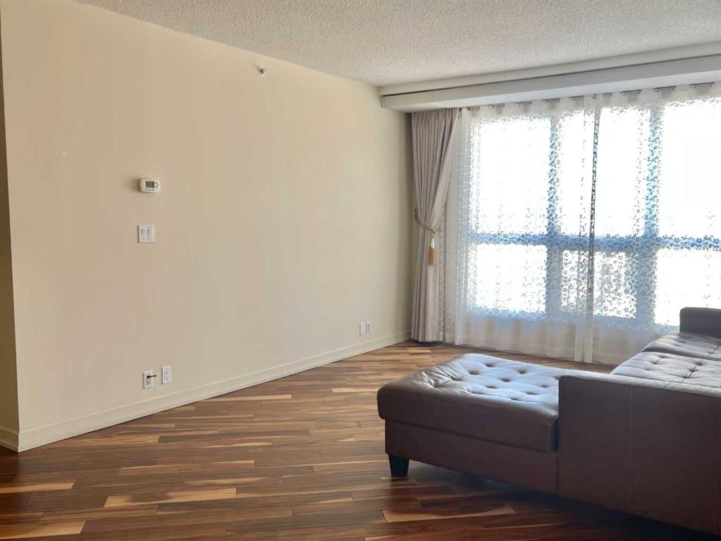 Presenting the largest corner unit in the building—an exceptional 2-bedroom, 2-bathroom residence offering 1040 square feet of thoughtfully designed living space. This upgraded residence features stylish engineered hardwood flooring and an open concept floor plan. A spacious and welcoming foyer with a double closet sets a sophisticated tone upon entry. Expansive windows throughout the unit allow for an abundance of natural light, further enhanced by the addition of elegant, customized double-layer curtains that provide both privacy and light control. The modernized kitchen is outfitted with updated cabinetry and striking black granite countertops, complemented by a suite of matching black appliances. The generous living room offers ample space for comfortable seating arrangements, with an adjacent dining area that opens to a private balcony featuring pleasant views. The primary bedroom includes a well-appointed four-piece ensuite, adding to the home’s overall functionality and comfort. Residents will appreciate the building’s direct access to essential amenities, including nearby grocery stores and restaurants, all reachable without the need for elevator use. A convenient door one level below provides quick, weather-free access to Save-On-Foods via the 4th-floor parkade. Additional features include on-site security, a dedicated concierge, and ample indoor and guest parking. Situated in a highly desirable location within walking distance of numerous services and conveniences, this professionally upgraded unit with a sought-after layout represents exceptional value in today’s market.