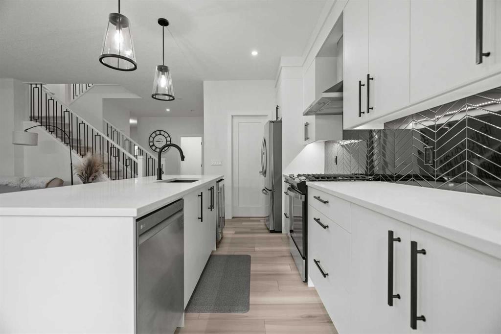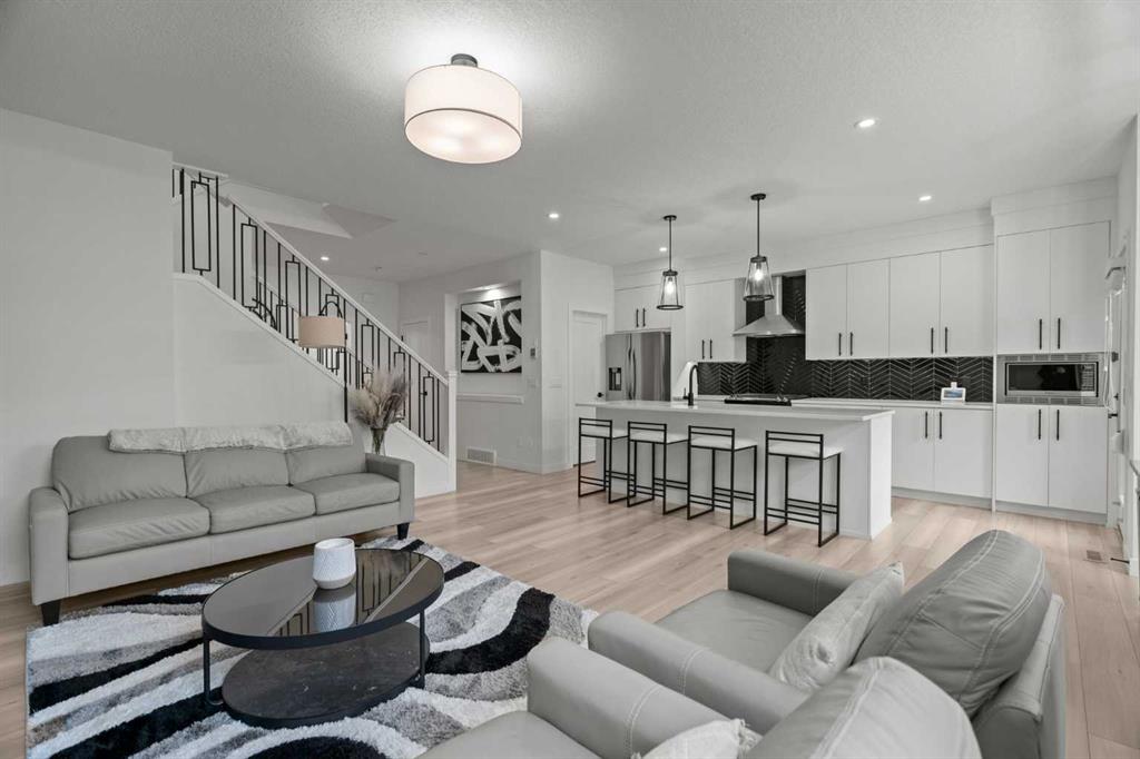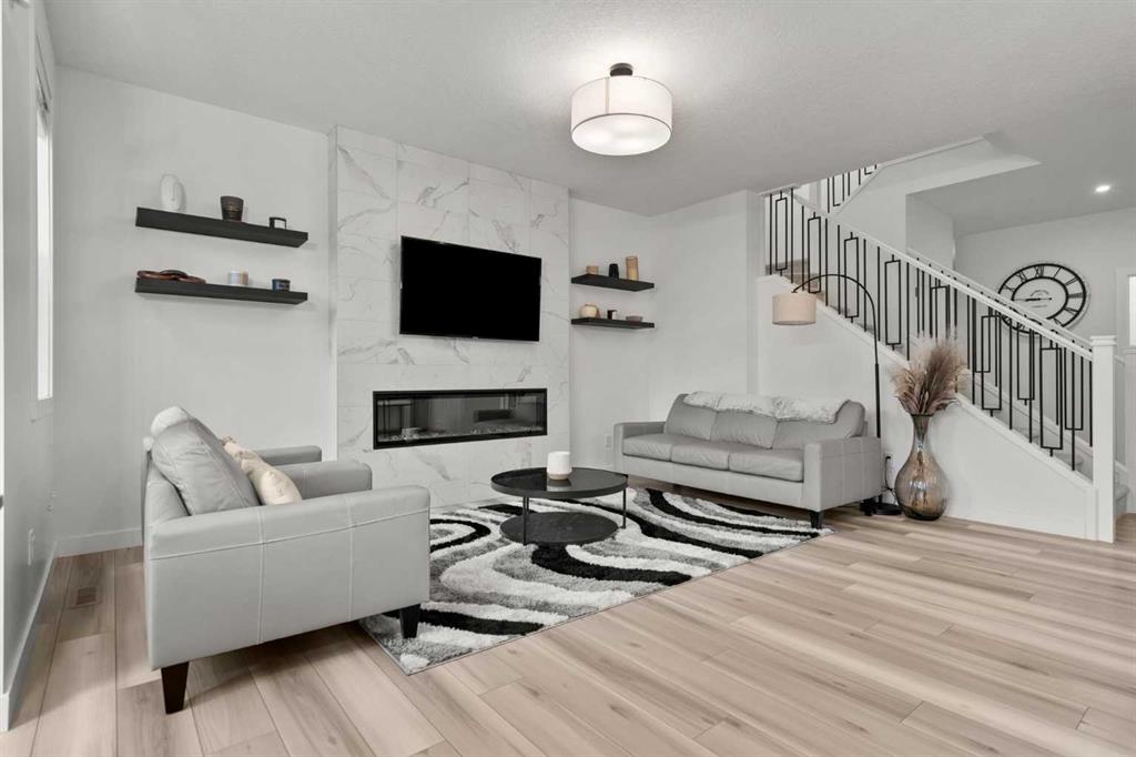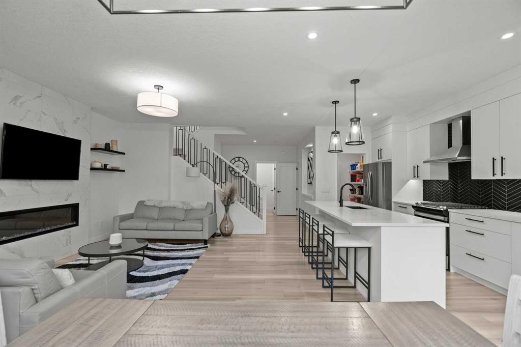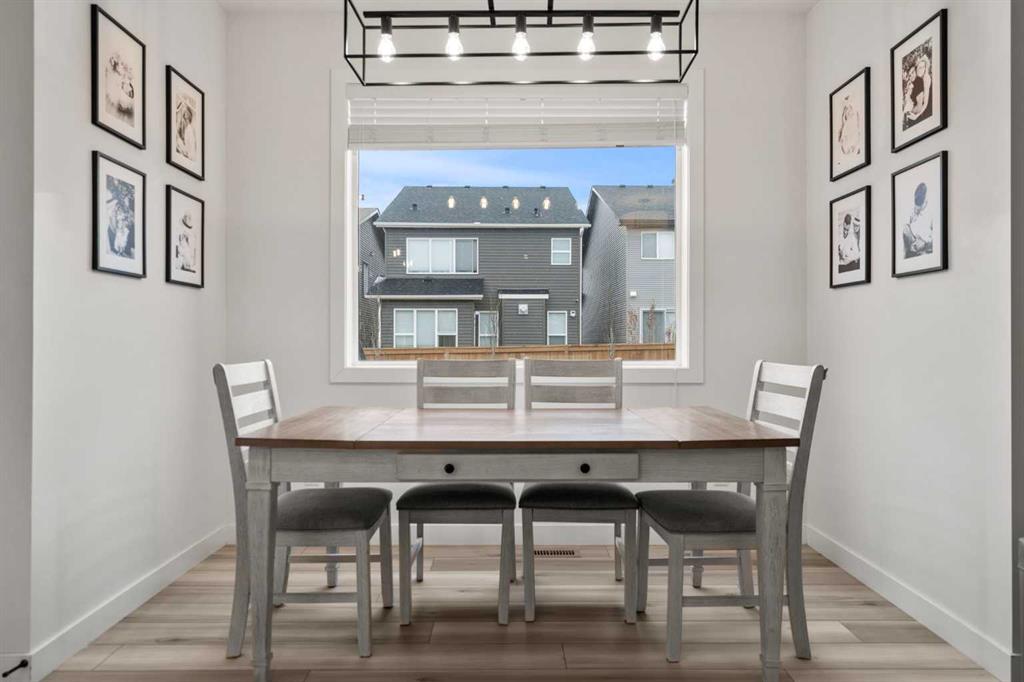 Welcome to this beautifully upgraded and fully developed detached home in the highly desirable community of Carrington NW—offering over 2,000 sq. ft. of thoughtfully designed living space, modern finishes, and exceptional convenience. Step inside to a bright and inviting main floor featuring large windows, luxury vinyl plank flooring, sleek metal railings, black hardware, and upgraded interior doors. The spacious living room is highlighted by a stylish modern fireplace and plenty of natural light, creating a warm and elegant atmosphere. The gourmet kitchen is a true centerpiece, complete with quartz countertops, a gas range, hood fan, wine fridge, stainless steel appliances, modern pendant lighting, and a cozy dining area with open views. Enjoy year-round comfort A/C , along with included window coverings. Upstairs, you’ll find three generously sized bedrooms, including a relaxing primary suite with a contemporary ensuite. The convenience of upper-level laundry adds to the home’s practical design. The fully developed basement offers an additional two big rooms and full bathroom. Outside, the large and private backyard features a large deck, ideal for summer BBQs, entertaining, or simply unwinding at the end of the day. A double attached garage and fully fenced, lot add even more value for families. Carrington is one of Calgary’s fastest-growing and most sought-after northwest communities, offering quick access to Stoney Trail, Centre Street, Deerfoot, Carrington Plaza, Evanston, and Creekside shops. Enjoy walking paths, storm ponds, playgrounds, a skate park, basketball courts, public art installations, green spaces, and the upcoming Greenway Plaza, future school sites, business district, and Green Line LRT extension—making this a smart long-term investment. Move-in ready and designed for both luxury and comfort, this home delivers modern living in a vibrant, family-friendly neighborhood. Book your private showing today and make this exceptional property your new retreat!