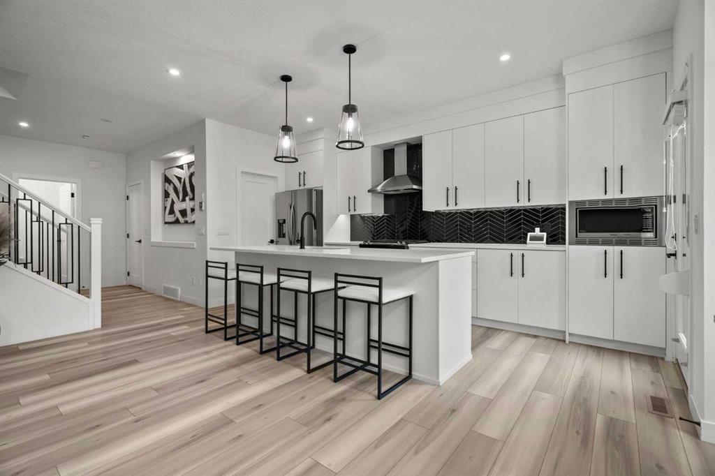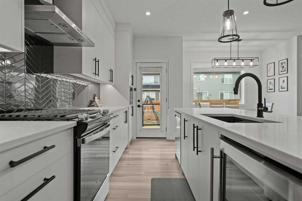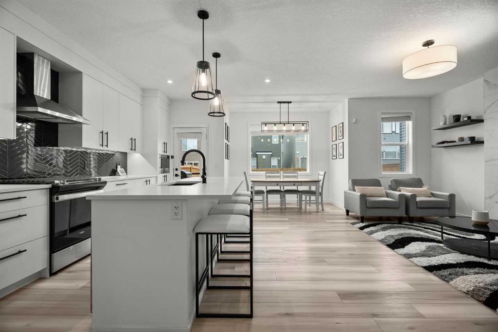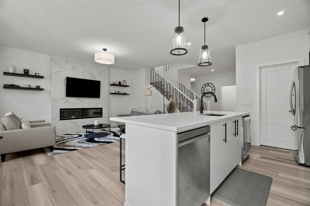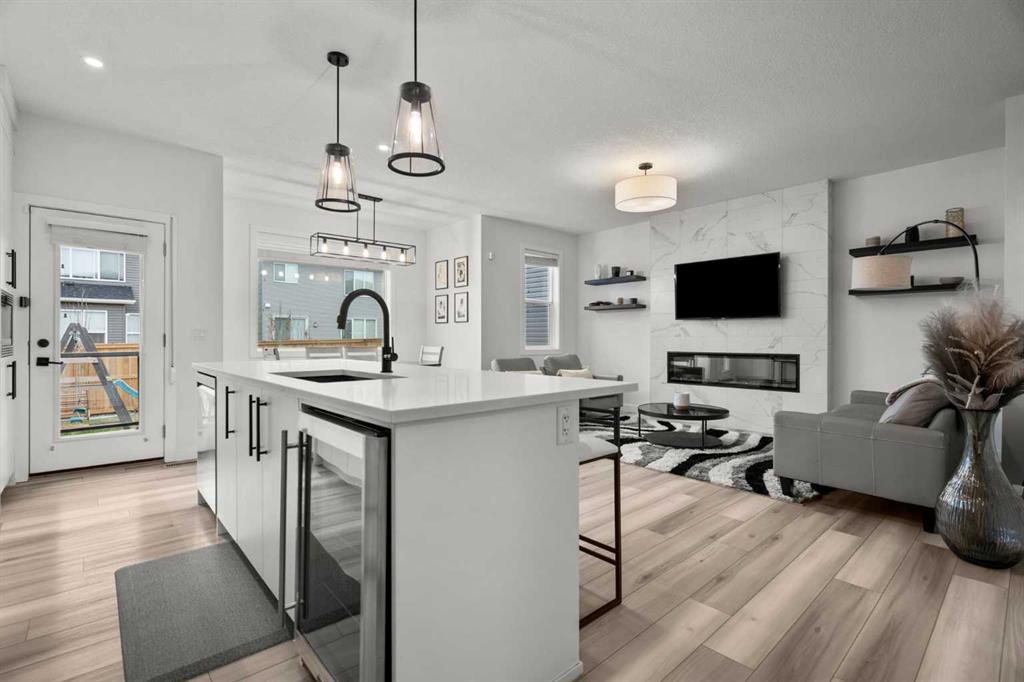 Welcome to this beautifully upgraded and fully developed detached home in the highly desirable community of Carrington NW—offering over 2,000 sq. ft. of thoughtfully designed living space, modern finishes, and exceptional convenience. Step inside to a bright and inviting main floor featuring large windows, luxury vinyl plank flooring, sleek metal railings, black hardware, and upgraded interior doors. The spacious living room is highlighted by a stylish modern fireplace and plenty of natural light, creating a warm and elegant atmosphere. The gourmet kitchen is a true centerpiece, complete with quartz countertops, a gas range, hood fan, wine fridge, stainless steel appliances, modern pendant lighting, and a cozy dining area with open views. Enjoy year-round comfort A/C , along with included window coverings. Upstairs, you’ll find three generously sized bedrooms, including a relaxing primary suite with a contemporary ensuite. The convenience of upper-level laundry adds to the home’s practical design. The fully developed basement offers an additional two big rooms and full bathroom. Outside, the large and private backyard features a large deck, ideal for summer BBQs, entertaining, or simply unwinding at the end of the day. A double attached garage and fully fenced, lot add even more value for families. Carrington is one of Calgary’s fastest-growing and most sought-after northwest communities, offering quick access to Stoney Trail, Centre Street, Deerfoot, Carrington Plaza, Evanston, and Creekside shops. Enjoy walking paths, storm ponds, playgrounds, a skate park, basketball courts, public art installations, green spaces, and the upcoming Greenway Plaza, future school sites, business district, and Green Line LRT extension—making this a smart long-term investment. Move-in ready and designed for both luxury and comfort, this home delivers modern living in a vibrant, family-friendly neighborhood. Book your private showing today and make this exceptional property your new retreat!