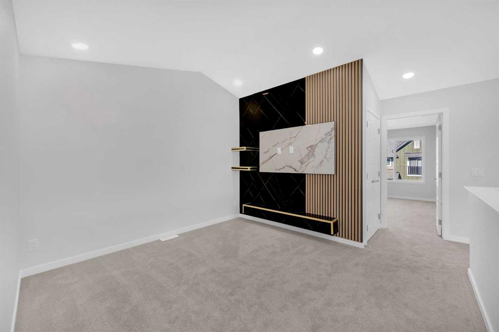 The main floor sets the tone with an OPEN-CONCEPT layout and designer finishes throughout. A bedroom with a full 3-piece bath across the hall makes this level ideal for guests or multi-generational living. The spacious living area is enhanced by FEATURE WALLS, an ELECTRIC FIREPLACE, and luxury vinyl plank flooring, creating a warm yet sophisticated atmosphere.