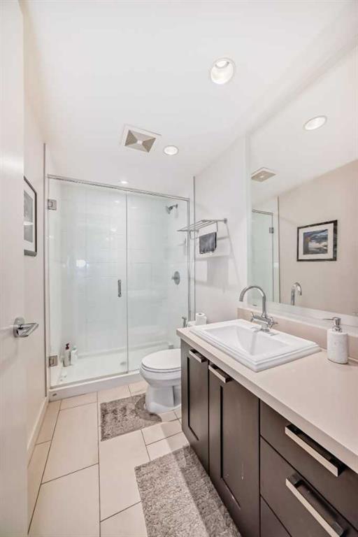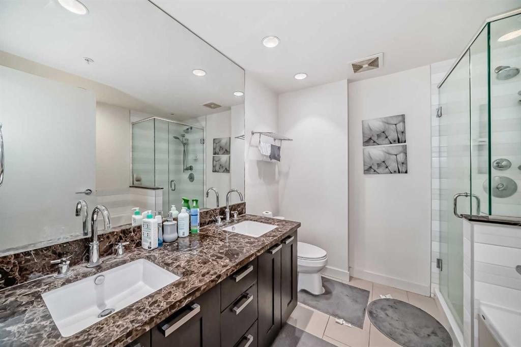 This 2-bedroom, 2-bathroom + office unit features a bright, open-concept layout with large windows that fill the home with natural light and showcase beautiful city and Bow River views. The functional kitchen offers ample cabinetry and counter space, seamlessly connecting to the spacious living and dining areas—perfect for both everyday living and entertaining.