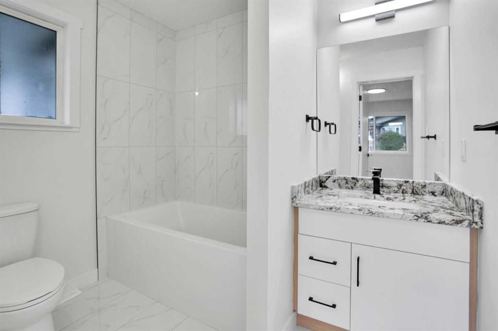 Welcome to your dream home in Thorncliffe! Perfectly located within walking distance to shopping, schools, and everyday amenities, this fully renovated bungalow offers the perfect blend of style, comfort, and convenience. Featuring 4 bedrooms, a Office/den space, 3.5 bathrooms, a detached garage, and over 2,400 sq. ft. of reimagined living space, this property has been stripped to the studs and rebuilt with precision—everything is brand new and never lived in. The exterior shines with new stonework, roof, gutters, downspouts, exterior doors, few new upstairs windows, new floor, paint, lighting fixtures, brand new appliances and all new basement windows, plus immaculate landscaping with concrete walkways, fresh sod, fencing, and new front stairs. A spacious sun deck overlooks the beautifully maintained backyard, ideal for relaxing or entertaining. Inside, the open-concept main floor is bright and inviting. The living area flows seamlessly into a custom chef’s kitchen with brand new built-in appliances, a electric cooktop, and chimney hood fan. A half-bath for guests adds convenience, while the primary bedroom offers a walk-in closet and spa-inspired ensuite with a luxurious shower. A second large bedroom with its own full bath, plus separate laundry completes the main level. Fully finished Illegal basement suite comes with 2 bedrooms plus Office/den space complete with a custom kitchen, huge living area with a big window, full bathroom, separate laundry, and a separate entrance—perfect for extended family or guests. Set in one of Calgary’s most desirable communities, you’ll enjoy quick access to parks, schools, transit, shopping, and major routes. With every detail thoughtfully redone—new, modern, and move-in ready—this home offers peace of mind and unmatched comfort. Everything is new. Everything is ready. All that’s missing is you! Book your showing today…
