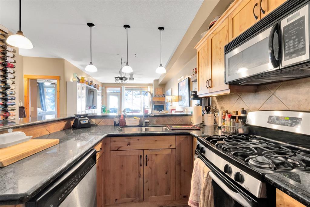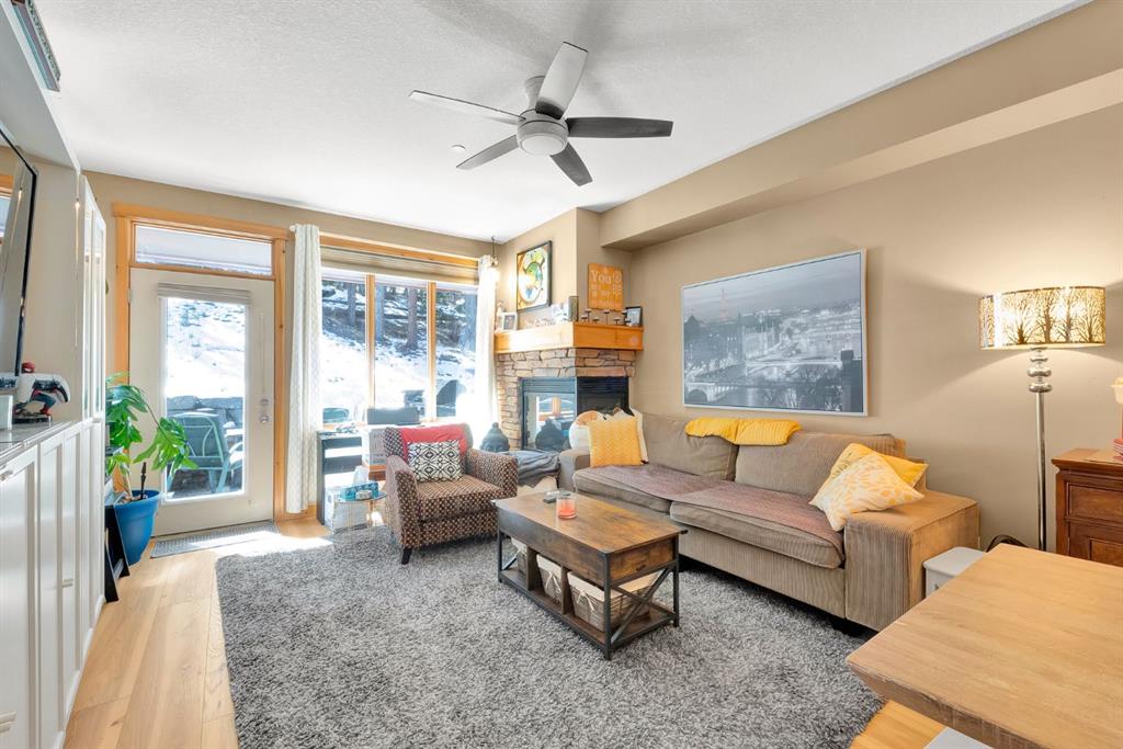 This 2 bed, 2 bath home in Canmore’s sought after Three Sisters community offers the perfect mix of comfort, function, and location. Inside, you’ll find exposed wood cabinetry, solid stone countertops, and matching wood trim, doors, and vanities that give the home a clean, mountain feel. The open layout includes a gas fireplace with exposed rock and a wooden mantle, plus loads of natural light and a primary suite with a 3 piece ensuite and walk in closet. Heated linoleum floors with in-floor radiant water heating keep things efficient and warm year round. Step outside to your private patio with a built in gas BBQ, great for winding down after a day in the mountains or entertaining friends and family. This unit comes with two heated, secured underground parking stalls and a large heated storage unit for all your gear. You’re minutes to Stewart Creek Golf Course, downtown Canmore’s restaurants and shops, and right next to a network of hiking, biking, and walking trails. Banff National Park is just 15 minutes away, with four major ski resorts – Norquay, Sunshine, Nakiska, and Lake Louise, all within a 40 minute drive. A clean, well-kept home in a prime location – ready for full time living or a mountain escape.