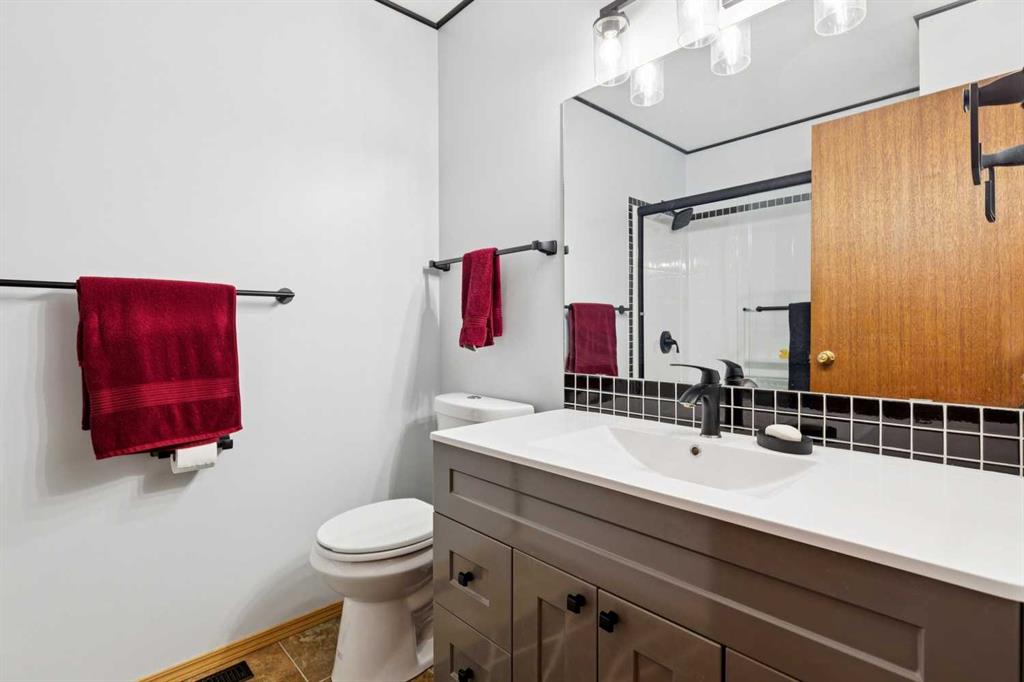 **Open house Saturday April 4 from 12-4pm ** Welcome to this well cared for bi-level in Emerson Lake with a west-facing backyard and walk-up basement. The main floor features hardwood flooring, large windows, and newer stainless-steel appliances, with a functional layout connecting the kitchen, dining, and living areas. There are 5 bedrooms and 3 bathrooms in total, with 3 beds up and 2 down. The primary bedroom includes a 3-piece ensuite with a shower. The fully developed lower level includes a spacious family room with a gas fireplace and a bar area. Recent updates include a new furnace and water softener. Outside, the landscaped yard offers raised garden beds and a covered deck for everyday use and entertaining, and the 24 x 24 double detached garage is insulated. A practical home in a quiet, established community.