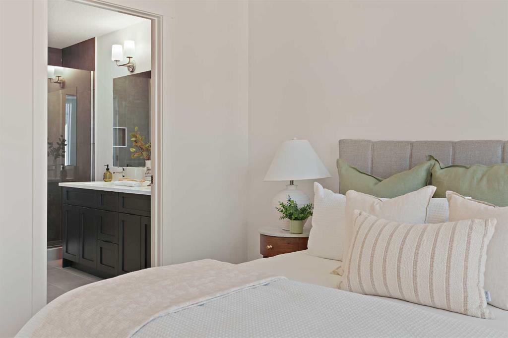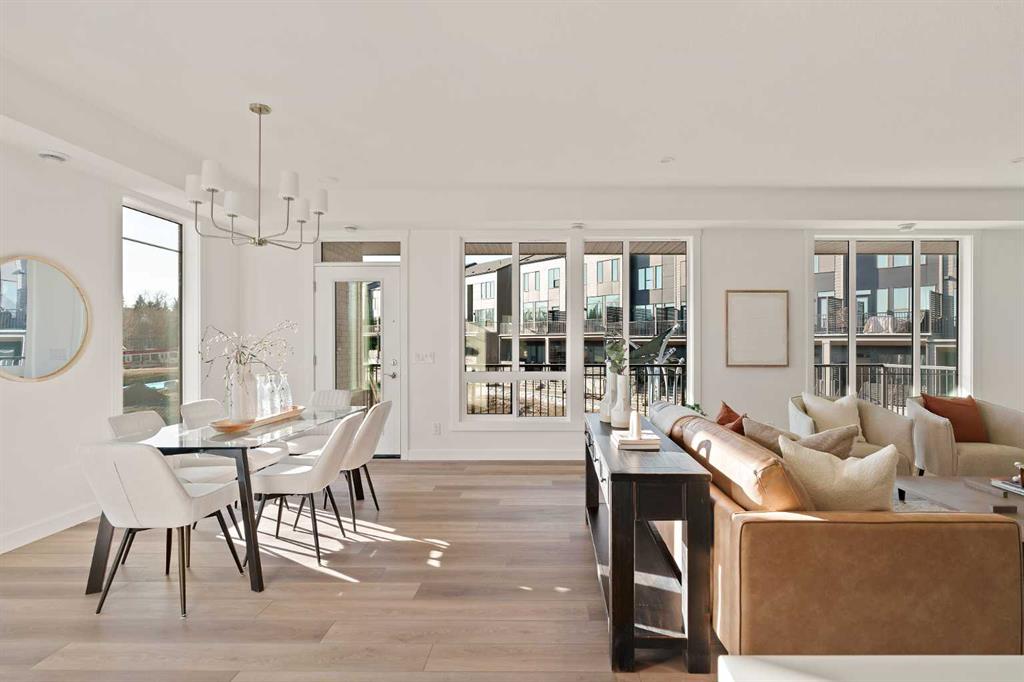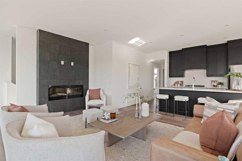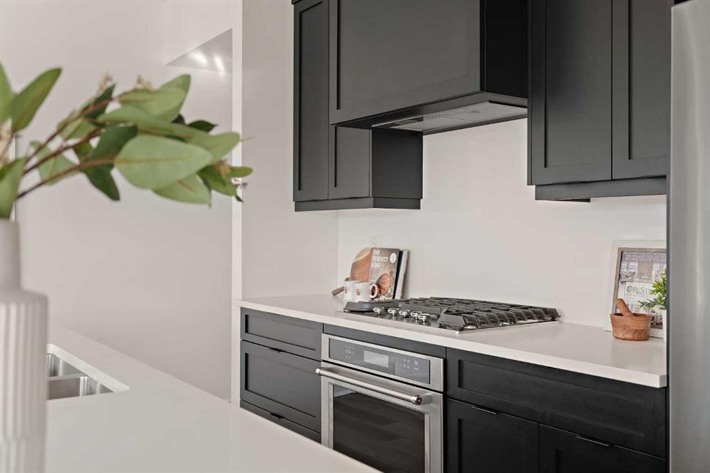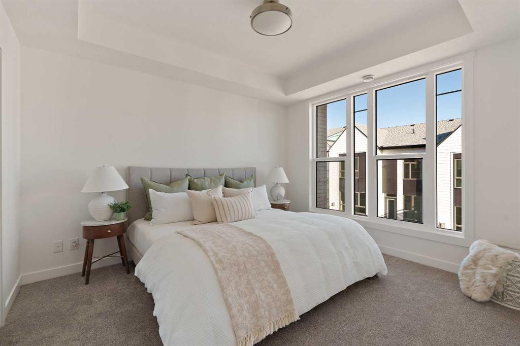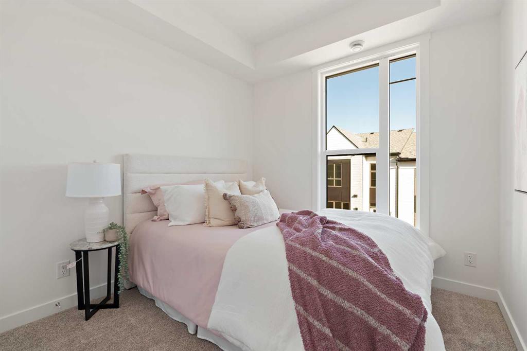 The Hyde at Crown Park is the perfect townhouse for those wanting single-level living without compromise. Featuring 3 bedrooms, 2 bathrooms, and nearly 1,400 ft2 of living space on one level with a private double attached and endless storage space, this home is perfect for those looking to downsize without compromising. Located in the heart of Crown Park overlooking a central park and just minutes from downtown Calgary, this brand new end-unit townhome perfectly combines maintenance-free living within a central urban setting. The beautifully designed main living area has the perfect open-concept design, making it ideal for entertaining and hosting. The kitchen anchors the main living space and opens perfectly to the living and dining areas with a wall of southwest-facing windows flooding the space with natural light. The timeless kitchen is complete with shaker cabinets, quartz countertops, and a suite of built-in appliances including a gas cooktop. The expansive living area has a central fireplace and ample seating space for six+ people, making entertaining a breeze. The large dining area can easily accommodate a table with seating for eight people and includes additional windows for added natural light. The primary suite is located at one end of the property, with laundry providing added privacy between the owner’s suite and secondary bedrooms. A luxurious 4 pc ensuite with dual sinks and a walk-in shower as well as a large walk-in closet complete the primary suite. Two additional bedrooms provide added flexibility, with space for a guest bedroom + home office space or media room, and have their own full bathroom. The main living area is complete with a large laundry room with additional cabinets for storage and a countertop for added convenience. A ~26’x8′ balcony provides the perfect outdoor living space – complete with a gas line, hose bib, and overlooking the park with optimal southwest exposure ensuring you’re maximizing your sun and natural light all year long. The lower level of the property provides access to the oversized private double attached garage and two expansive storage spaces provide the space you’ve been looking for! Located at Calgary’s newest inner-city development, this brand new home provides a lock-and-leave lifestyle without compromise and includes full builder warranty + Alberta New Home Warranty. These rare designs don’t come available often – this is your opportunity to get the bungalow-style home you were looking for that offers single-level living with a private garage and low fees that provide you with a maintenance-free lifestyle.
