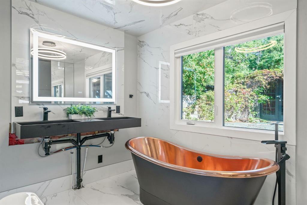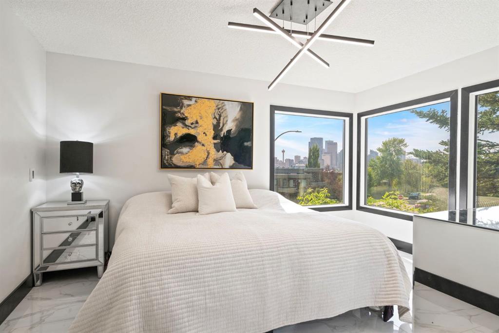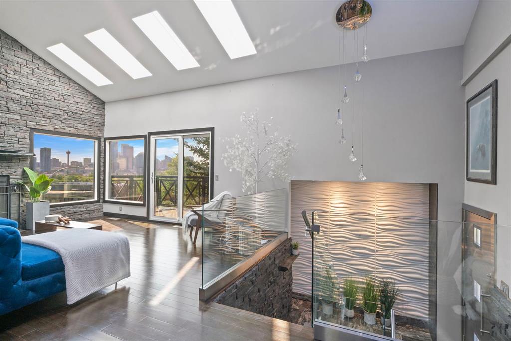 Unmatched Downtown VIEWS in PRIME Bridgeland location. Perched above city w/sweeping, unobstructed views of Calgary’s skyline – this ONE OF A KIND home is designed for those who love to LIVE & ENTERTAIN in style! Rarely does a property capture BOTH the vibrancy of downtown PLUS the quiet comfort of a private retreat. Over $220,000 invested by current owner. Unique split-level layout reimagined – to allow main living spaces & walls of windows to FRAME breathtaking skyline views! Imagine hosting friends in the open living room, stepping out onto the balcony as the city lights twinkle, enjoying Stampede fireworks or cozying up by the fireplace – as the skyline glows in the background?! EPIC sunsets!!! Dining area perfect for everyday meals or special occasions. Kitchen offers custom cabinetry, Viking gas range, coffered ceilings, granite & statement eating bar – transition directly outside to enjoy meals/relaxing on your gorgeous private wraparound deck! So peaceful at the rear of this home. Did I mention – the Hot tub stays?! Incredible spot to enjoy this PRIVATE oasis – literally in the heart of the city! This home offers a LIFESTYLE. Heated tile flooring in kitchen, primary bedroom/ensuite, main bathroom & laundry room – adds EXTRA comfort throughout. Three bedrooms located on lower levels. Private primary bedroom with 2 piece ensuite offers the same INCREDIBLE CITY VIEWS. Do you WORK from home? Perhaps, make this space your OFFICE! Imagine taking calls, being on ZOOM, booking meetings & reading emails – while looking at the skyline. Second bedroom on this level + 5 piece SPA Inspired bathroom. Head down a level to another bedroom (big windows) + ANOTHER Steam shower, toilet & sink located in dedicated laundry / mechanical / storage area – offers options for multi person living! Recent upgrades include triple-pane tinted windows, newer roof shingles with ice/water shield + new hot water tank installed in 2020—ensuring peace of mind. The oversized, HEATED garage (currently outfitted as a full gym) offers even more options – maybe create separate Airbnb in the back – Zoned RC-2. More office space needed? Showcase/work on vintage/exotic cars? Workshop? Art studio? Or just park car(s) here! Expansive driveway w/space for MULTIPLE vehicles – make this home as practical as it is impressive. Like to garden or plant – this one is for you! Perfect property for those that want a WOW factor home – without living in a high rise w/condo fees & rules! Mins to downtown, river pathways, Prince’s Island Park, restaurants, amenities, entertainment, shopping, pathways/parks + 15 min drive to airport! Incredible fit for investors seeking luxury short-term rental opportunity, empty nesters ready to downsize from the suburbs to a unique, low-maintenance home or even families looking to live in one of Calgary’s most sought-after inner-city neighborhoods. This Bridgeland gem is a RARE find. Urban lifestyle, iconic views & endless ways to entertain—this is city living at its very best!