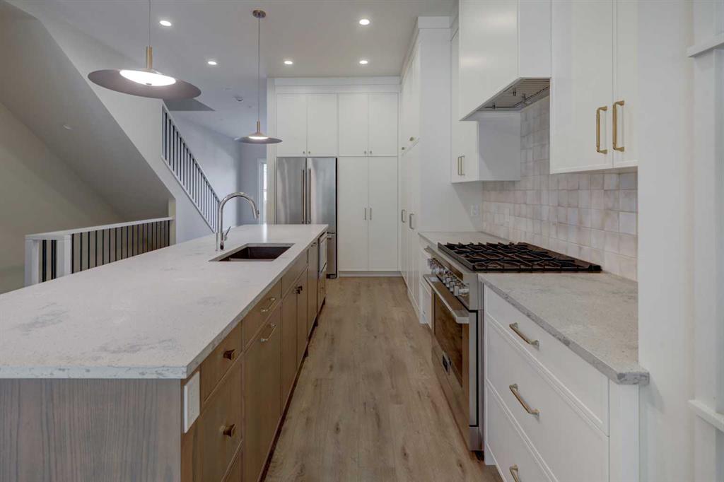 Located on One of Mount Pleasant’s Most Coveted Streets! Experience refined living in this 2-storey detached home featuring 4 bedrooms and 3.5 bathrooms. Meticulously crafted by Saville Homes, this brand-new residence boasts a distinctive, functional layout with thoughtful design throughout. Step inside to find a spacious foyer and 10-foot ceilings on the main floor, enhancing the sense of openness. The elegant dining area flows into a designer kitchen equipped with custom, site-finished cabinetry, a generous island, premium built-in appliances, quartz countertops, and under-cabinet lighting. A beautifully finished great room with a gas fireplace and a built-in mudroom complete the main level. Upstairs, soaring 9-foot ceilings continue into the luxurious primary suite, complete with vaulted ceilings, a spa-like 5-piece ensuite featuring in-floor electric heating, a stand-up shower with luxurious tile, and a spacious walk-in closet separated from the bathroom. Two additional large bedrooms each with its own walk-in closet, a stylish 3-piece bath, and a full laundry room with built-ins complete the upper floor. The fully developed basement features 9-foot ceilings, a large rec room with a wet bar, a fourth bedroom, a 3-piece bath, and ample storage space in the utility room. Additional highlights include A/C and solar panel rough-in, a 200Amp Leviton electrical panel, HRV system, hot water on demand, and a garage subpanel. Double detached garage has foundation walls. Rear deck with Vinyl decking. Perfectly located near schools, a short walk to Confederation Park, and minutes from the vibrant shops and eateries along 4th Street, this home combines quiet luxury with everyday convenience.