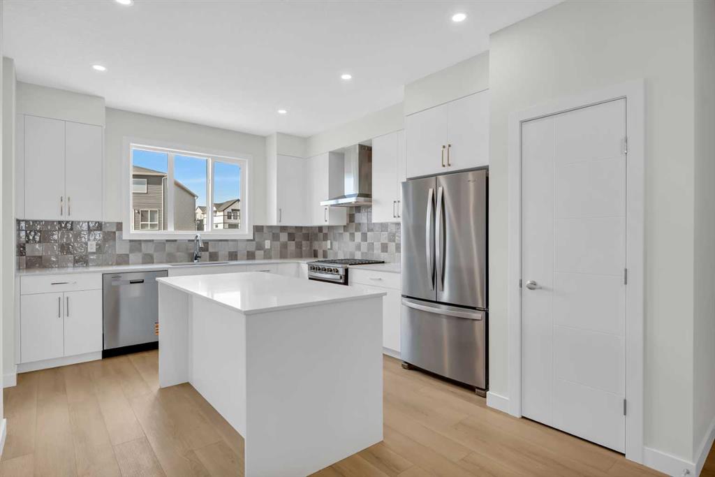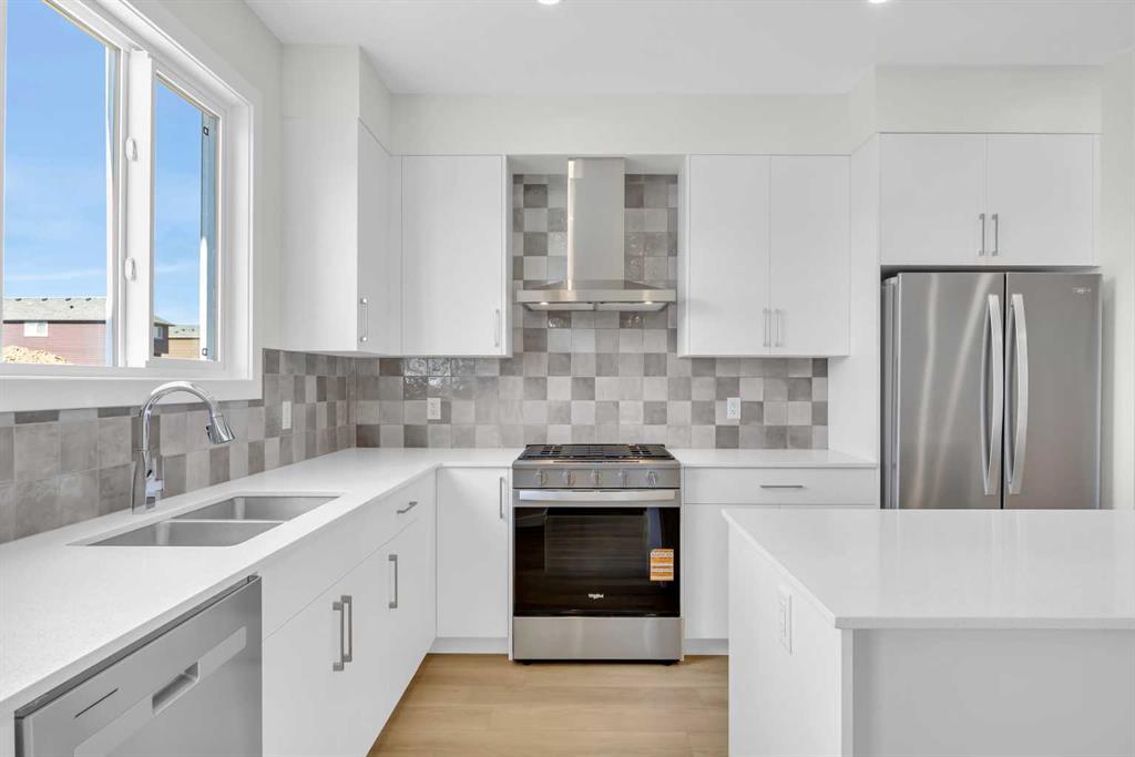Step into the Edward by Partners Homes, a brand new immediate possession home in Homestead offering the kind of layout that is hard to find in NE Calgary. With 4 bedrooms, 3 full bathrooms, a bonus room, and a main floor bedroom with a nearby full bath, this home is especially well suited for multi-generational living, guests, or buyers who need a flexible work-from-home setup. Inside, the main level is designed for everyday function and comfortable gathering, with 9 foot ceilings, large windows, and durable luxury vinyl plank and luxury vinyl tile flooring. The kitchen brings together modern style and practical storage with quartz countertops, full-height cabinetry with enclosed bulkhead, soft-close doors and drawers, an upgraded backsplash, stainless steel appliances, built-in microwave, chimney hood fan, and a gas range. Washer and dryer are also included, making this a truly move-in ready new construction home in Calgary. Upstairs, the layout continues to deliver with a spacious primary retreat featuring a walk-in closet and private ensuite with dual sinks and a tiled shower. Two additional bedrooms, a full bathroom, upper floor laundry, and a central bonus room create the extra separation and usable space many families are looking for. The separate side entrance and 9 foot basement ceilings add future flexibility for basement development, while front landscaping and a rear lane gravel parking pad add to the home’s overall convenience and value. Located in Homestead, one of NE Calgary’s emerging communities, this home offers access to over 4 kilometres of walking paths, a 19-acre wetland, and future parks, schools, and sports fields. For buyers searching for a new home in NE Calgary with immediate possession, modern upgrades, and a family-friendly layout, this is a strong opportunity.