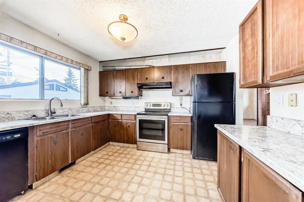 **OPEN HOUSE MAY 3RD 1-3PM** Perfect opportunity for investors, renovators, or flippers! This home requires TLC and is priced accordingly, offering incredible potential to add value in the well-established community of Marlborough. This rare 2-storey home offers 2,283 sq ft of developed living space, featuring 4 bedrooms and 2 full bathrooms, along with a functional layout and multiple living areas. The main floor includes a bright front living room, a dedicated dining space, and a spacious kitchen with pantry and rear access. A cozy family room showcases a stone-front, wood-burning fireplace with built-ins, creating a warm and inviting atmosphere. A main floor bedroom and 3-piece bathroom add flexibility for guests, extended family, or a home office. A unique curved staircase adds character and leads to the upper level. Upstairs, you’ll find three generously sized bedrooms, including a large primary bedroom with a walk-in closet and access to a private balcony. A full 4-piece bathroom completes the upper level. The fully developed basement offers a massive recreation/games room with a wet bar, along with additional storage (including a cold room) and laundry space. Outside, the property features a 21’3” x 21’4” heated garage with rear lane access, a shed, and RV parking with a dual gate. The large west-facing backyard is fully fenced and backs onto the Marlborough Community Association, adding privacy and open space behind. Come view this home today!