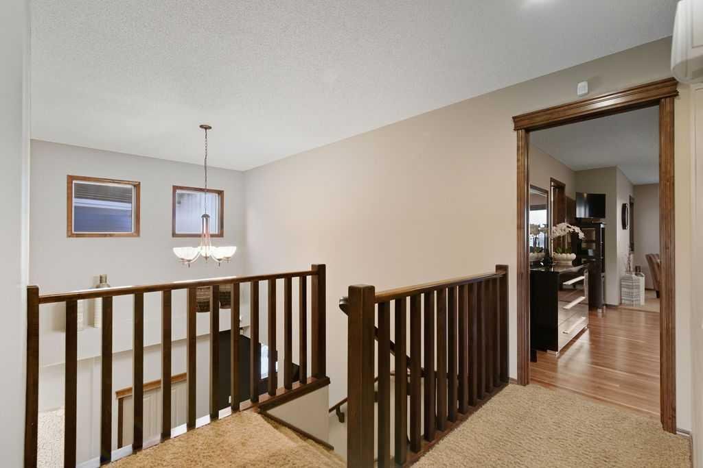 This home has been meticulously UPGRAGED with long-term durability and comfort in mind, including NEW HAIL RESISTANT ROOF, SIDING and garage glass, central AIR CONDITIONING, upgraded black front rain gutters, ACID- STAINED DRIVEWAY, and a CUSTOM-BUILT SHED finished in matching exterior colours with CUSTOM STONEWORK. Inside, enjoy peace of mind with smoke and CO detectors in every room, CUSTOM BLINDS on two levels, NEW HOT WATER TANK (boiler), and DOORBELL CAMERAS at both the front and basement entrances. An upgradable TELUS ALAM SYSTEM (no contract) completes the package. This home is where quality craftsmanship, thoughtful upgrades, and exceptional indoor-outdoor living come together—a truly move-in-ready property in a family-friendly community close to parks, pathways, and everyday amenities.