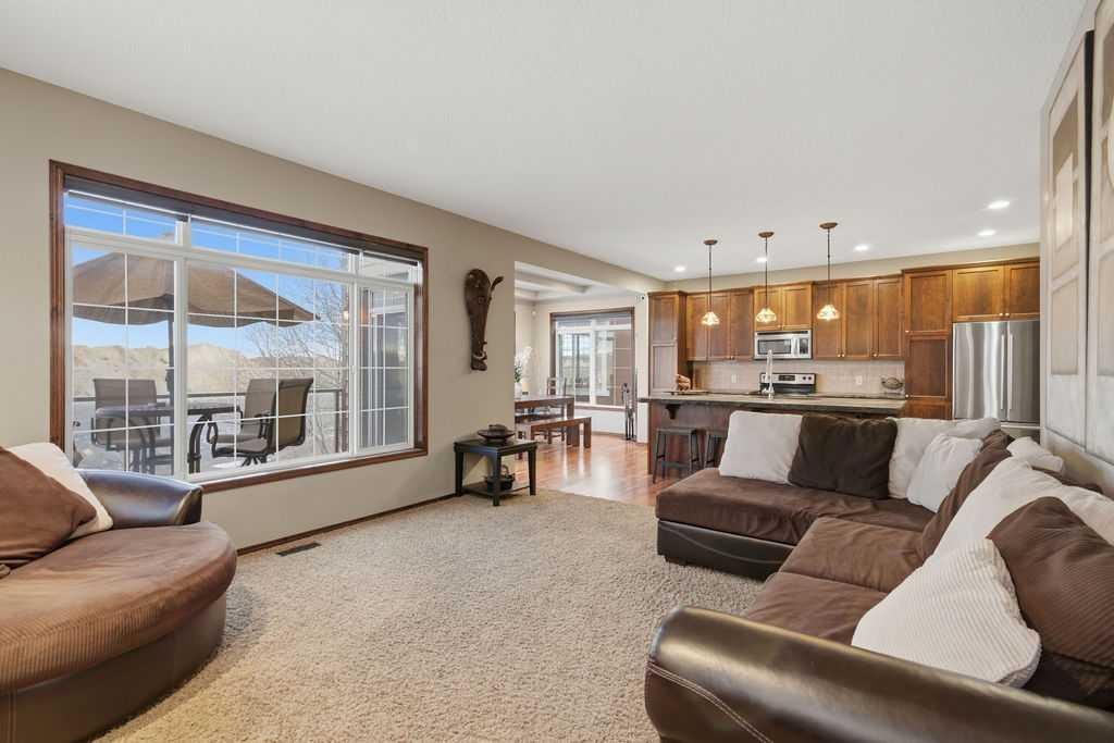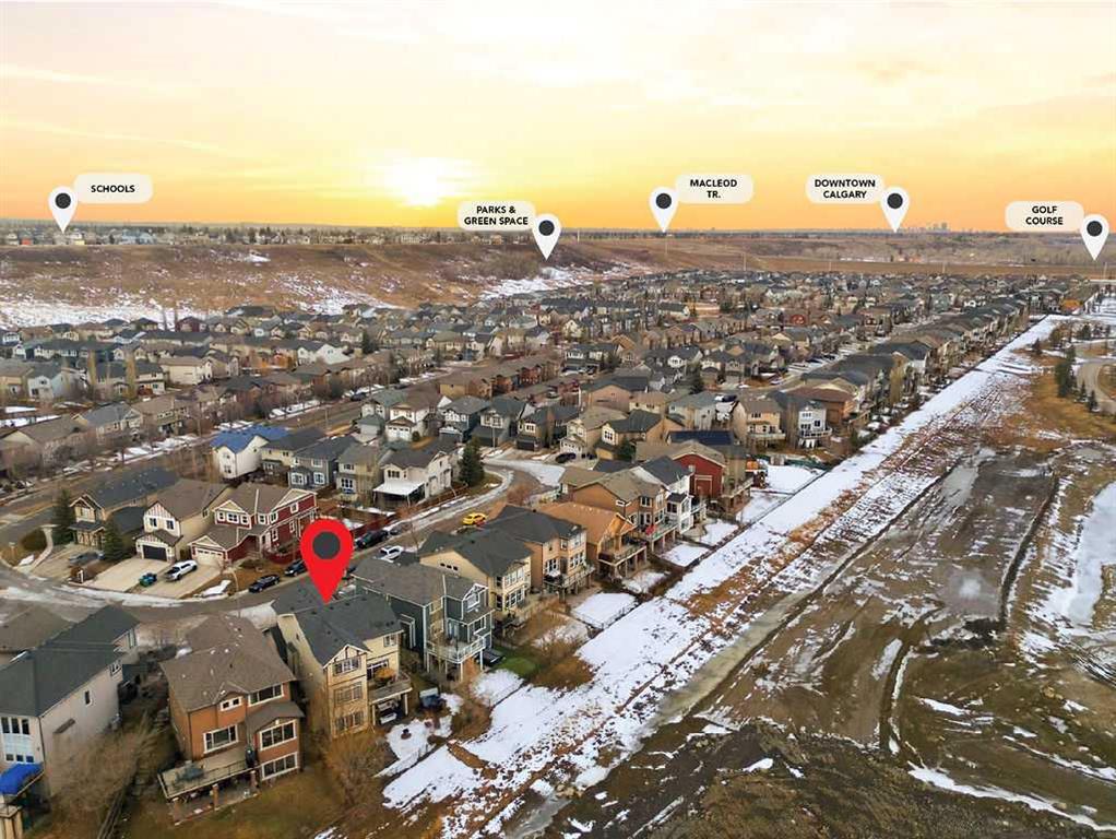 Step into this beautifully cared-for 4-BEDROOM, 3.5-bathroom two-storey WALKOUT home in the desirable community of Chaparral Valley, offering over 3,000 sq ft of total developed living space and set on an expansive PIE- SHAPED LOT. The main floor strikes the perfect balance between style and function. Rich refinished WALNUT HARDWOOD flooring flows throughout, complemented by a spacious family room, GAS FIREPLACE with CUSTOM MANTEL and UPGRADED VENTING. A large office provides the ideal work-from-home setup, while the chef-inspired kitchen impresses with STAINLESS STEEL APPLIANCES, custom CONCRETE COUNTERTOPS, upgraded faucet, DARK CABINETRY offering exceptional STORAGE, and a convenient pass-through pantry. Just off the kitchen, you’ll find MAIN FLOOR LAUNDRY and a large mudroom, designed for real life and busy households. Upstairs, the PRIMARY RETREAT is a true standout, offering OVER 325 SQFT of space—your own private oasis. The luxurious 5-piece ensuite features an OVERSIZED SHOWER, corner SOAKER TUB, upgraded CONCRETE COUNTERTOPS (carried throughout ALL BATHROOMS) with dual sinks, UPGRADED FAUCETS, a SKYLIGHT that floods the space with NATURAL LIGHT, and a WALK- IN CLOSET. A bright BONUS ROOM with VAULTED CEILINGS and oversized windows creates an inviting secondary living area, while two additional spacious bedrooms and a full 4-piece bathroom complete the upper level.