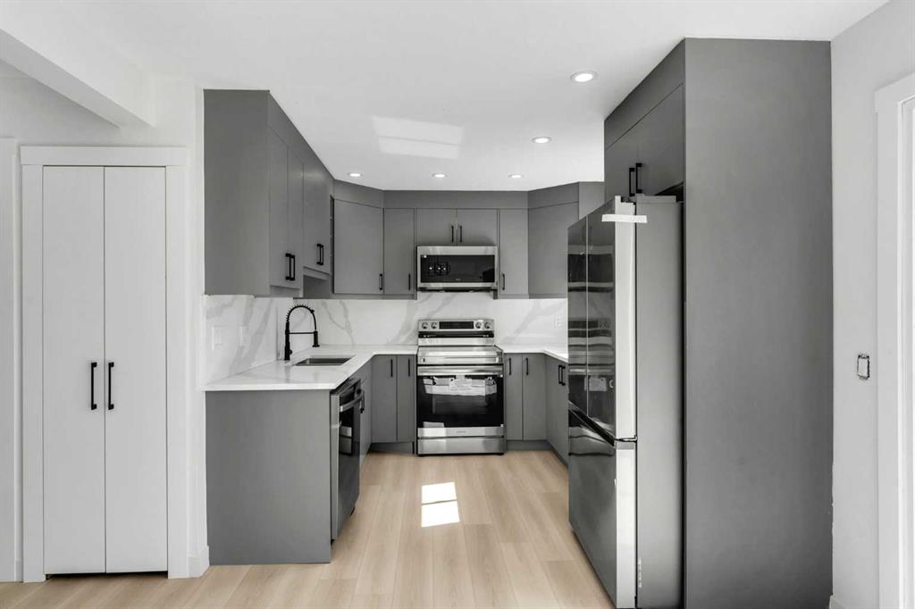 SW Backyard | Extensive Renovation | 4 BED 3.5 BATH | Located beside a park | This home features exquisite finishing unlike you’ve seen before at this price point! This beautifully updated 2-storey home is the perfect blend of modern style and family-friendly comfort. Featuring 4 spacious bedrooms and 3.5 full bathrooms, there’s plenty of room for a growing family or those who love to entertain. Step into the gorgeous, fully renovated kitchen with brand-new cabinetry and quartz backsplash, quartz countertops, stainless steel appliances, and a dining area—perfect for gatherings. The main floor offers a bright and open living room with stylish finishes throughout. You’ll also find a convenient 2-piece bathroom. Upstairs, you’ll find 3 generously sized bedrooms, including a beautifully updated primary suite with an ensuite bath. The other bedrooms can enjoy a 4-piece main bathroom as well. The fully finished basement adds even more living space with a large family room, an additional bedroom—ideal as a home office or playroom. From the kitchen, sliding patio doors lead out to a huge deck overlooking a sunny South-West facing backyard—perfect for relaxing or entertaining guests. The renovation list is quite extensive. It features brand new vinyl windows, furnace and water tank, and finishings such as flooring, built-in cabinetry and closets, paint, bathrooms, etc. Located in a popular, family-oriented community just steps from schools, parks, and all essential amenities, this home checks all the boxes for style, space, and location!