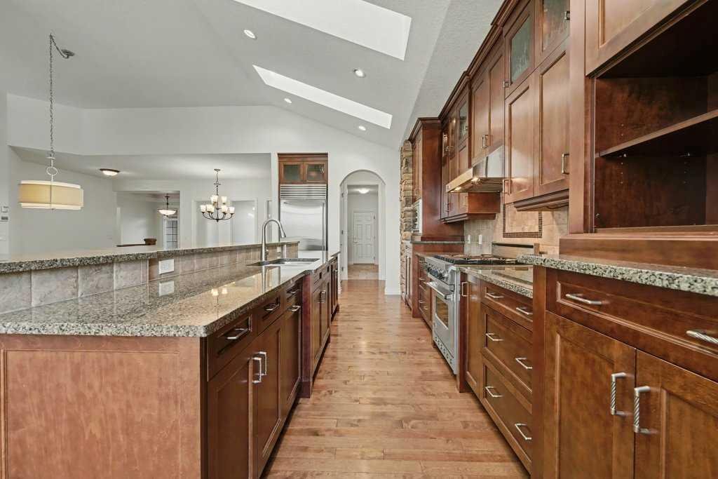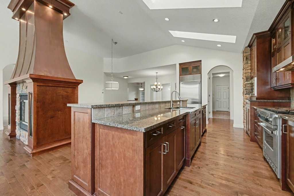 One of the most coveted estate locations in Discovery Ridge! This executive walkout bungalow showcases “MOUNTAIN and RAVINE VIEWS” from each level…4 bedrooms and over 3800 sq. ft. of total living space! With grand vaulted ceilings, large skylights, enormous windows, an abundance of natural light and space showcase all of the rich finishings throughout. Views from each level! An architecturally grand “floor-to-ceiling” 2-sided stone / metal decor fireplace is the unforgettable feature of the main level! Upgrades include: birch hardwood floors – in a walnut finish, extensive custom millwork (built-ins & cabinetry), designer window coverings, central A/C, in-floor heat, irrigation and a triple car garage. The Chef’s kitchen – Viking/Sub Zero “built-in” appliance package, include gas range. An adjacent bright open dining space boasts stunning mountain views – with access to the oversized deck. The living area is adorned with mountain and ravine views, as you nestle beside the grand stone fireplace. The master retreat offers a SW exposure to the mountains, plus a “spa-like” ensuite with soaker tub and roughed-in steam shower and over-sized walk-in, with nearby laundry. An executive-styled office completes the main level. The walkout has heated floors throughout and is finished with the same level of cabinetry / built-ins as main level. It features a two-sided stone fireplace, 3 bedrooms, plus a large, open family/media space with wet bar for entertaining and direct access to an exceptional rear yard, professionally landscaped – on the RAVINE! Newer roof, hot water tank new 2019 and solar panels installed 2023! Enjoy the exceptional “Griffith Woods” – an outdoor oasis – with its paved and natural pathways, that give you the ultimate “forest bathing” feeling of relaxation and rejuvenation – steps from your door! *Some photos have been virtually staged.