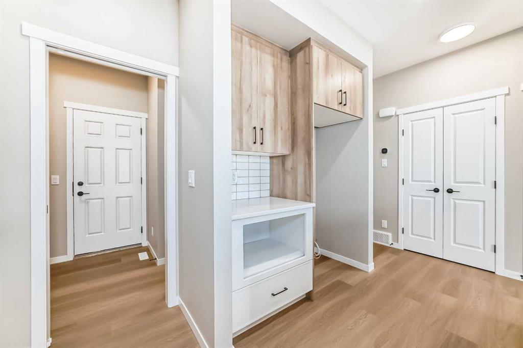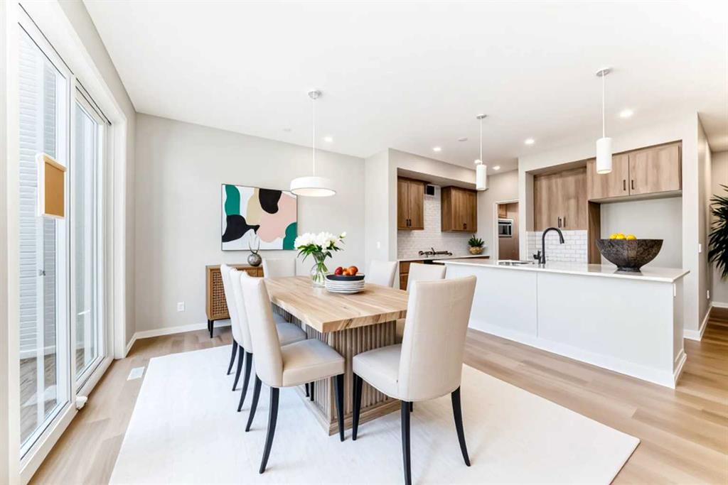 Step into the Carisa, a thoughtfully designed home that perfectly balances style, comfort, and everyday functionality—ideal for modern families seeking exceptional value in a growing community. From the moment you arrive, this home welcomes you with a layout that’s both practical and visually appealing. The open-concept main floor creates a warm, inviting atmosphere where the kitchen, dining, and lifestyle areas seamlessly connect. Large rear windows allow natural light to flood the space throughout the day, thanks to the desirable west-facing backyard, while an added window in the stairwell brings even more brightness to the heart of the home. The kitchen is designed to impress with upgraded quartz countertops, modern cabinetry, a built-in microwave, chimney hood fan, and pot lights that enhance the overall ambiance. An extra-large walk-in pantry offers incredible storage, making it ideal for growing families or avid home cooks. The main and upper floors are finished with sleek spindle railings, adding architectural interest and a clean, modern feel throughout. Upstairs, you’ll find a spacious and flexible entertainment room—perfect for movie nights, a kids’ play space, or even a quiet work-from-home setup. Three generously sized bedrooms, including a beautifully appointed primary suite, provide plenty of room for rest and relaxation. The primary bedroom is complete with a private ensuite, designed to offer a peaceful start and finish to each day. For added convenience, the upper-floor laundry room is just steps away from all bedrooms, making household routines that much easier. Downstairs, the 9-foot foundation sets the stage for future development with even more possibilities. The basement includes a wet bar rough-in and a secondary entrance, offering excellent flexibility for a future legal suite or multi-generational living (pending city approval and permitting). Whether you’re looking to expand your living space or explore income-generating opportunities, the Carisa gives you room to grow. **This home also comes complete with full front and backyard landscaping, including sod, mulch on the side yards, and trees/shrubs in the front as per community guidelines. Located in the emerging southeast Calgary community of Hotchkiss, this home offers more than just a beautiful interior. Hotchkiss is designed for connection—with access to open green spaces, natural wetlands, and future parks that create a serene environment for outdoor enjoyment. The community also boasts easy access to major roadways like Stoney Trail and 22X, making commuting and weekend getaways a breeze. Whether you’re heading downtown or out to the mountains, you’ll appreciate the convenience of this well-connected location. In Hotchkiss, you’ll find the perfect blend of quiet residential living, natural beauty, and proximity to everyday amenities—making it a place where families can truly thrive. The Carisa is more than just a home—it’s a foundation for lasting memories and f