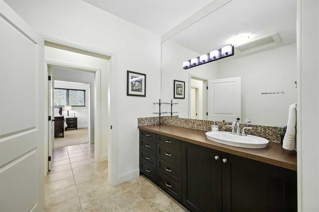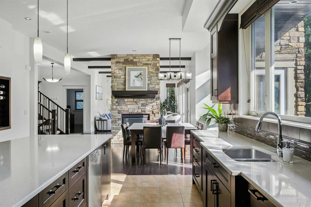 This stunning 4767 sqft 4 bed/3.5 bath luxury home, w/oversized triple garage, on 0.41 acres (one of the largest lots) on exclusive Posthill Dr, exudes classic craftsmanship with exceptional finishings. Upon entering, you’ll appreciate the soaring 10′ ceilings, beautiful hardwood flooring, and wall of windows bathing the area with light. The elegant living/dining spaces share a stunning stone faced double sided gas fireplace, each with a wood mantle that cleverly defines each space, & have sweeping views over the private backyard oasis, ideal for hosting large gatherings. The gourmet kitchen is an entertainer’s dream, featuring an oversized island w/clever storage built into either end, quartz counters, gorgeous Jatoba custom cabinetry, 6 burner Viking gas range, Thermador wall oven, Miele dishwasher, & Frigidare Gallery refrigerator. The butlers pantry off the kitchen features additional quartz countertops & sink, matching cabinetry & built in storage for all your entertaining needs. The mudroom features a large walk in closet w/custom built ins to help organize those hectic arrivals home with the kids. A generous office & large powder room complete the main floor. The bright upper floor features central AC, 9′ ceilings, and in the open area, a custom built in bookcase w/seating & homework area just outside the secondary bedrooms. The generous primary suite features a wall of windows flooding the room with light, a cozy sitting area w/gas fireplace, faced with custom millwork, ideal for unwinding at the end of the day. The large walk in closet features custom built in shelving & drawers. The luxurious 5 pc ensuite features a large glass steam shower, freestanding soaker tub, his & hers vanities and in floor heat for those chilly mornings. The two large secondary bedrooms each feature several windows & walk in closets w/custom built ins. The huge upper shared bath has individual personal vanity areas, custom built in shelving w/cabinetry, private tub & shower room plus separate water closet, perfect for kids of any age. The fully finished lower level features a large recreation area, dry bar w/full sized fridge, gas fireplace and plenty of space for kids to play or enjoy cozy family movie nights. The light filled lower guest bedroom features a walk through closet with custom built ins and adjoins a large 3 piece bath w/huge glass shower, allowing for ultimate guest privacy. Zoned in-floor hydronics make heating the lower level even cozier. The triple oversized heated garage has 12′ ceilings, perfect for car lifts. The exceptional backyard oasis features a large deck plus an additional BBQ deck off the kitchen, flag stone patio and exudes a park like setting surrounded by native aspen groves. Posthill Drive is an enclave like no other, and this home exceeds expectations. Close to exceptional schools, restaurants & shops, as well as quick access to Stoney Trail from 17th Ave, making getting downtown or to the mountains a breeze. View this exceptional property today!